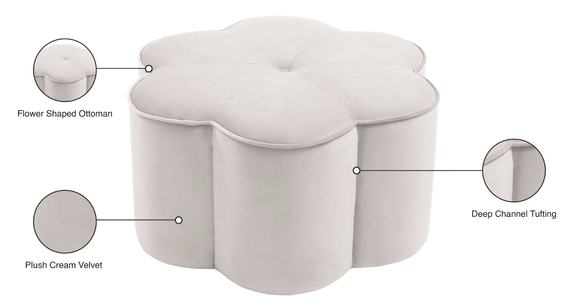 Bring a whimsical touch to your space with this fun Daisy velvet ottoman. Beautifully soft pink velvet upholstery covers the exterior of this ottoman, lending it a plush and luxurious look and a velvety feel. The contemporary design is just right for modern decor themes, whether you use it in the living room or bedroom. Piping around the top of this fabric ottoman helps reinforce the design for a look that turns heads.