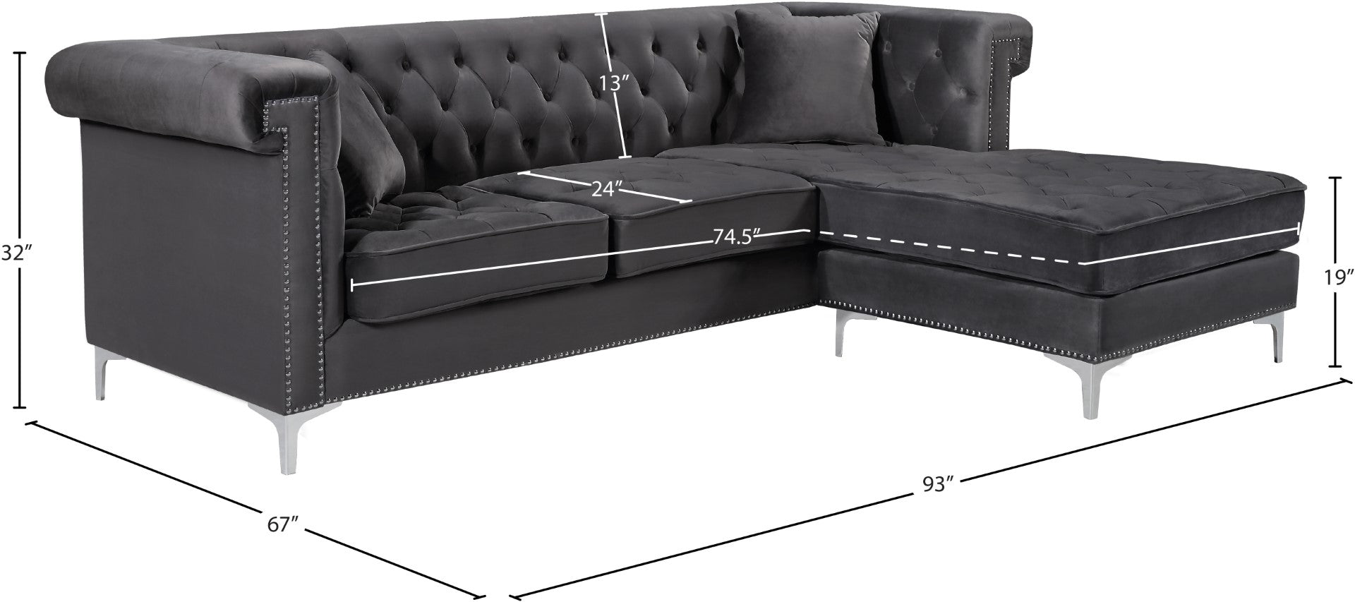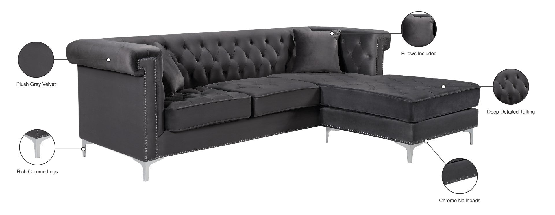 Damian Contemporary 2-Piece Reversible Sectional with Plush Seating and Stylish Chrome Accents