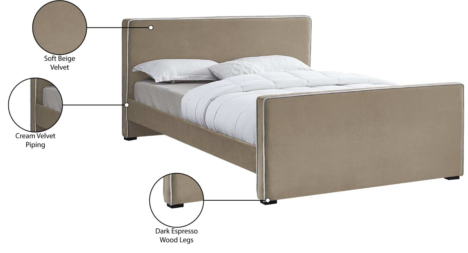 Lend your bedroom an elegant look with this Dillard velvet bed. Live out your velvet fantasy with this bed's soft beige velvet...