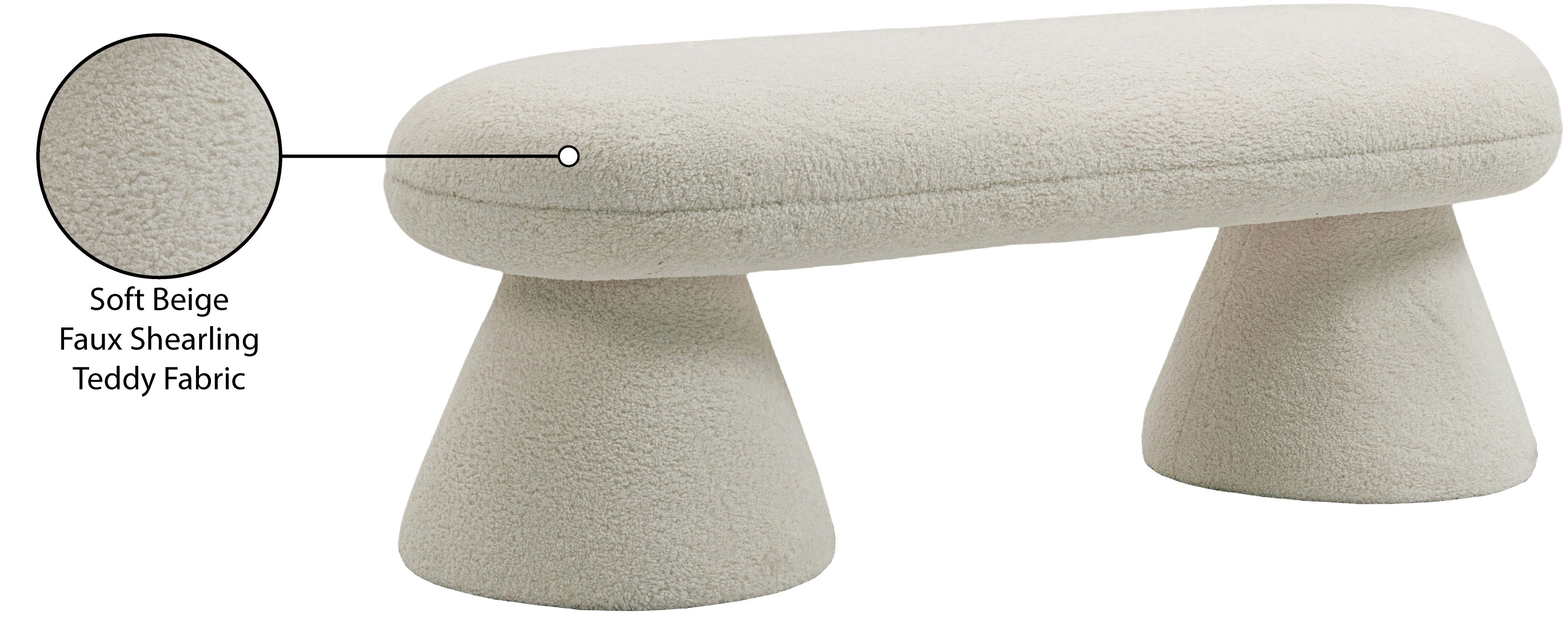 Drum Stylish Faux Shearling Teddy Fabric Bench – Contemporary Comfort for Any Room Décor Upgrade