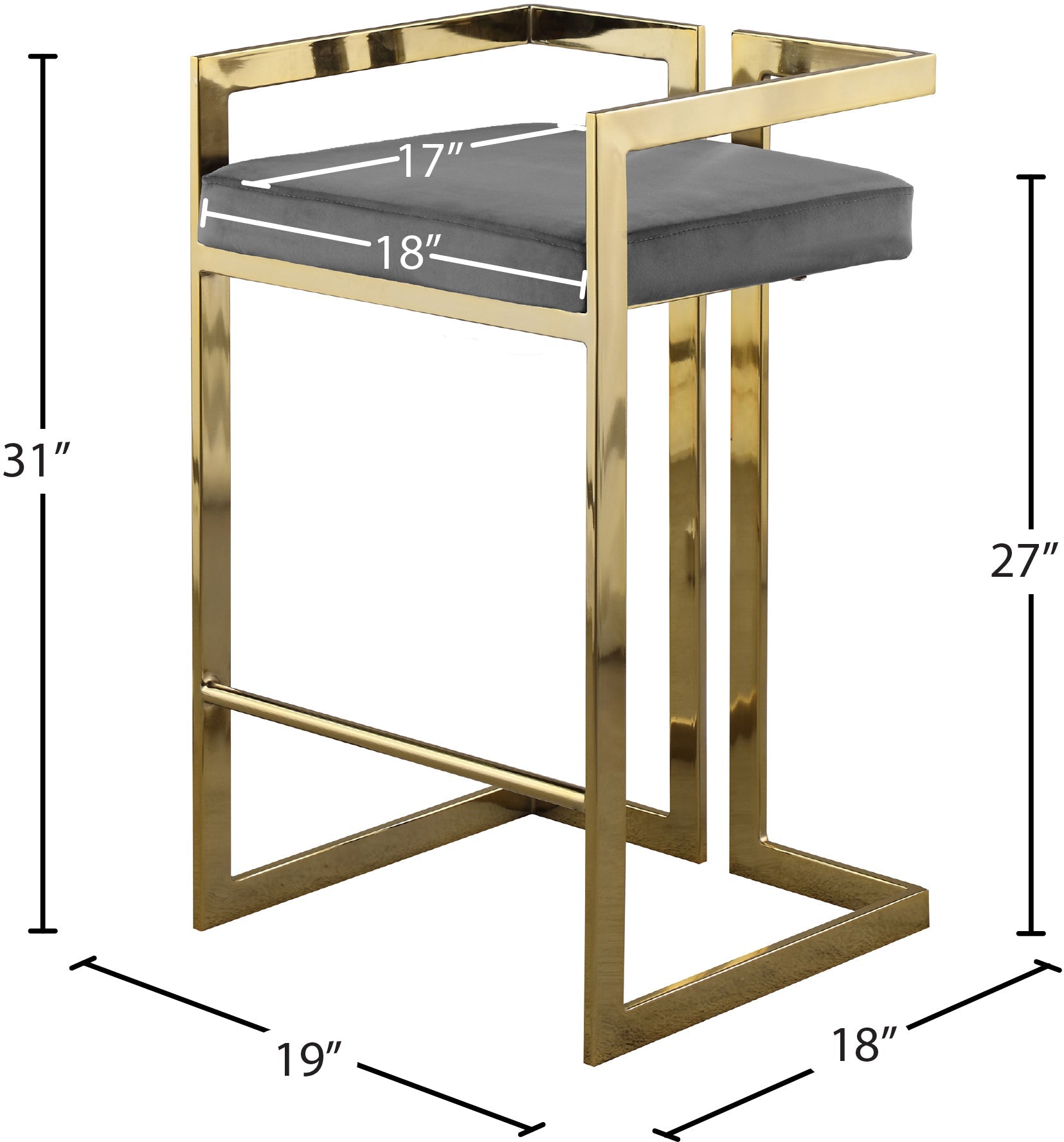 Count on the Ezra Black Velvet Counter Stool to make a big impression in your home bar area or at the kitchen...