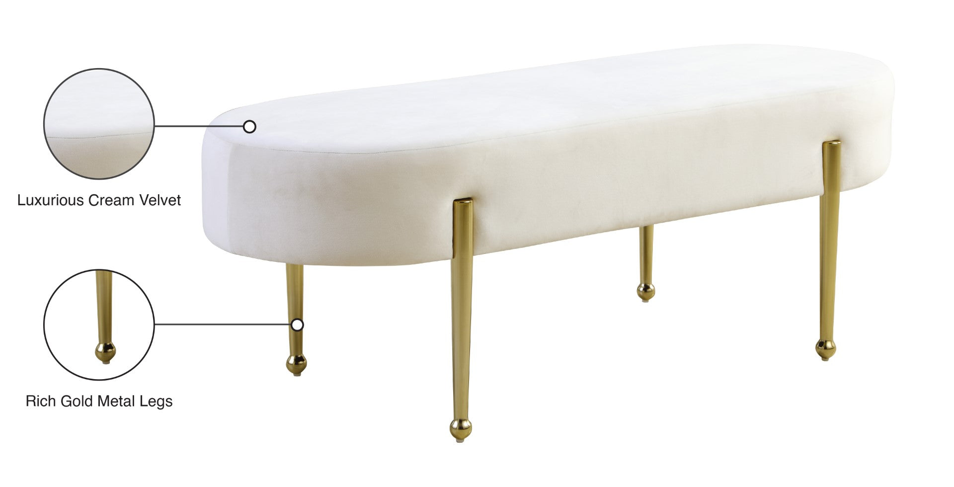 Gia Luxurious Contemporary Bench with Glamorous Gold Metal Legs - Perfect for Any Entryway or Bedroom