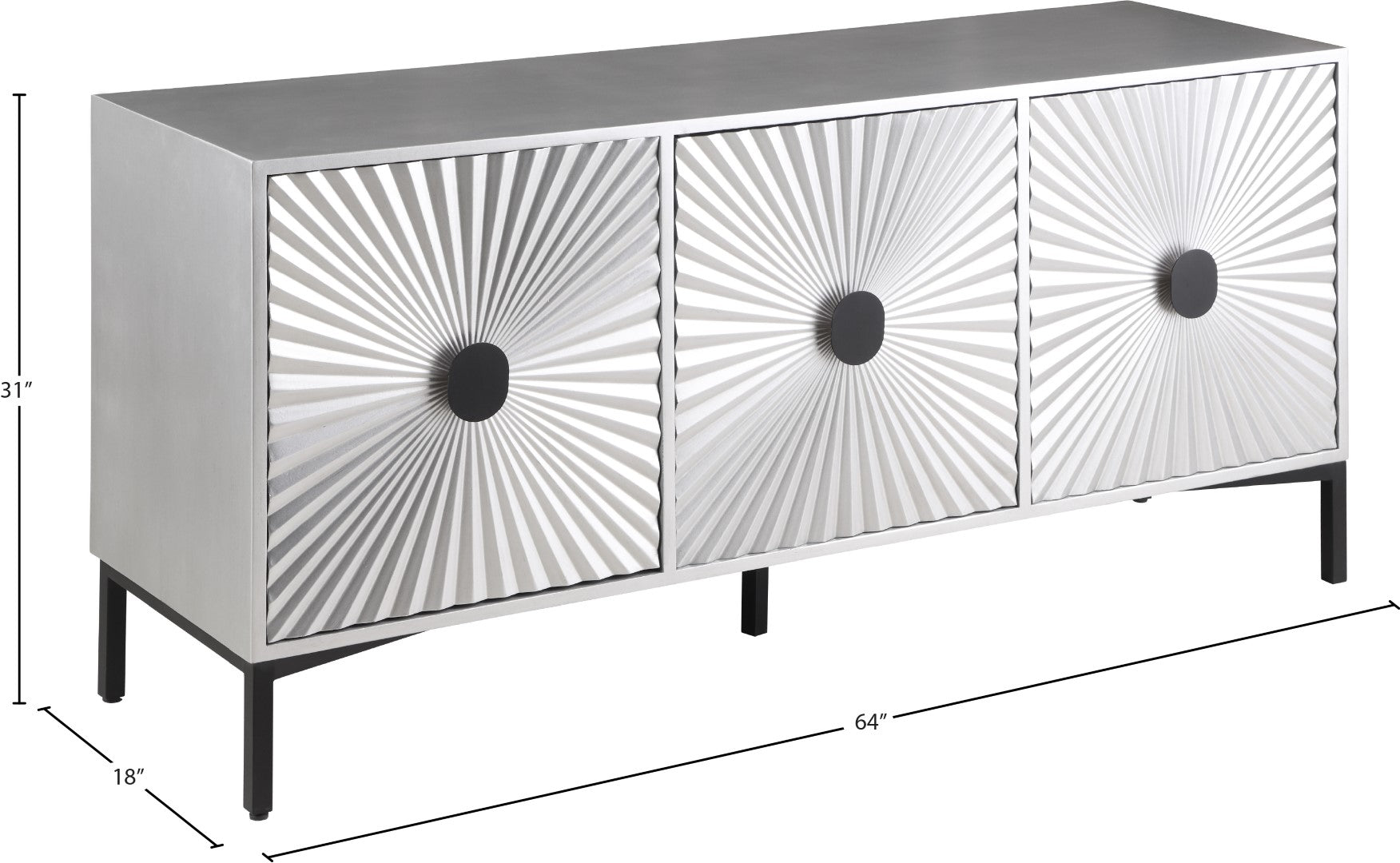 Glitz Contemporary Sideboard Buffet - Starburst Design with Antique Silver Finish & Storage Solutions