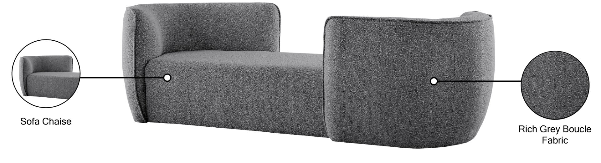 Hilton Boucle Fabric Chaise Lounge - Stylish Contemporary Seating for Cozy Living Spaces