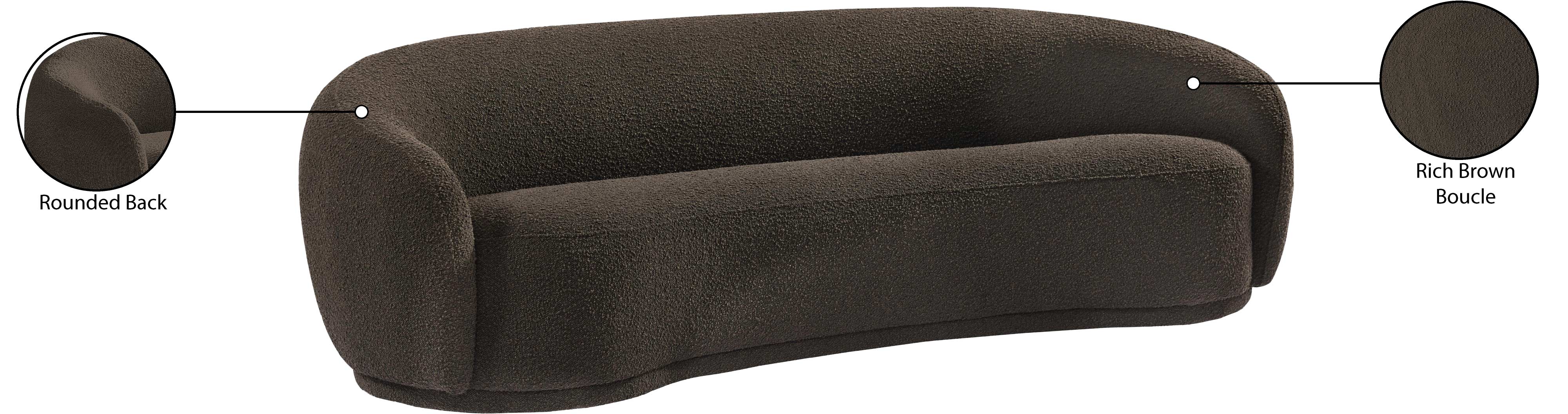 Hyde Brown Boucle Fabric Sofa - Chic Rounded Design for Modern Living, Plush Comfort & Style!