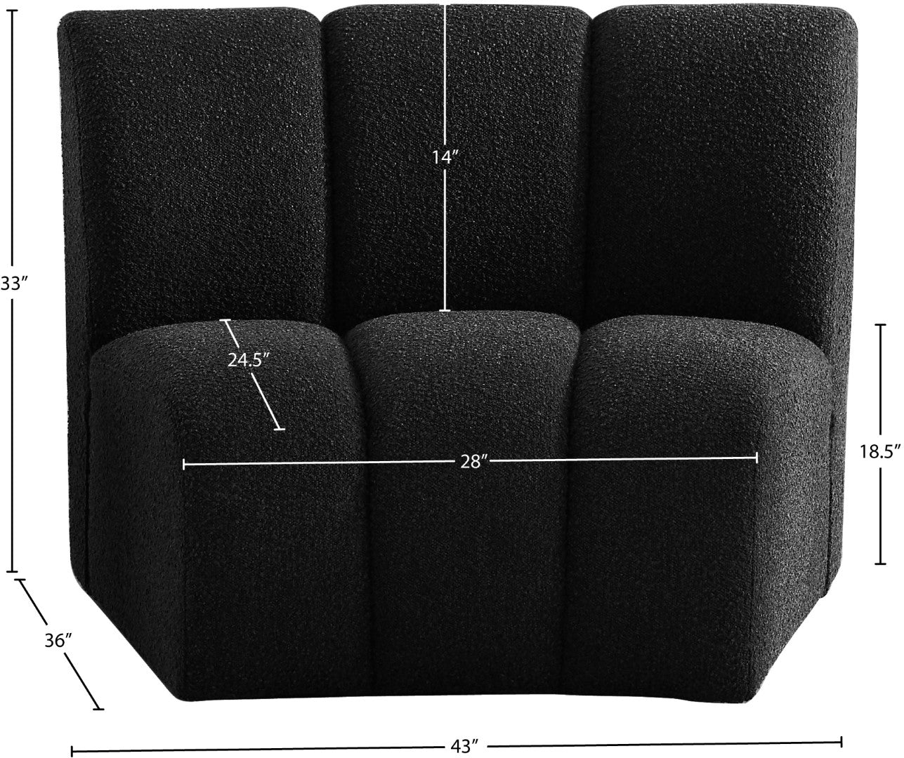 Feature 1: Rich Black Boucle Fabric Feature 2: Deep Channel Tufting Feature 3: Contemporary Design Dimensions: 43" W x 36" D x...