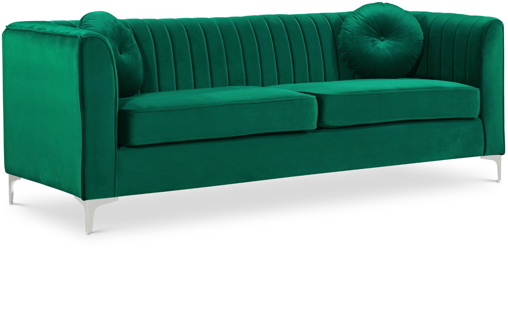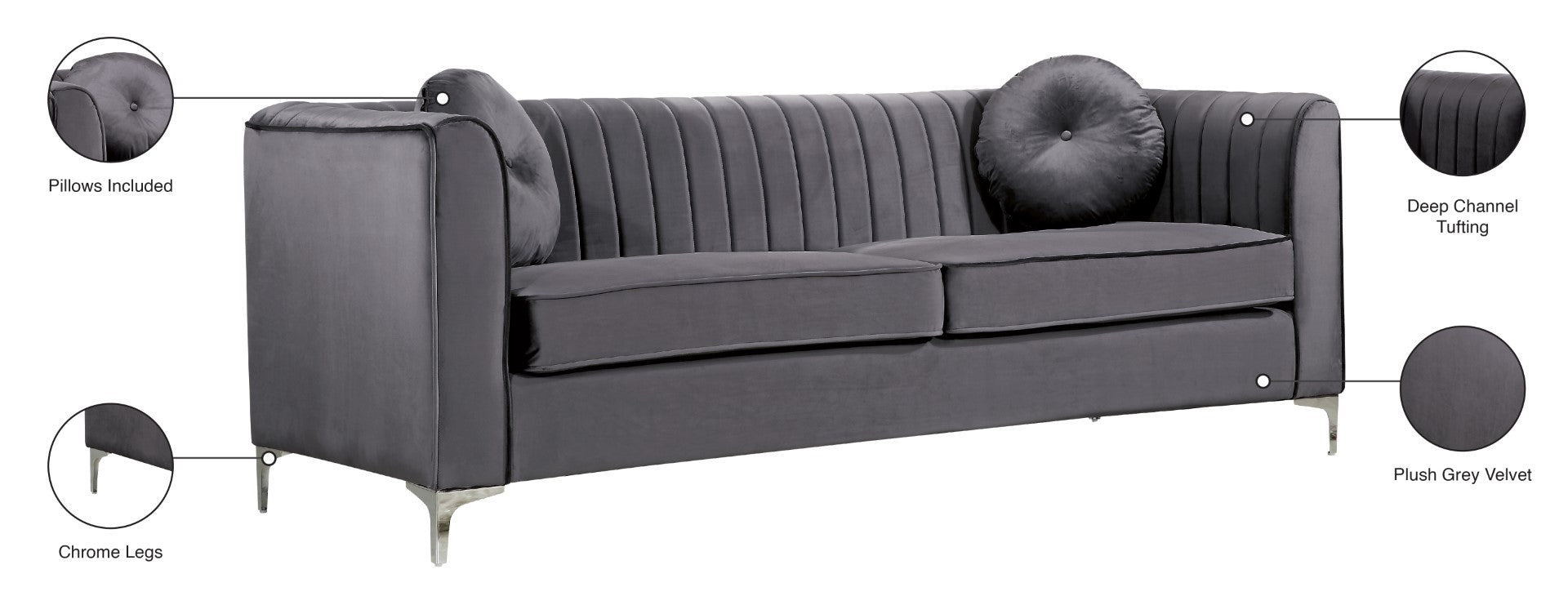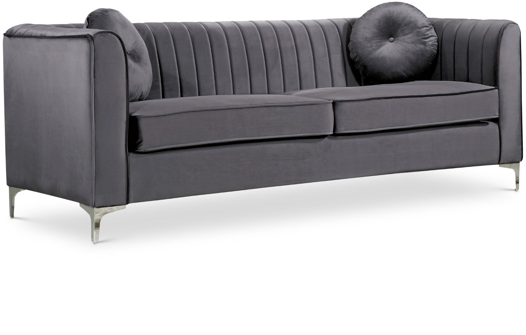 Isabelle Velvet Contemporary Sofa - Luxurious Upholstery with Chrome Legs & Cozy Throw Pillows