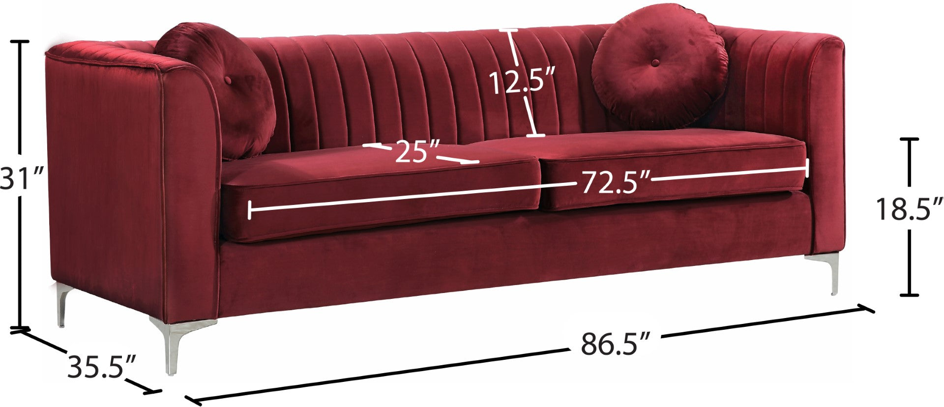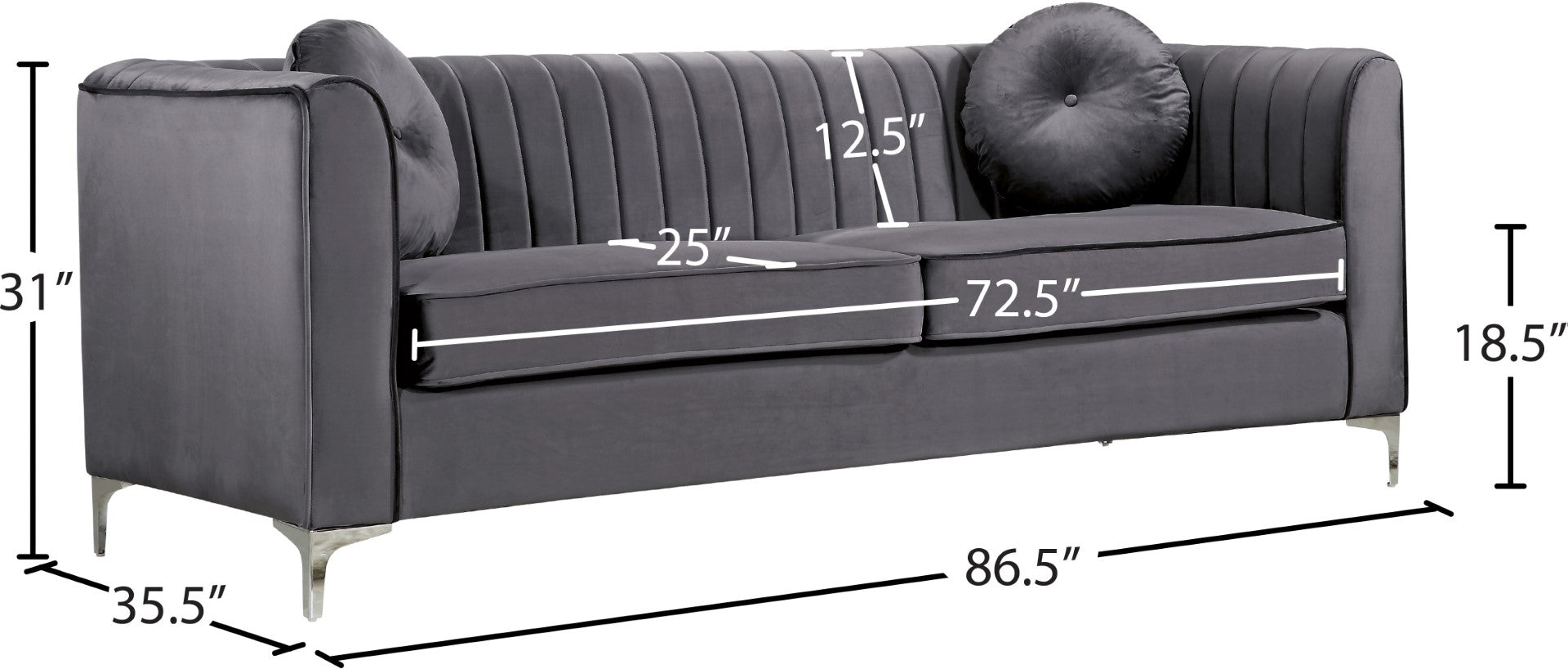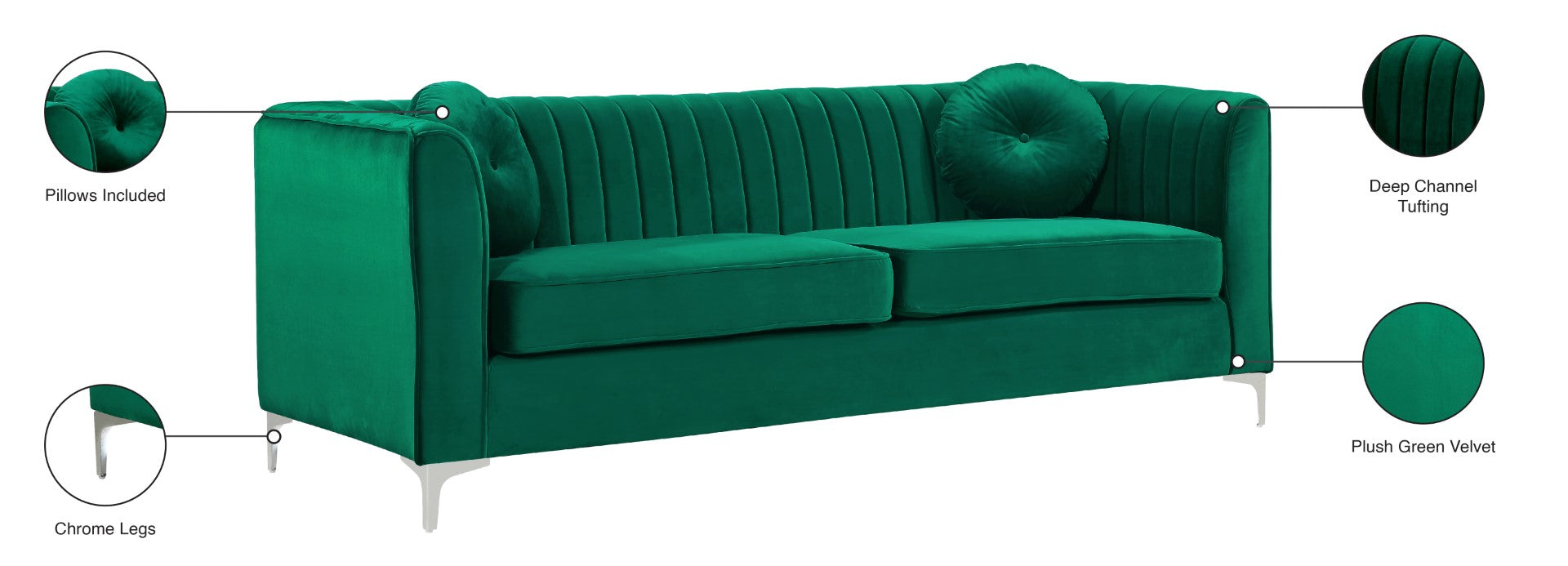 Isabelle Velvet Contemporary Sofa - Luxurious Upholstery with Chrome Legs & Cozy Throw Pillows