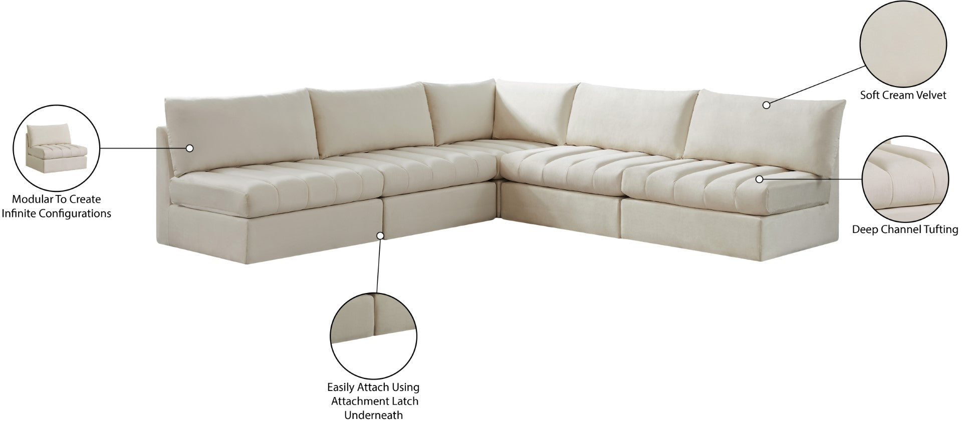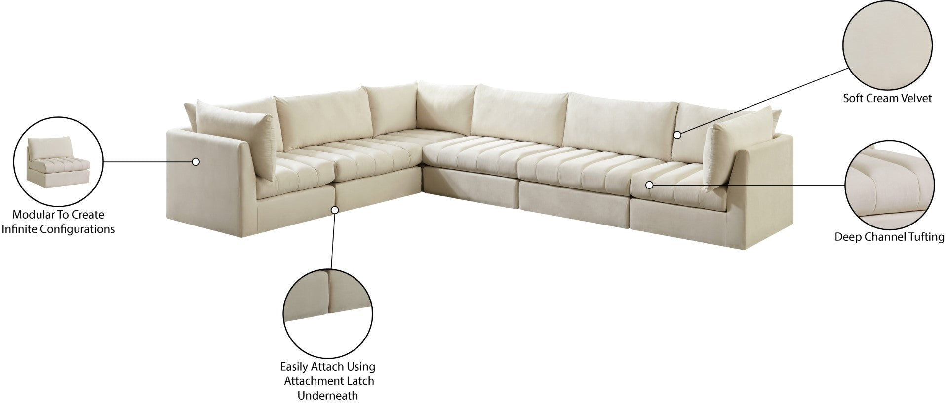 Jacob Velvet Modular Sectional Sofa - Luxurious Black Upholstery with Deep Channel Tufting Design