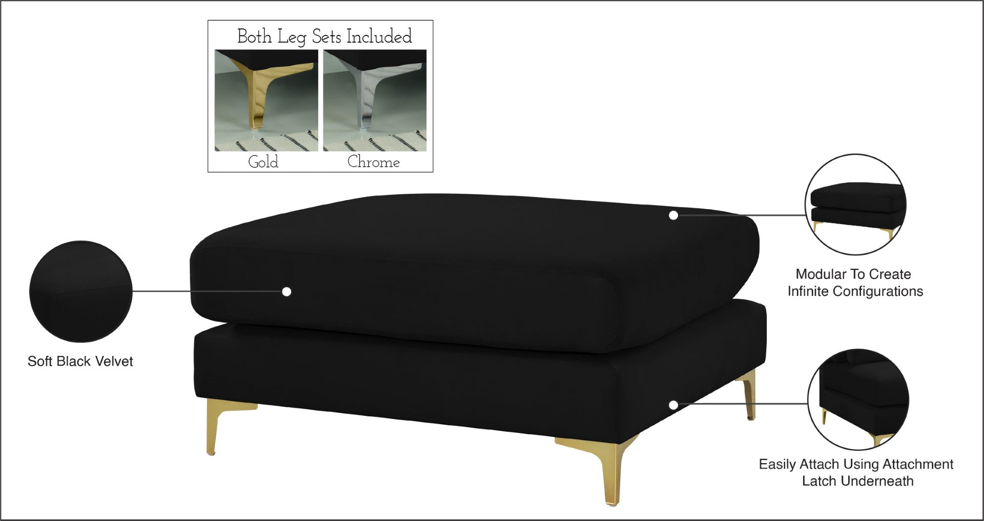 Julia Contemporary Modular Ottoman - Cozy Velvet Seating with Customizable Gold & Chrome Legs