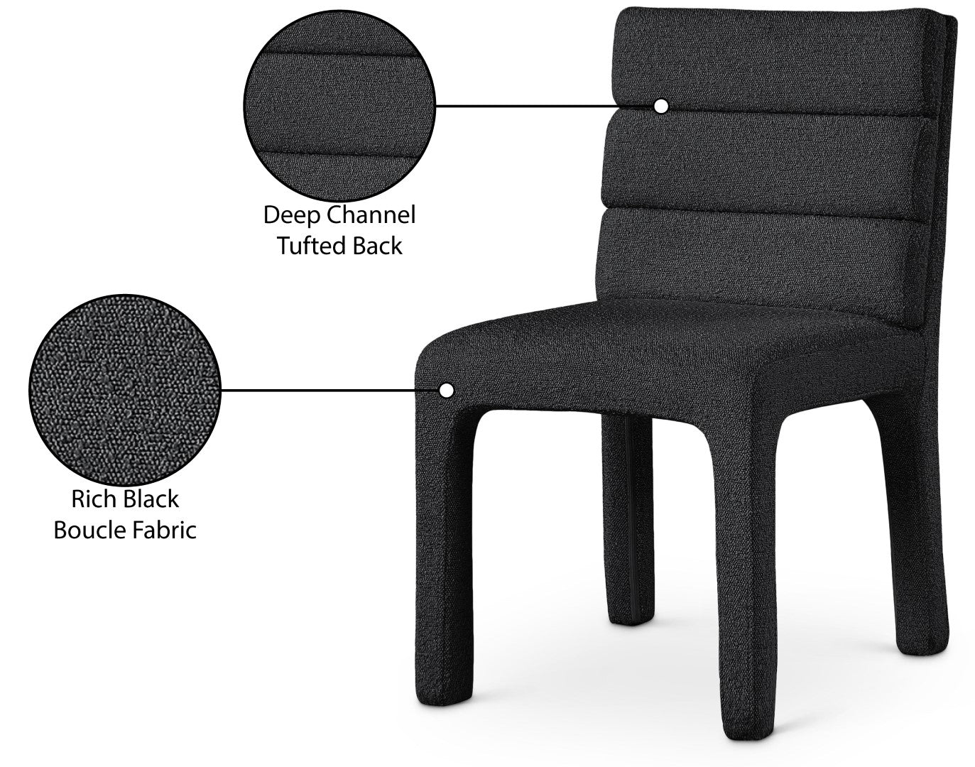 Feature 1: Rich Black Boucle Fabric Feature 2: Deep Channel Tufted Back Feature 3: Contemporary Design Dimensions: 19" W x 23" D...