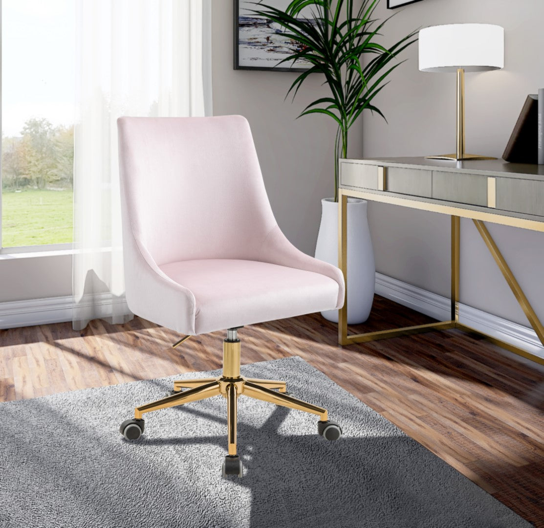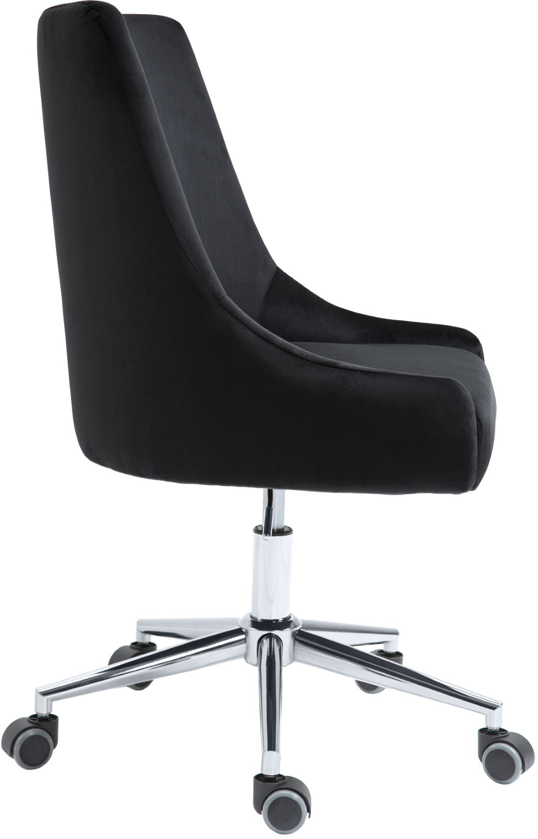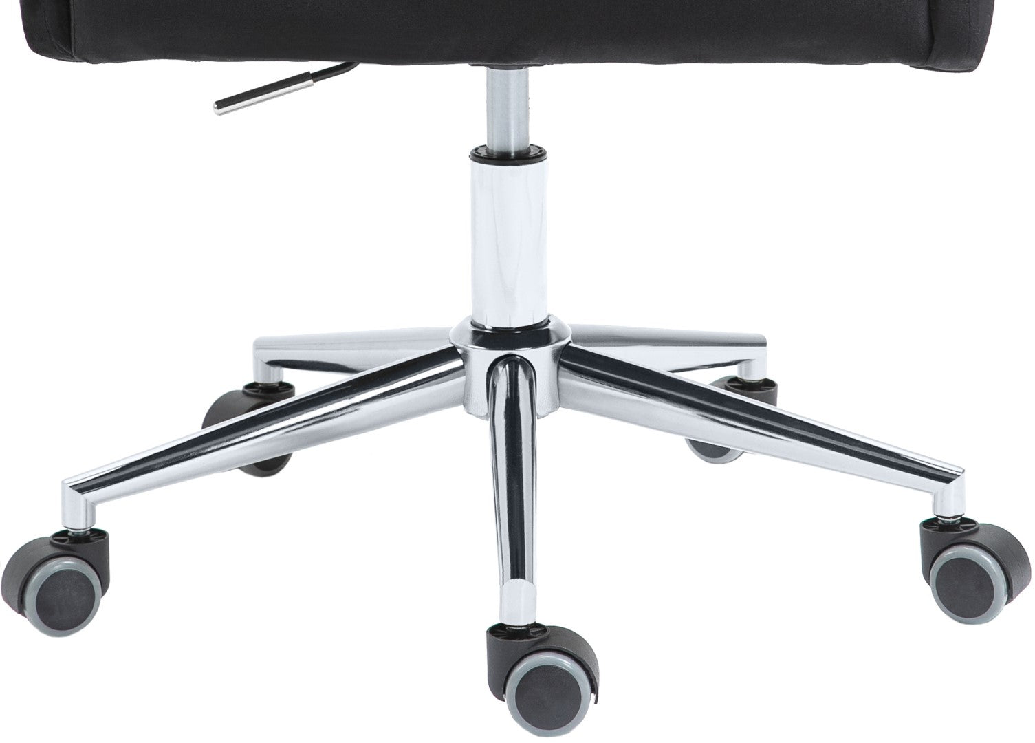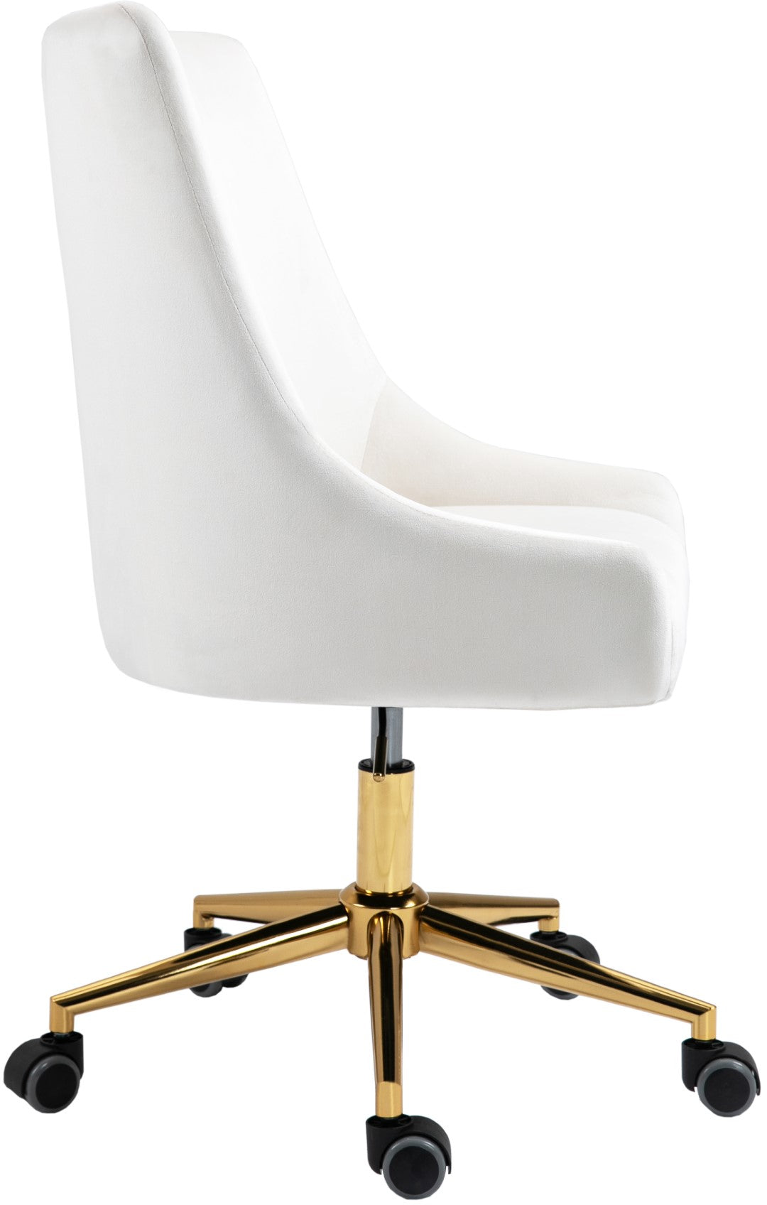 Bring functional beauty to the limelight whenyou'rere seated in the comforting confines of this Karina Velvet Office Chair. This chair isn't just another handsome face for your office, althoughyou'rell fall for its soft black velvet upholstery and rich gold base. This contemporary chair is just as utilitarian as it is attractive, with its swiveling design and five-star base with casters to make it easy to maneuver around your workstation. The chair is also adjustable, so it's easy to get comfortable and find your favorite sitting position.