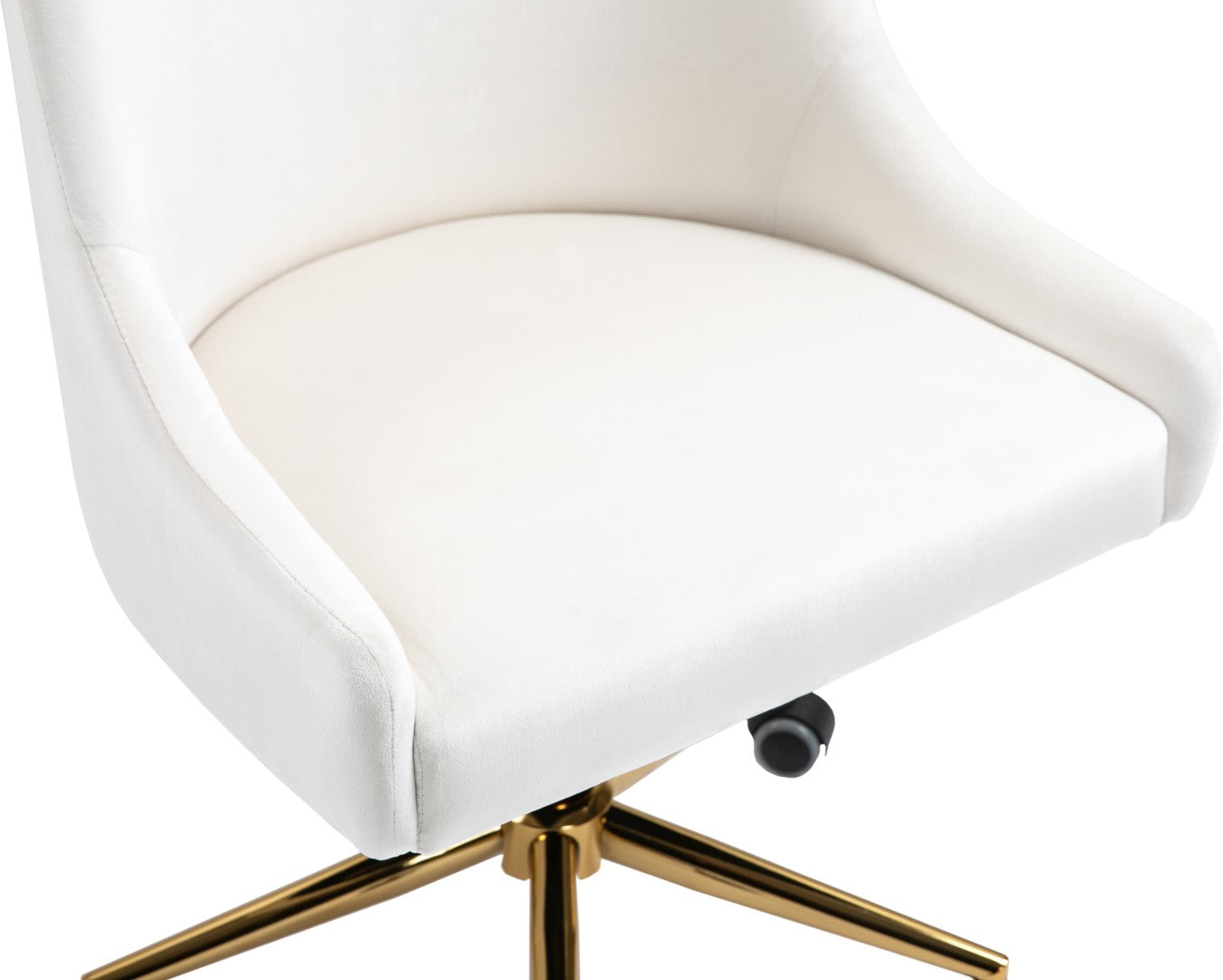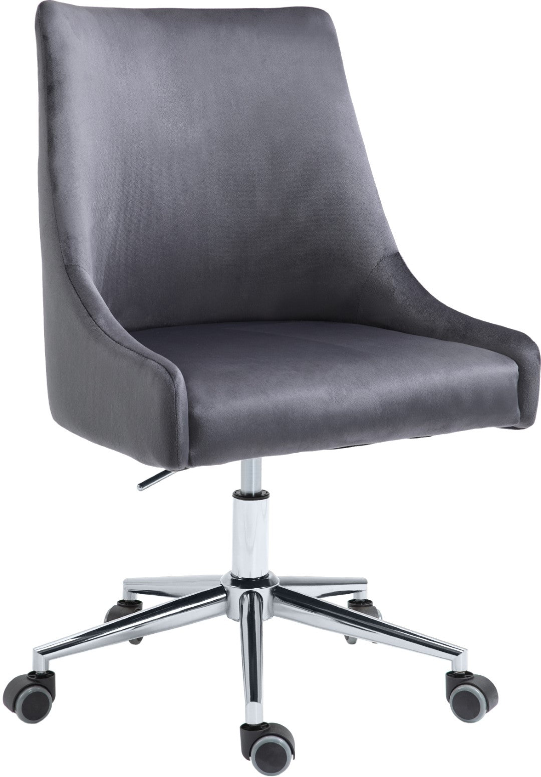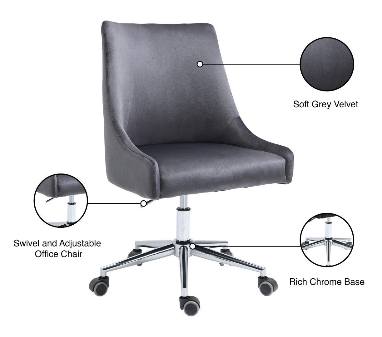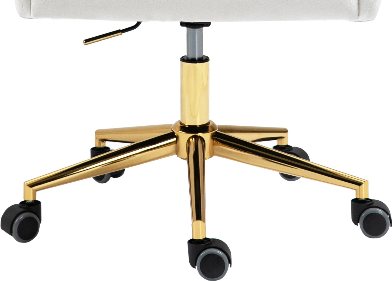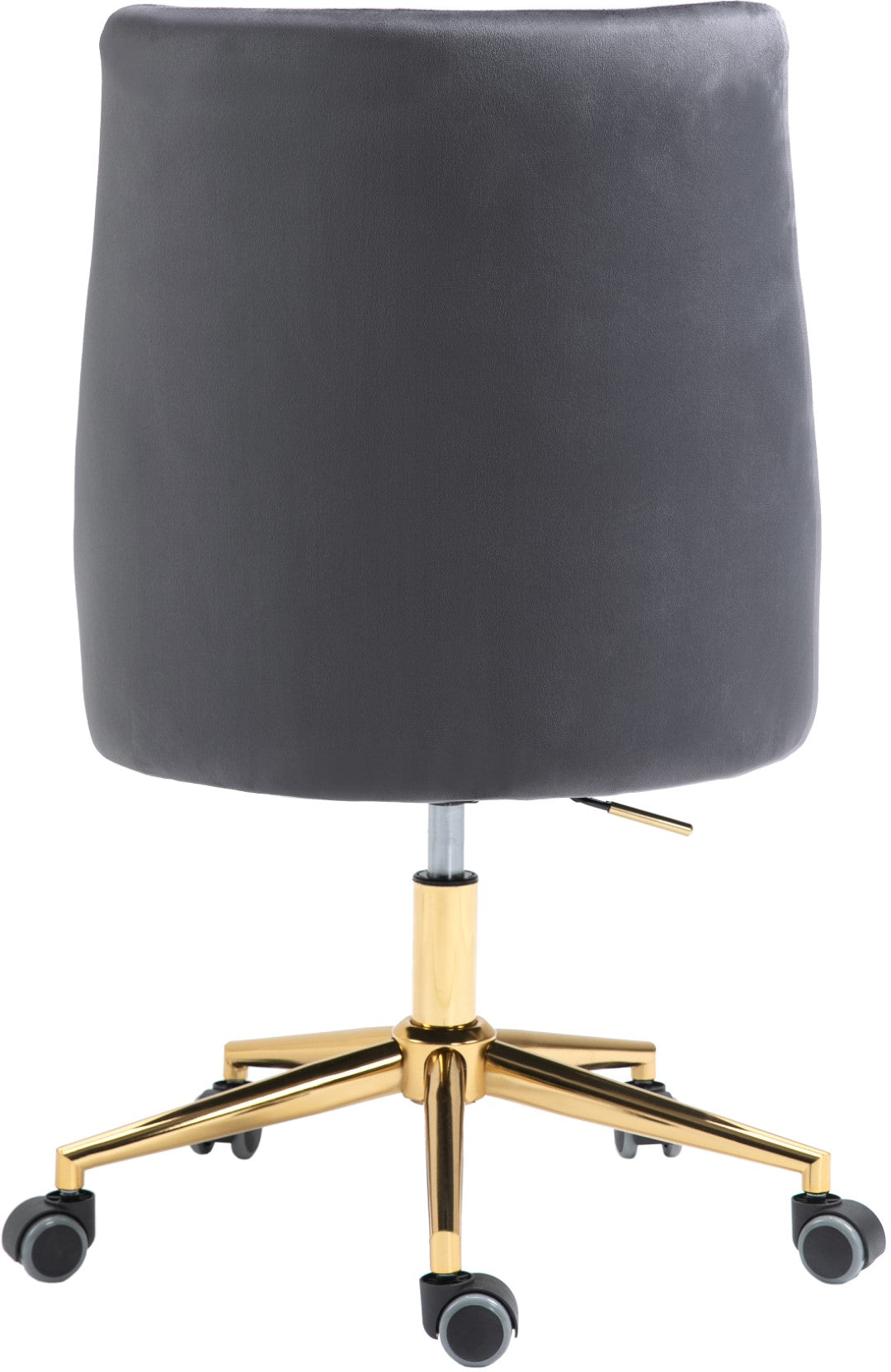 Bring functional beauty to the limelight whenyou'rere seated in the comforting confines of this Karina Velvet Office Chair. This chair isn't just another handsome face for your office, althoughyou'rell fall for its soft black velvet upholstery and rich gold base. This contemporary chair is just as utilitarian as it is attractive, with its swiveling design and five-star base with casters to make it easy to maneuver around your workstation. The chair is also adjustable, so it's easy to get comfortable and find your favorite sitting position.
