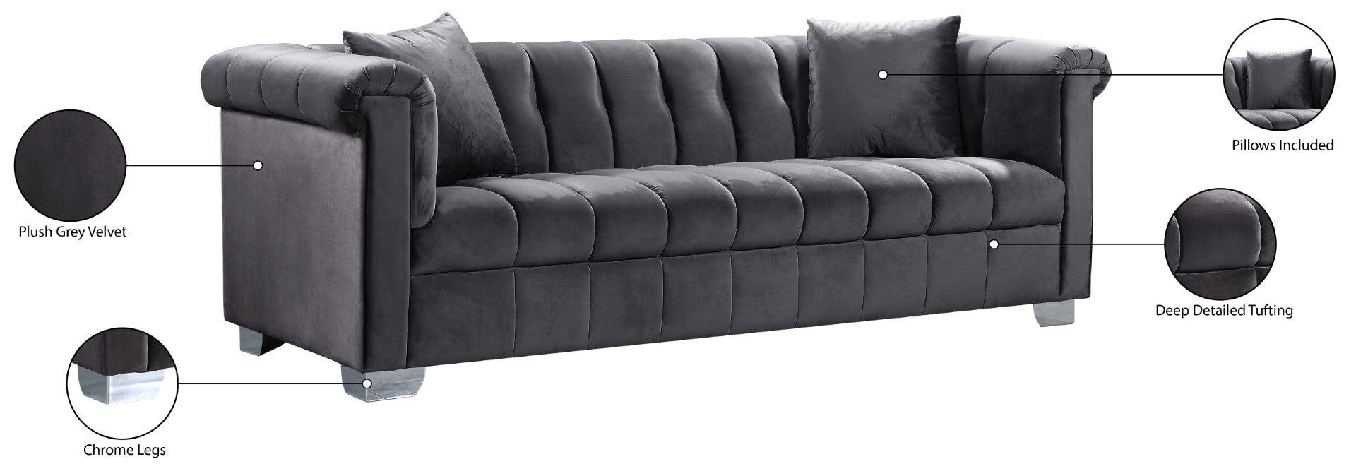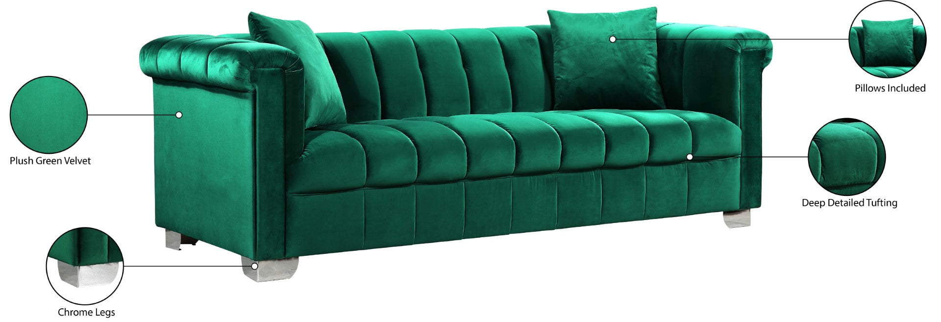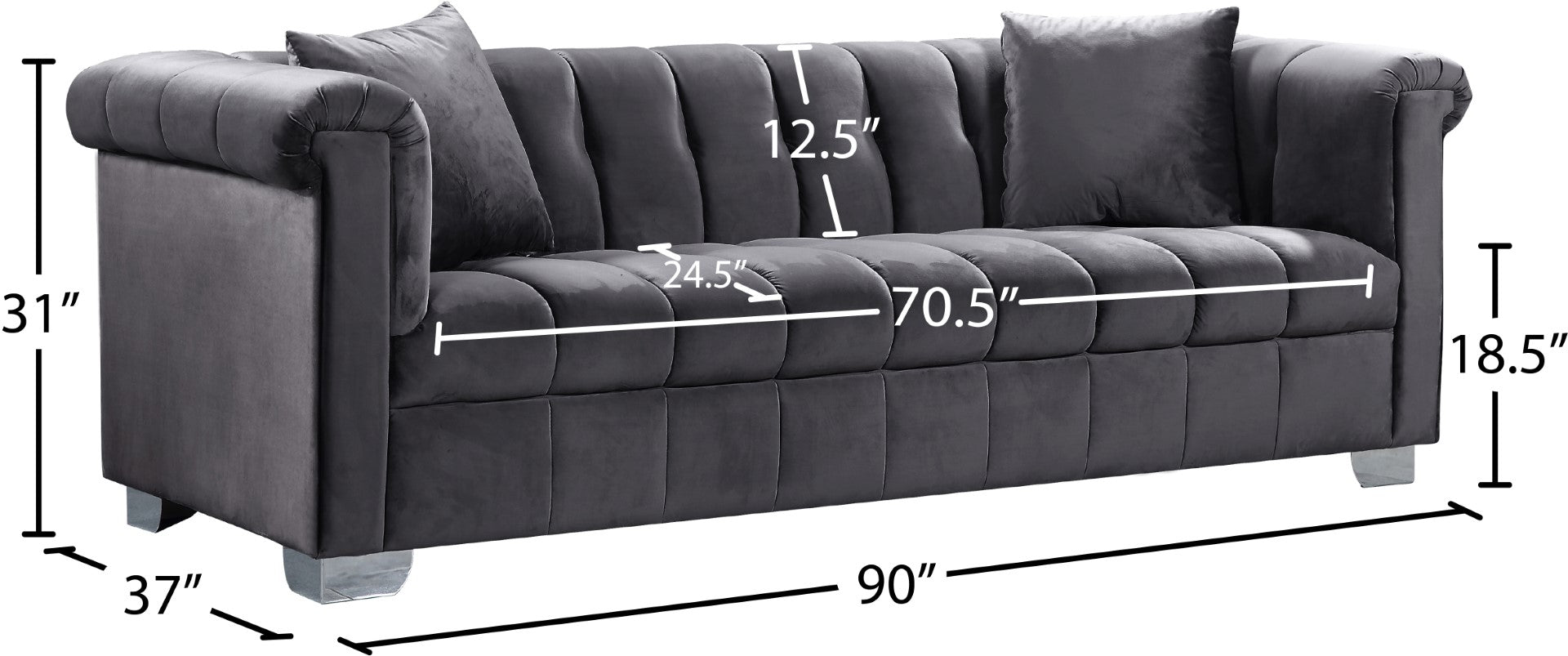 Kayla Velvet Contemporary Sofa – Luxurious Design with Chrome Legs & Cozy Pillows for Your Living Space