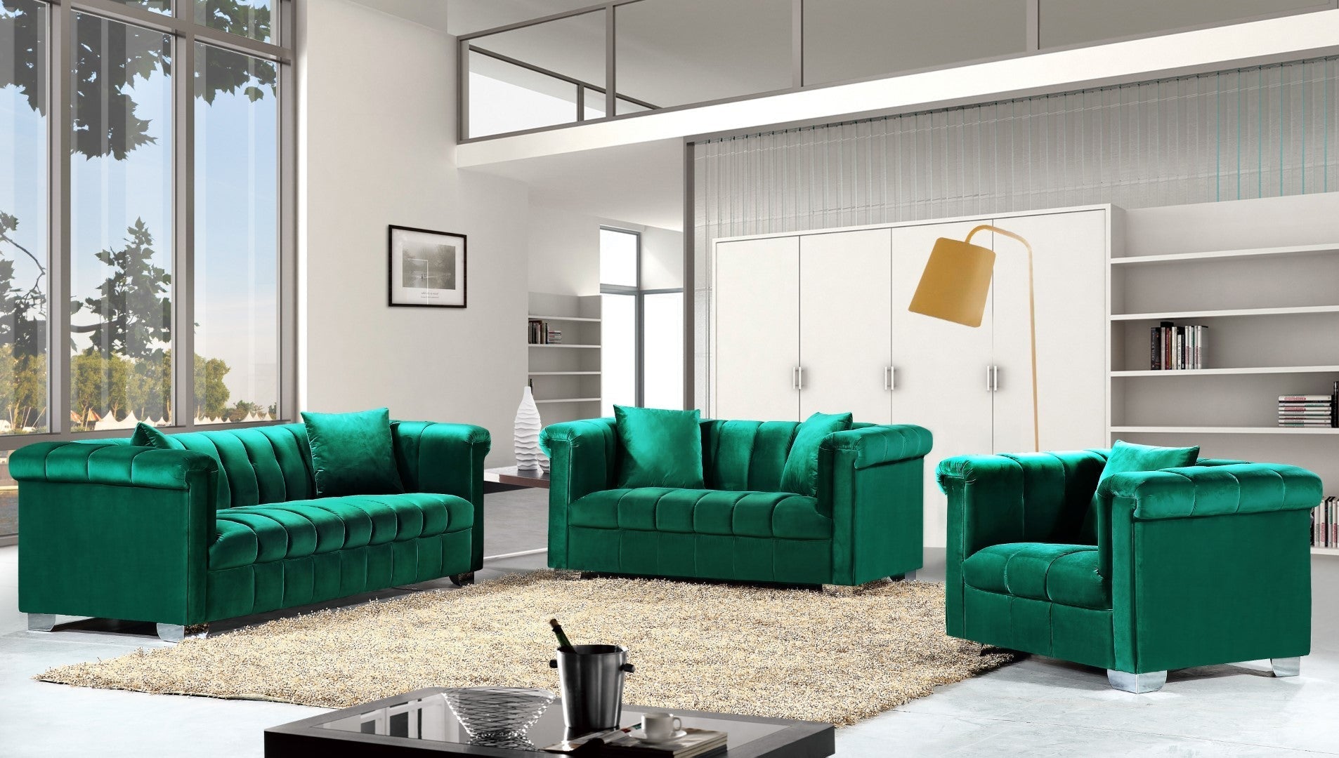 The Kayla Collection by Meridian Furniture. Features beautifully designed velvet upholstery with custom chrome legs. This collection is guaranteed to be the...