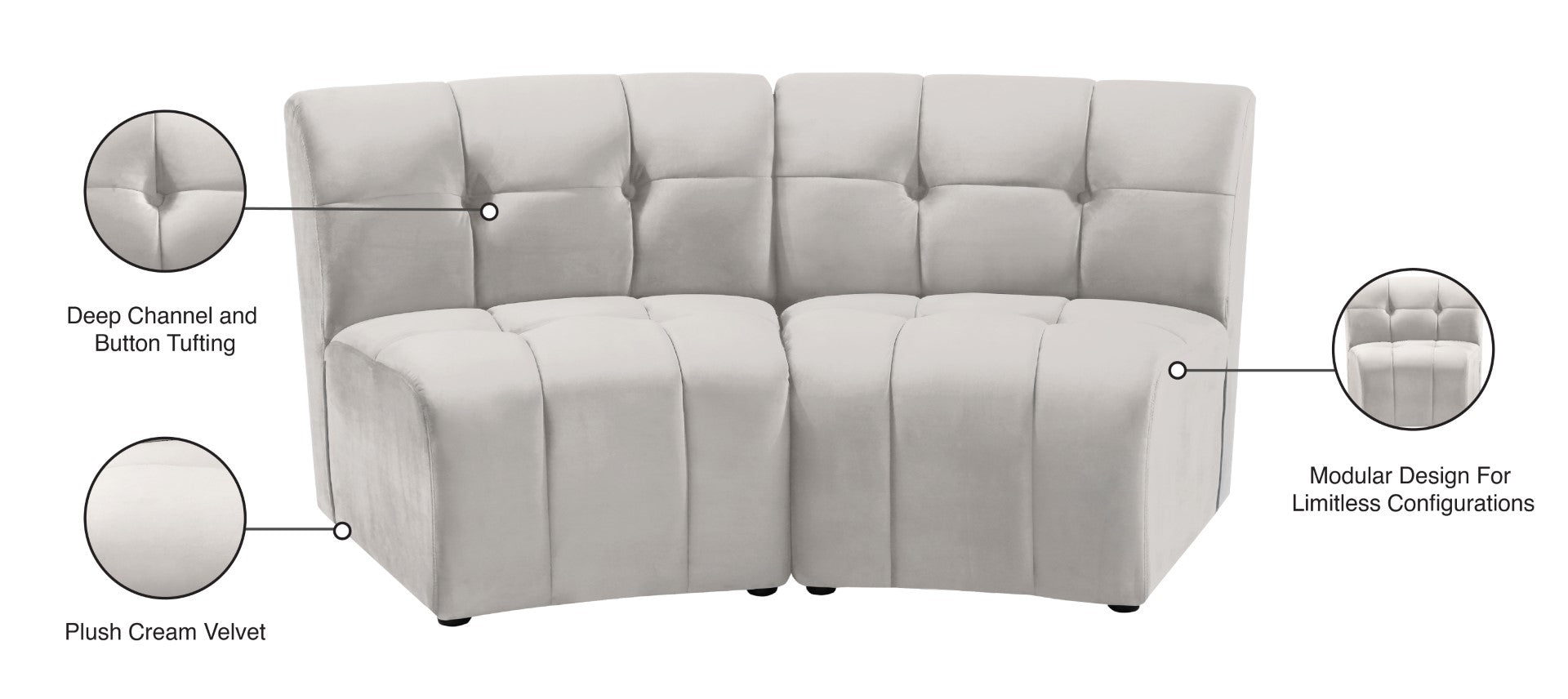 Limitless Modular Sectional Loveseat with Upscale Tufting and Contemporary Design for Ultimate Comfort