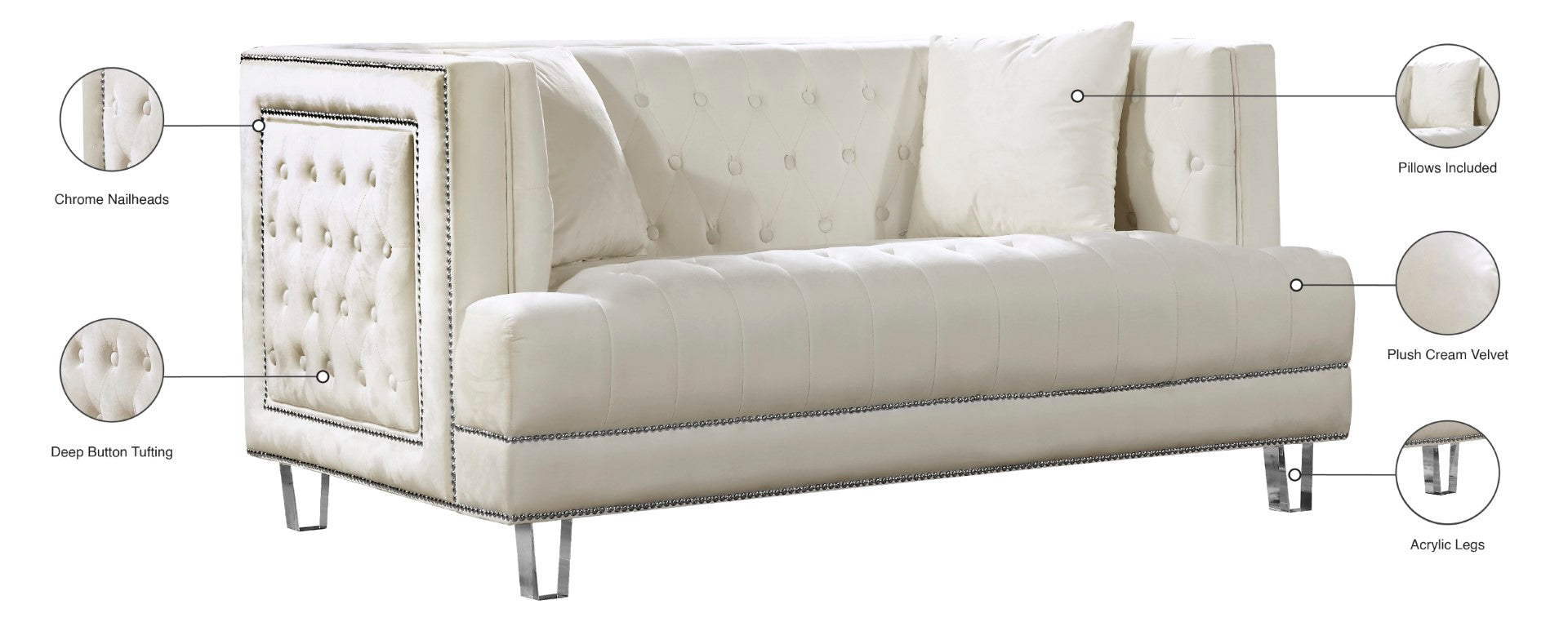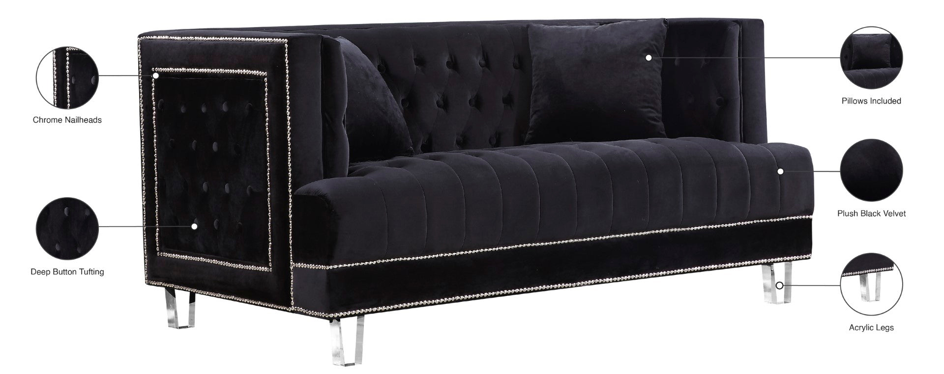 The Lucas Collection by Meridian Furniture. Features beautifully tufted velvet upholstery with a custom nail head design and clear acrylic legs. This...