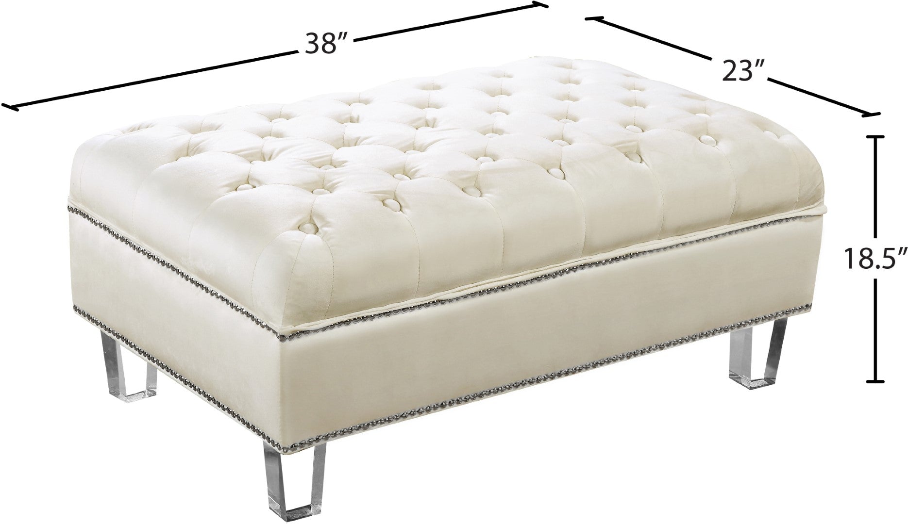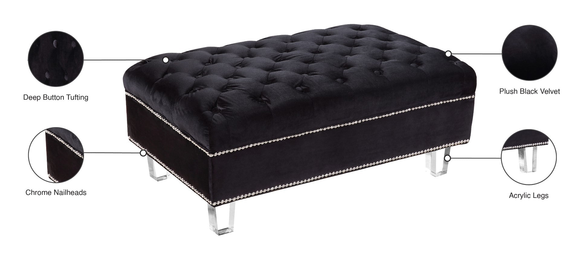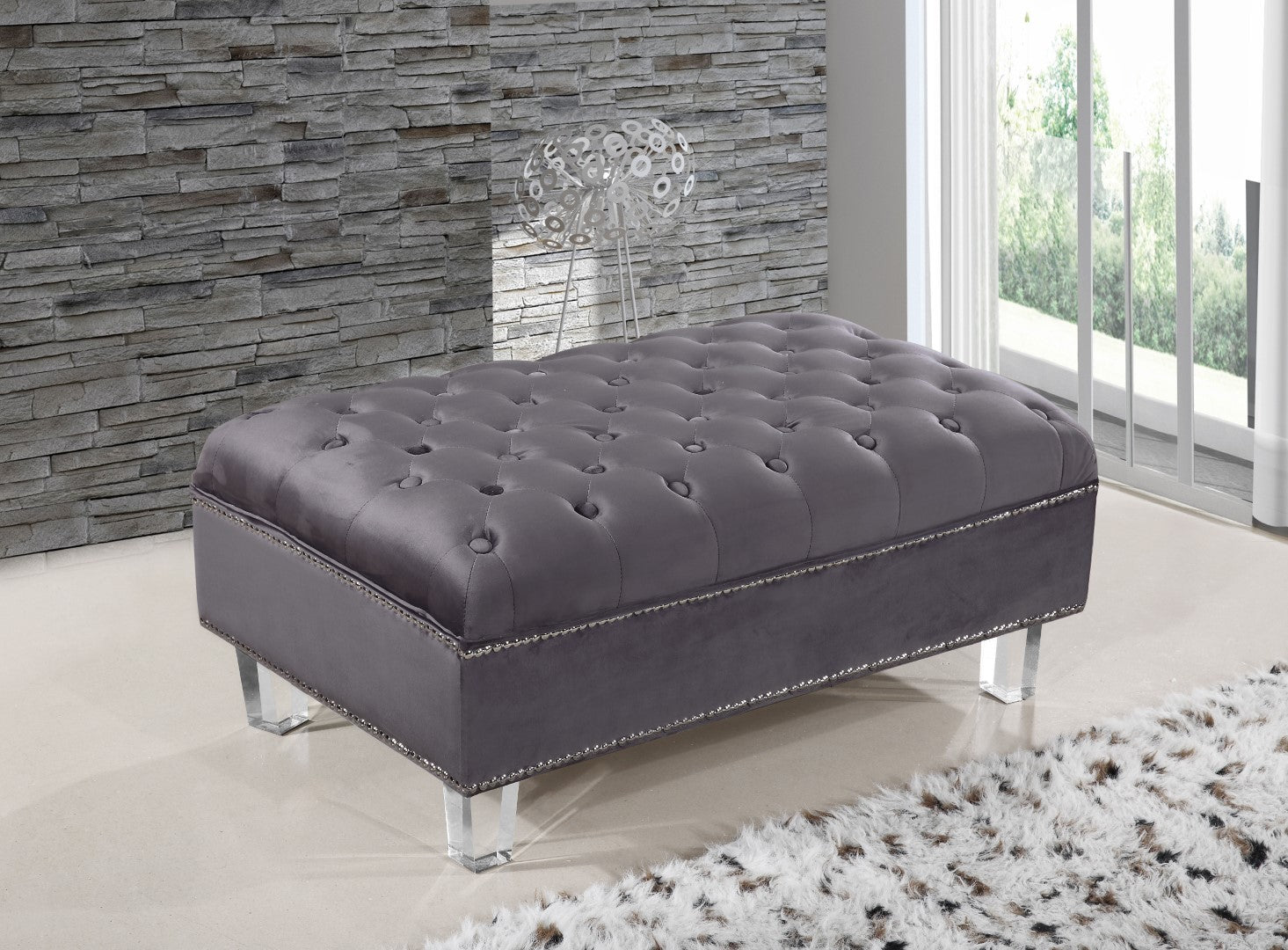 Lucas Acrylic Contemporary Ottoman with Tufted Velvet Upholstery and Elegant Nailhead Design