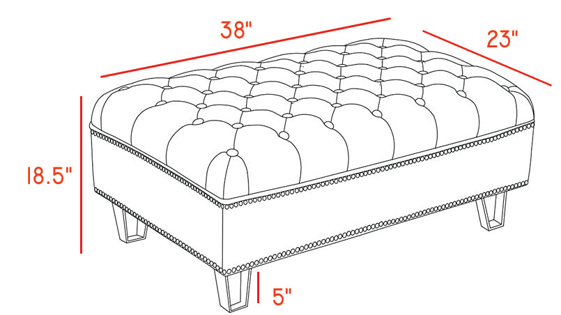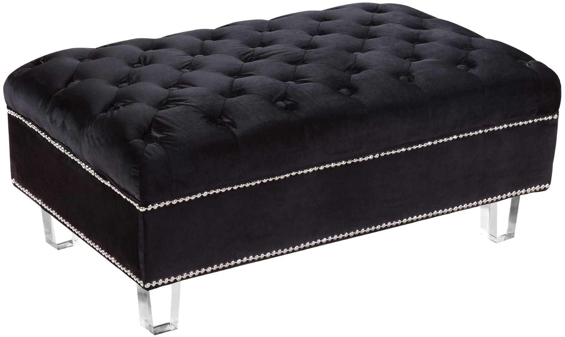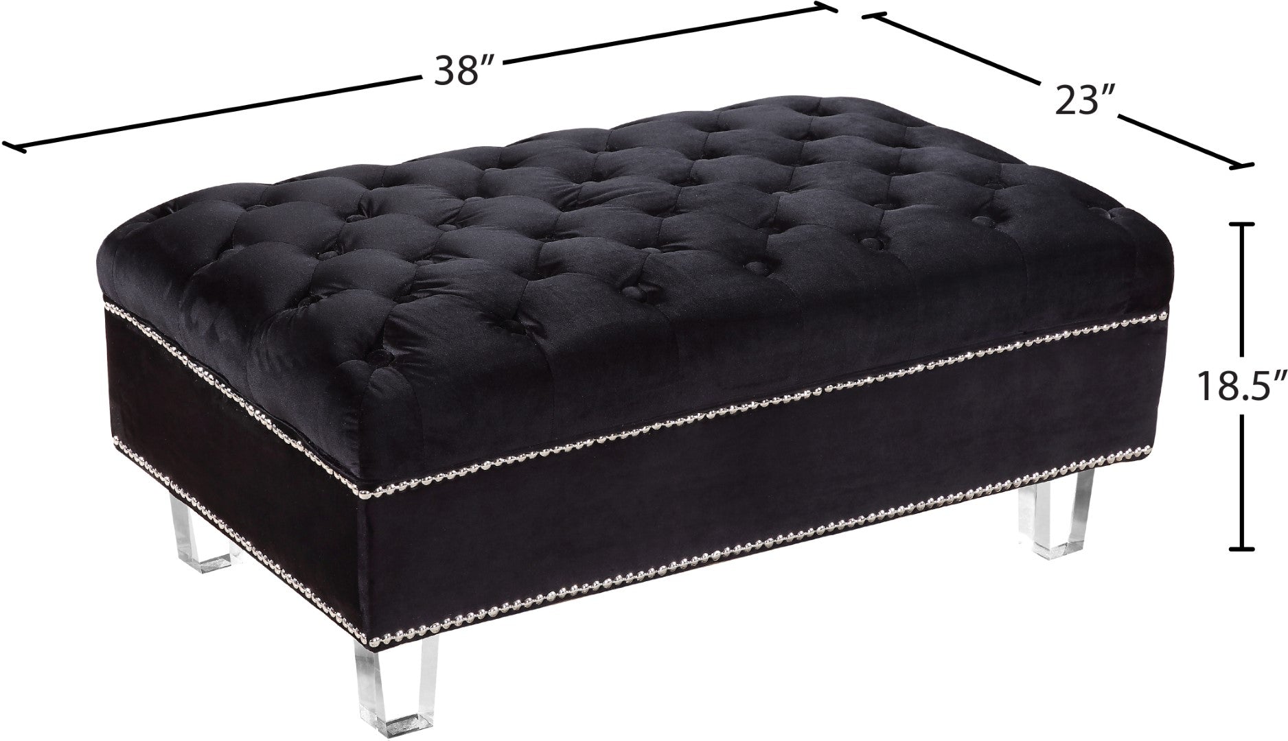 Lucas Acrylic Contemporary Ottoman with Tufted Velvet Upholstery and Elegant Nailhead Design