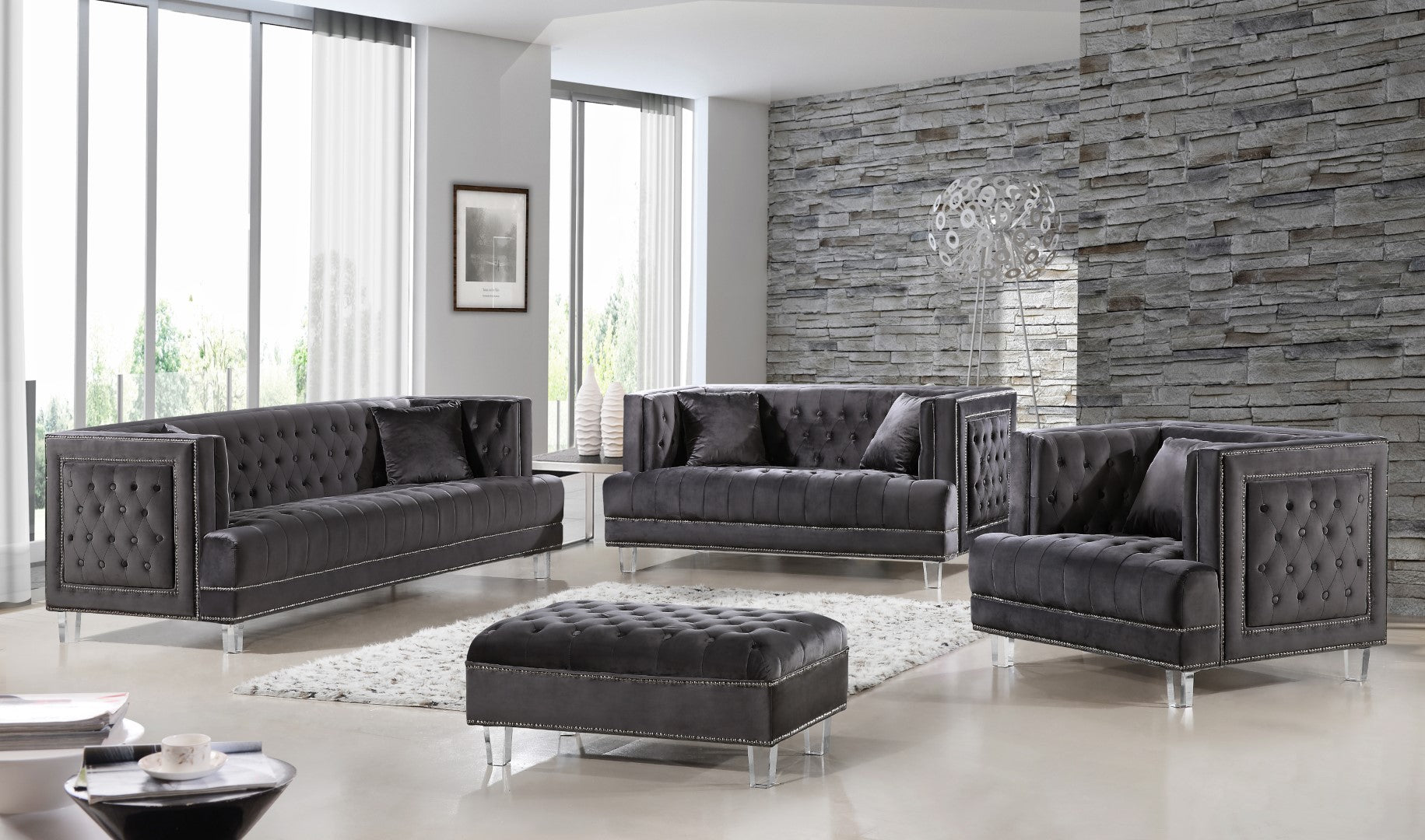 The Lucas Collection by Meridian Furniture. Features beautifully tufted velvet upholstery with a custom nail head design and clear acrylic legs. This...