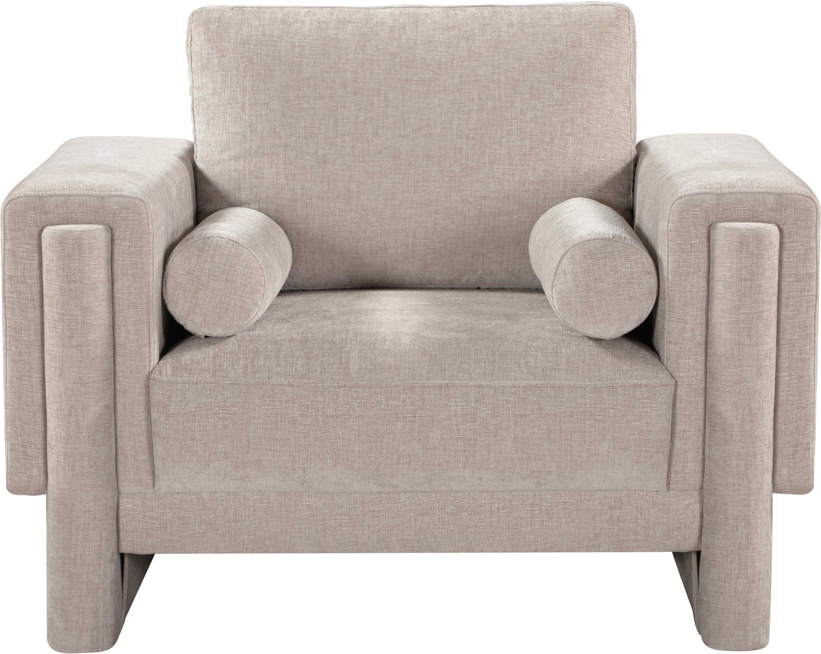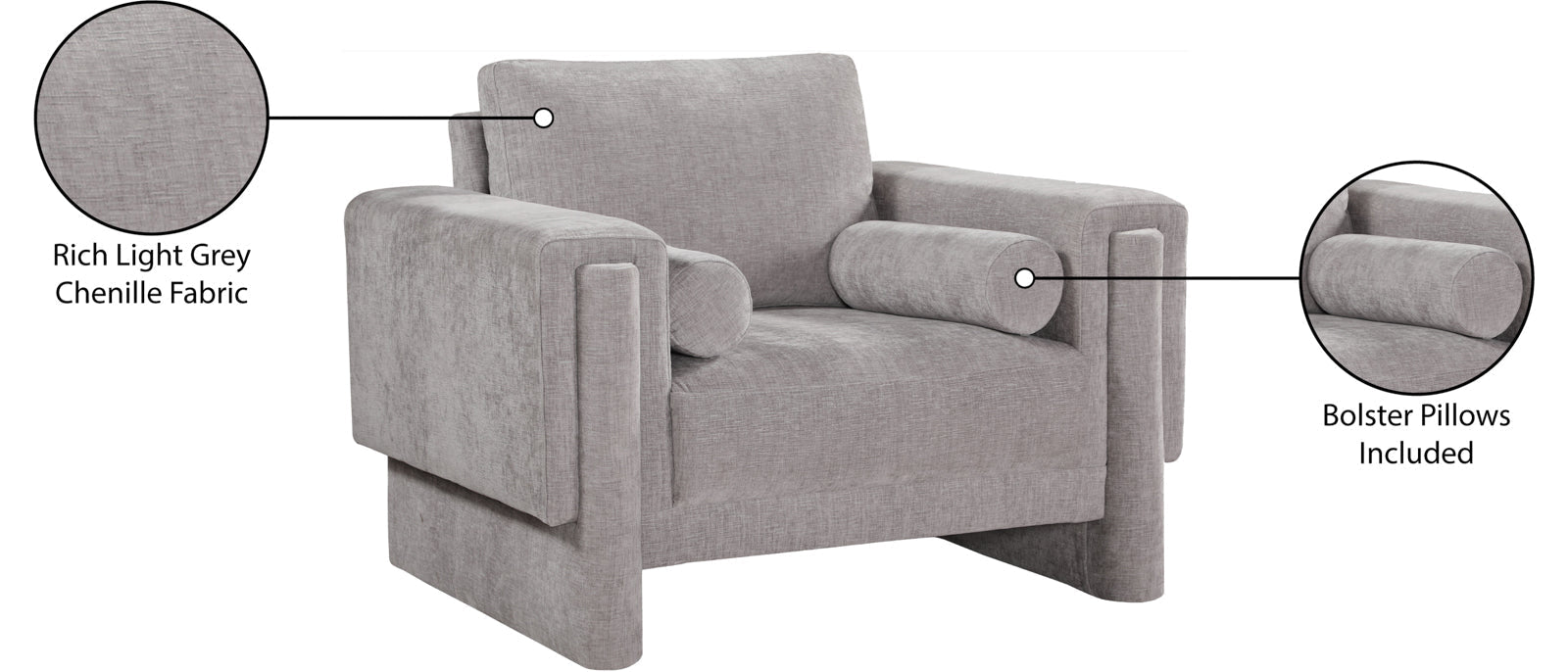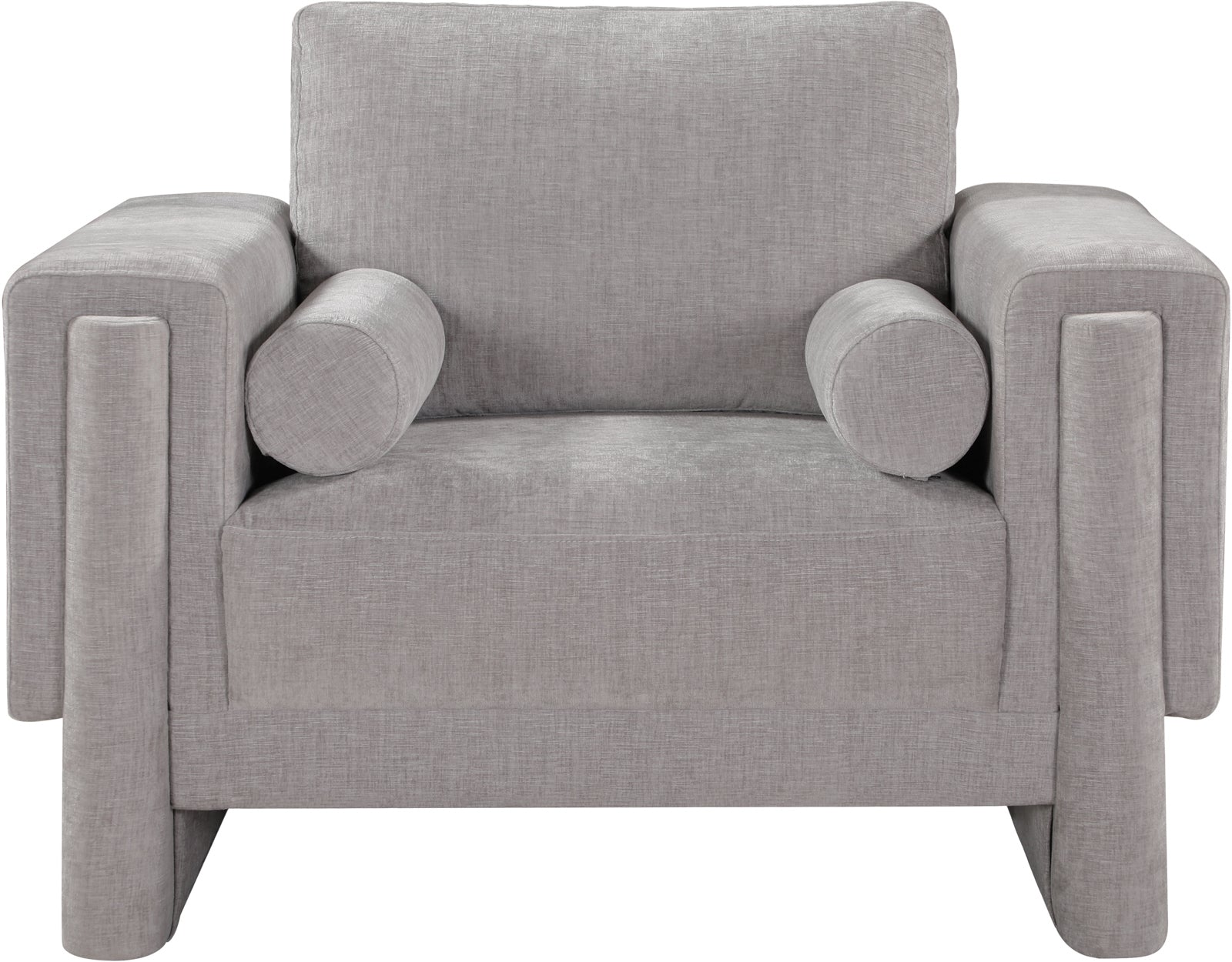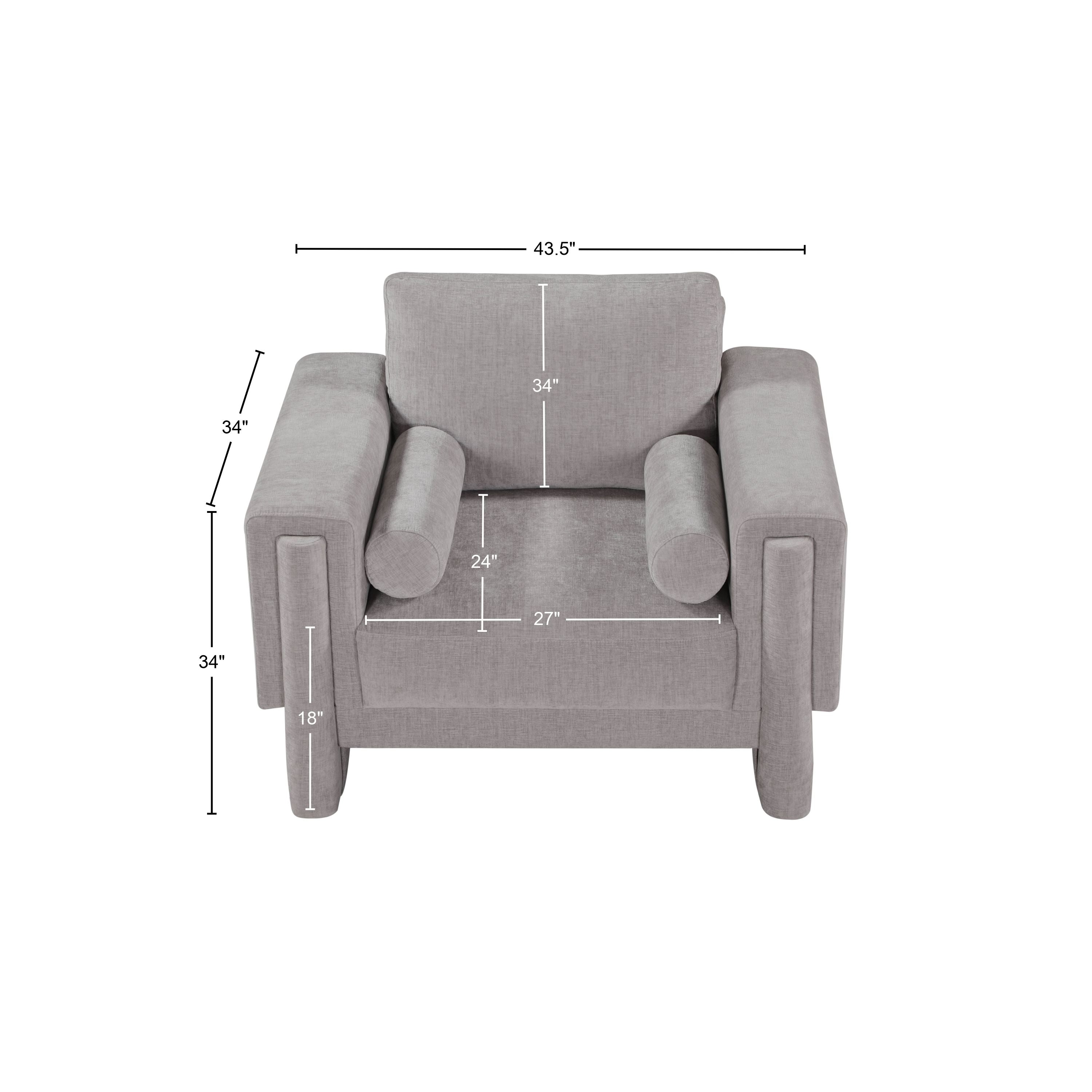 Refresh your living space with this Madeline chenille fabric living room chair. It's upholstered in rich grey chenille fabric with plush padding and bolster pillows that complete the look while supporting your body while you relax and unwind. The chair's modish design ensures it seamlessly complements any decor and fits well with other items in the Madeline collection. Whether you're entertaining guests or unwinding with a book, this chair provides both coziness and sophistication.