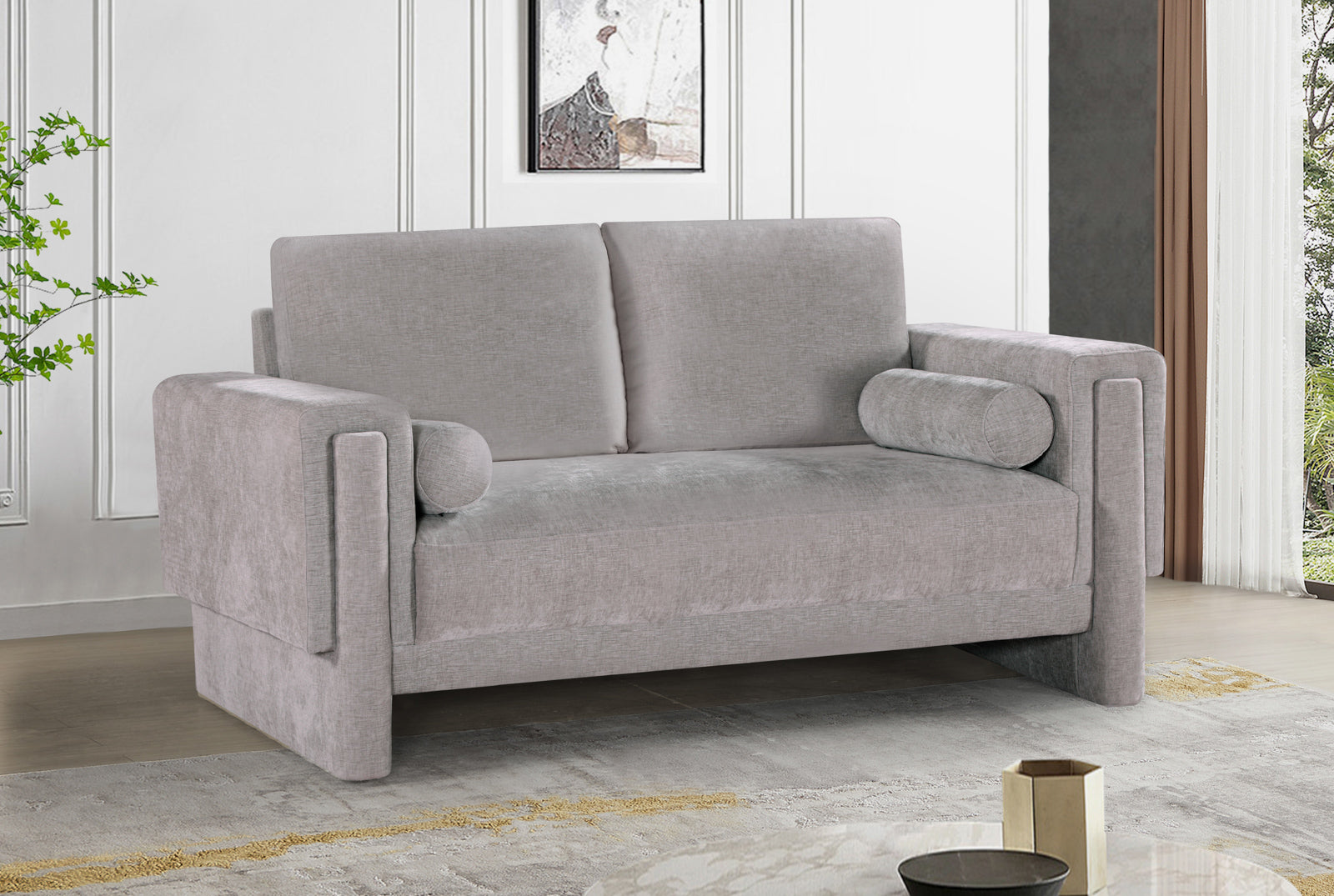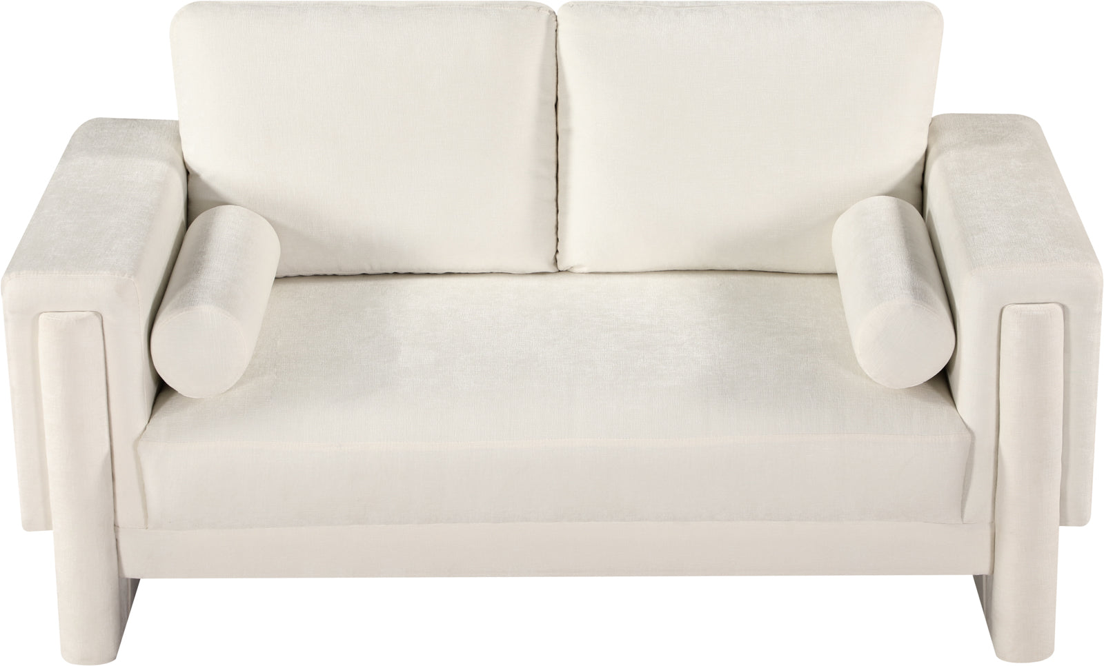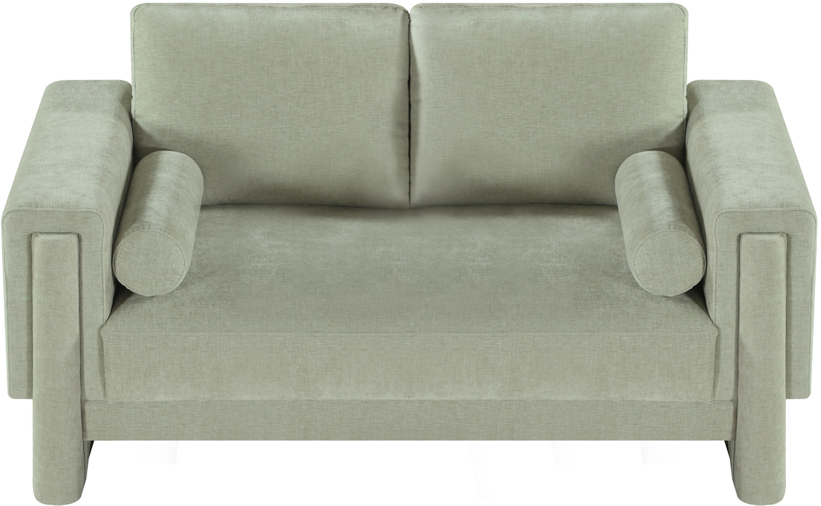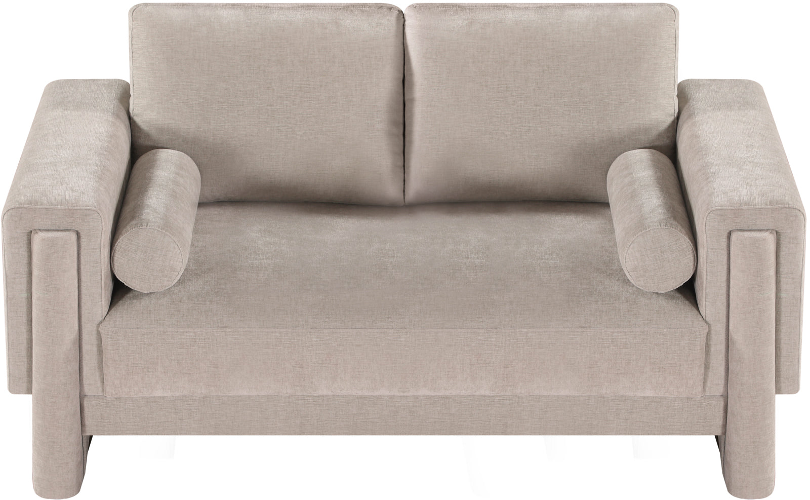 Refresh your living space with this Madeline chenille fabric living room loveseat. It's upholstered in navy chenille fabric with plush padding and bolster pillows that complete the look while supporting your body while you relax and unwind. The loveseat's modish design ensures it seamlessly complements any decor and fits well with other items in the Madeline collection. Whether you're entertaining guests or unwinding with a book, this chair provides both coziness and sophistication.