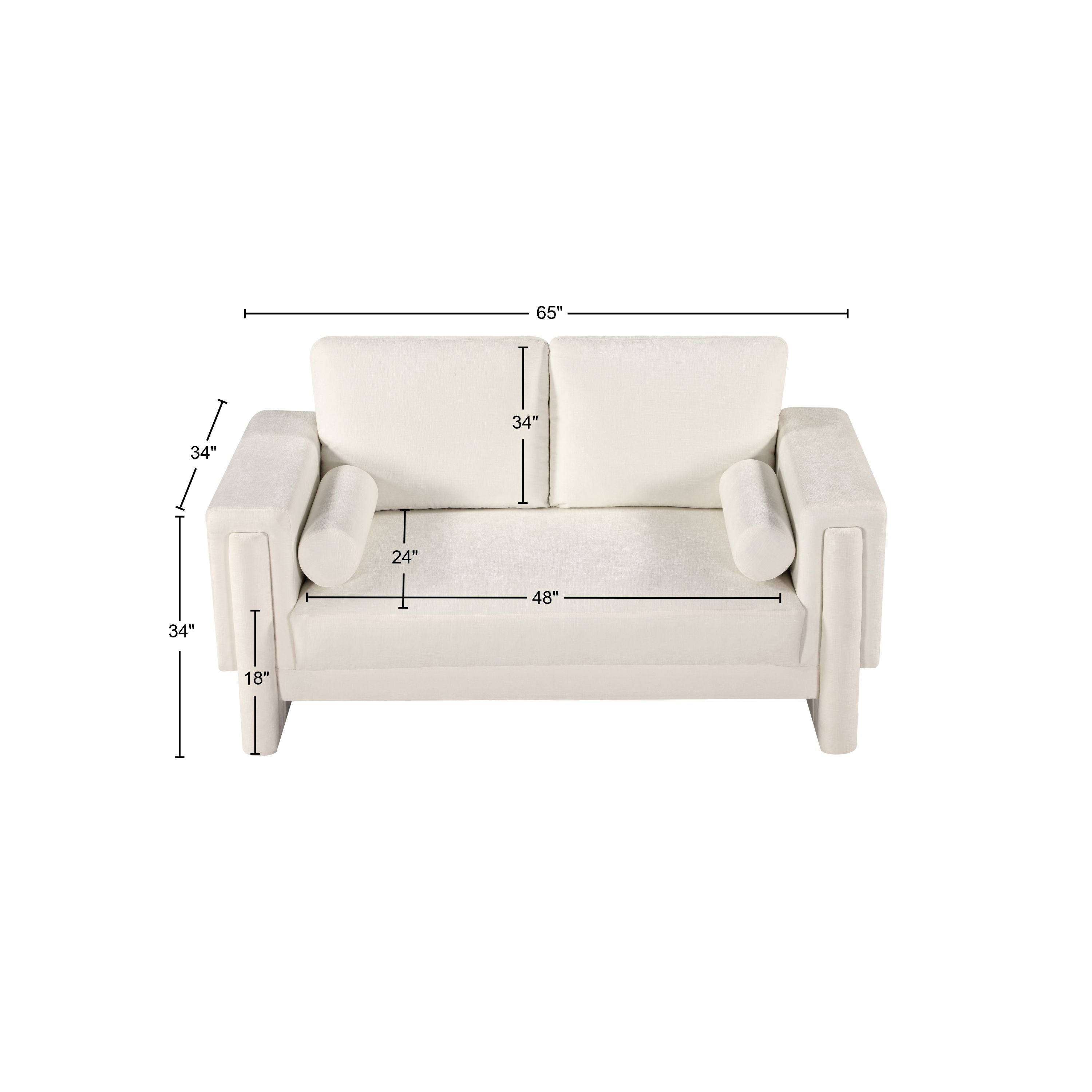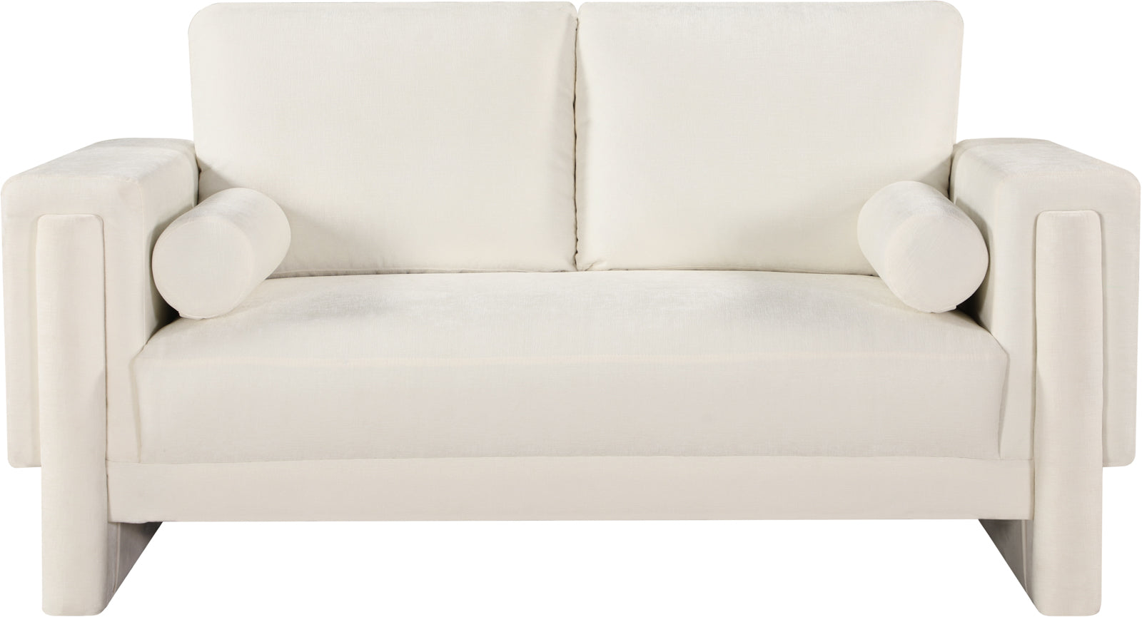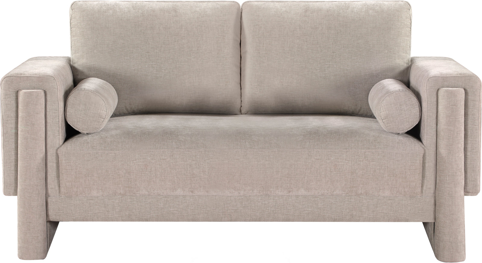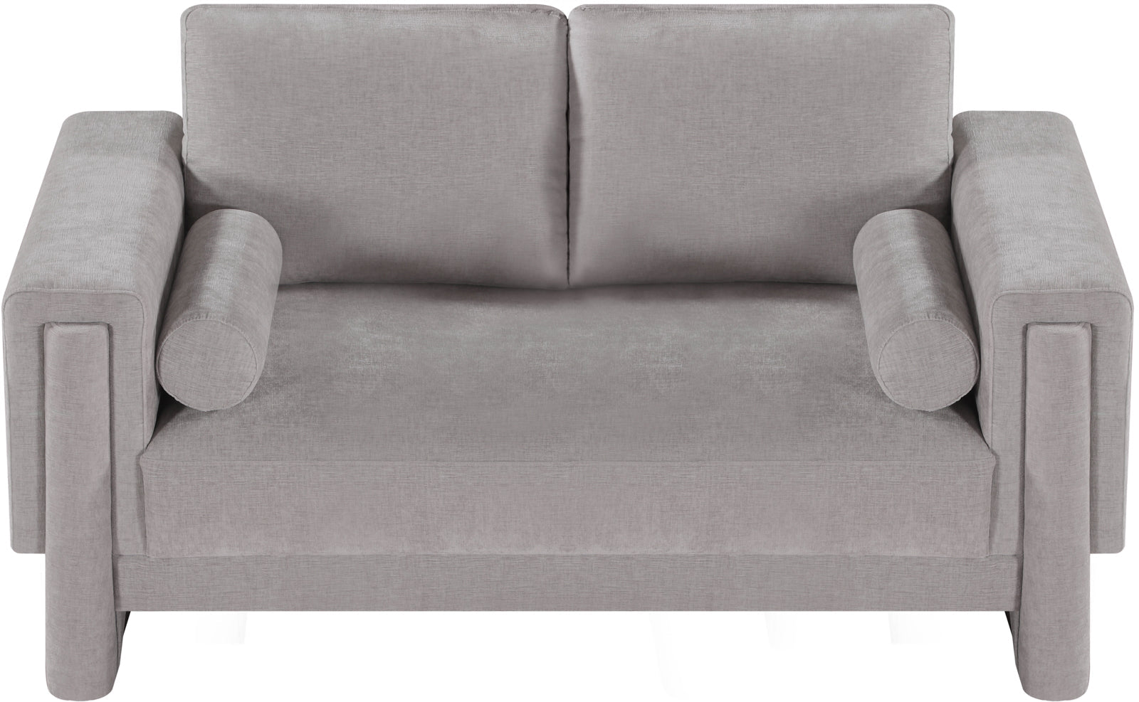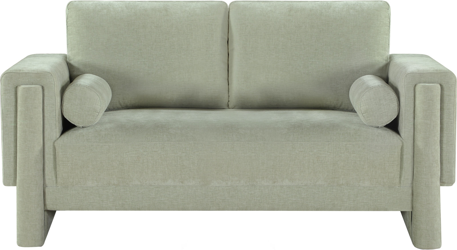 Refresh your living space with this Madeline chenille fabric living room loveseat. It's upholstered in navy chenille fabric with plush padding and bolster pillows that complete the look while supporting your body while you relax and unwind. The loveseat's modish design ensures it seamlessly complements any decor and fits well with other items in the Madeline collection. Whether you're entertaining guests or unwinding with a book, this chair provides both coziness and sophistication.