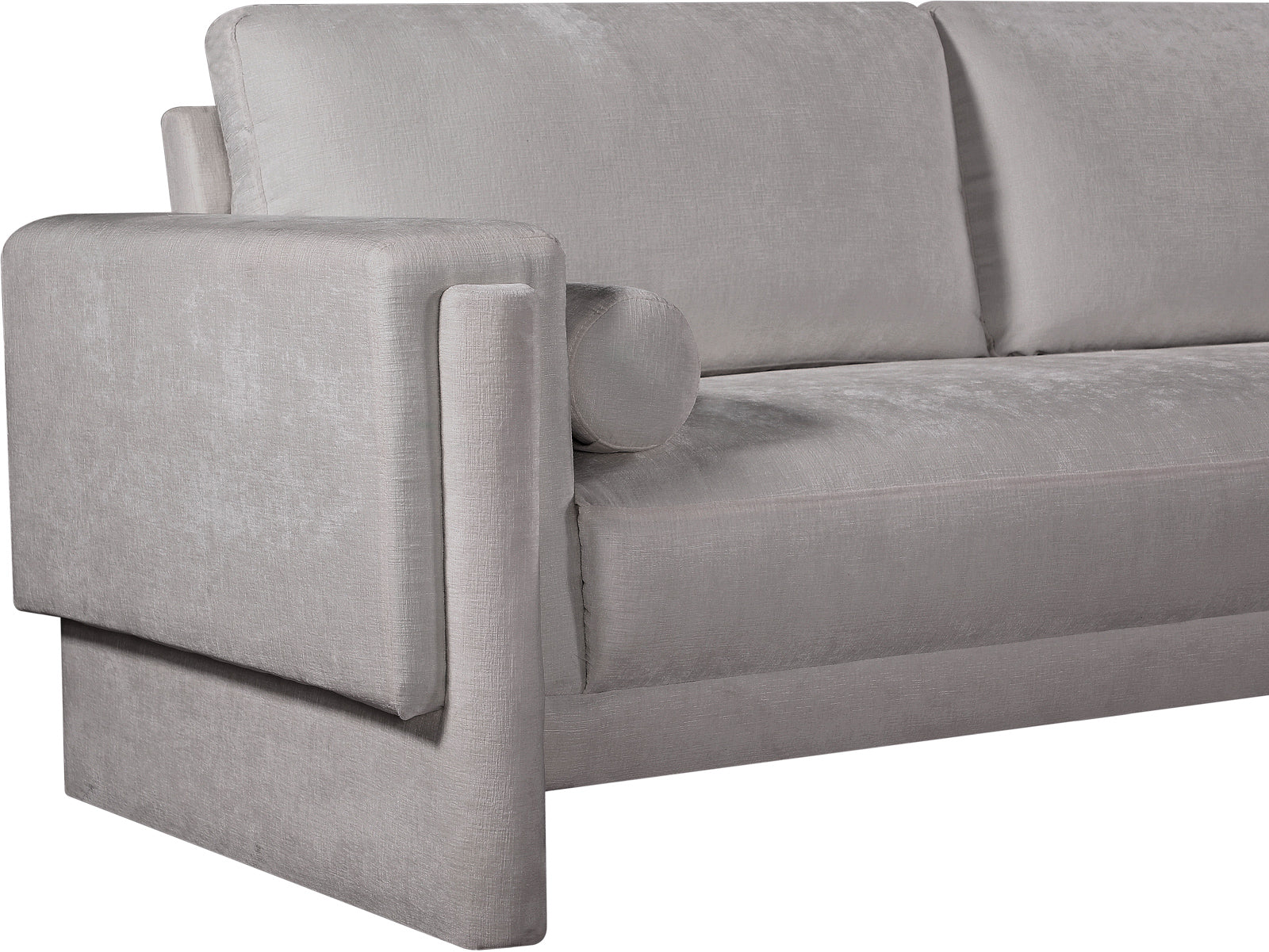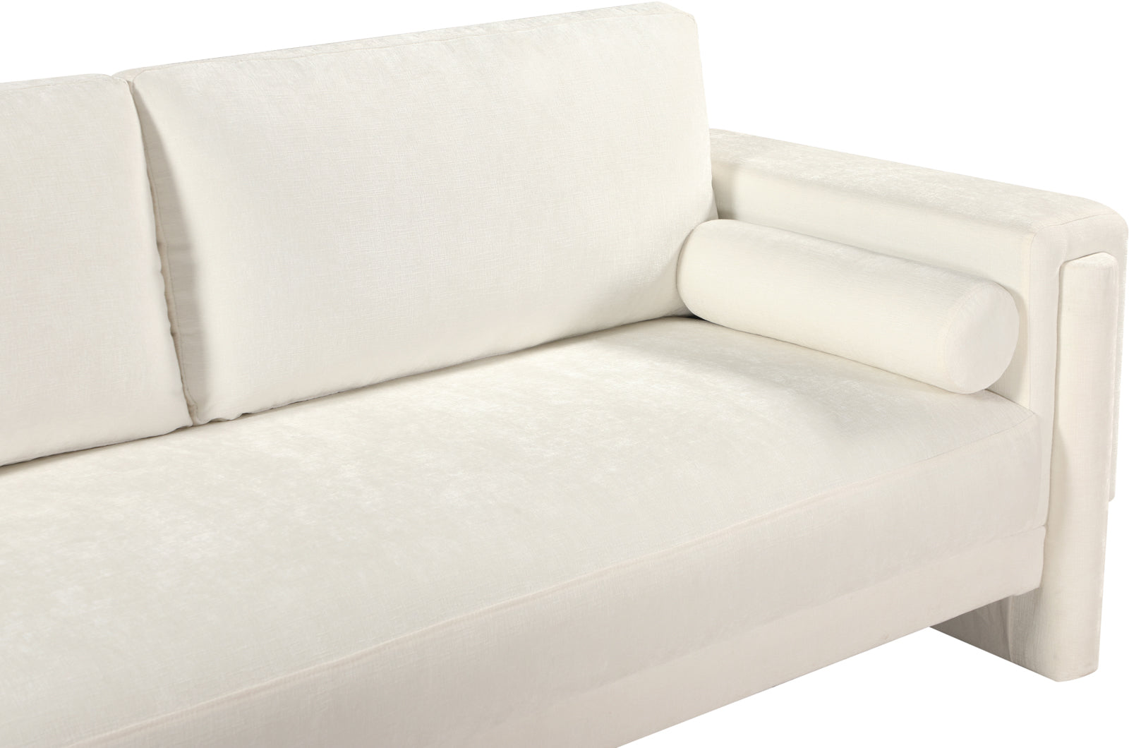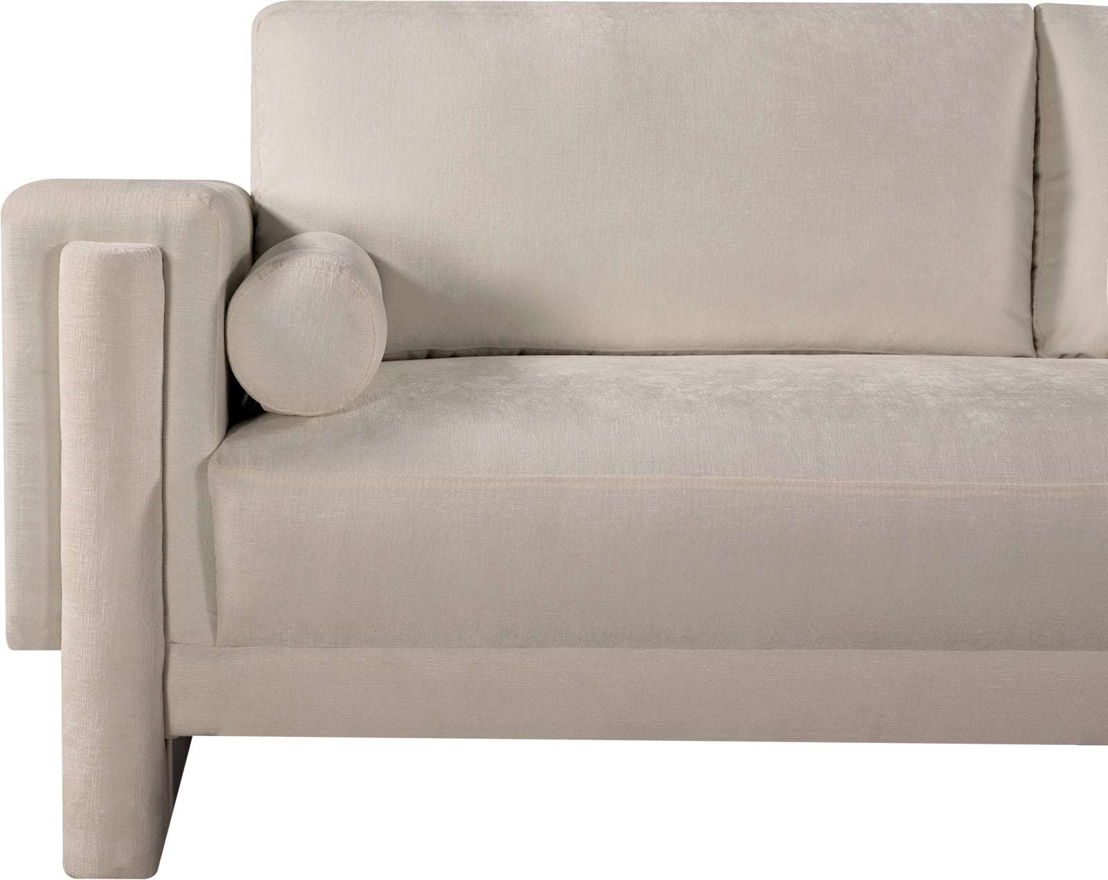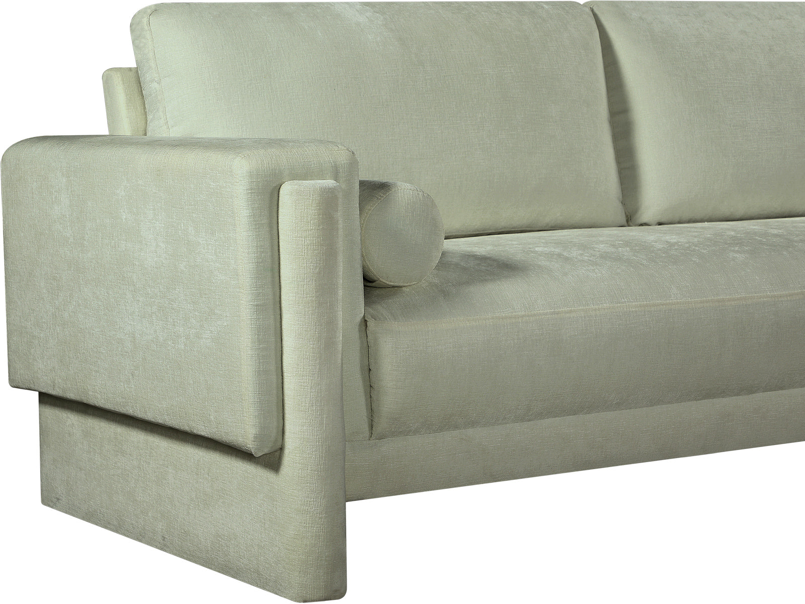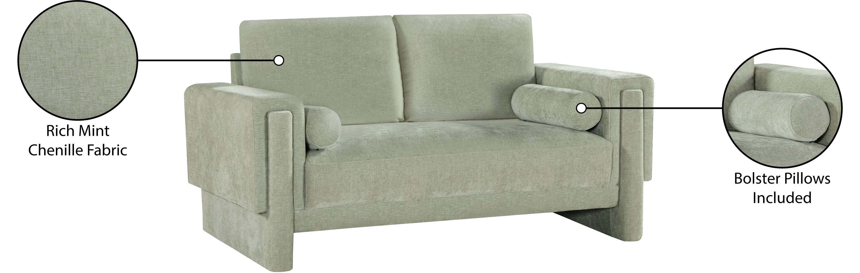 Refresh your living space with this Madeline chenille fabric living room loveseat. It's upholstered in navy chenille fabric with plush padding and bolster pillows that complete the look while supporting your body while you relax and unwind. The loveseat's modish design ensures it seamlessly complements any decor and fits well with other items in the Madeline collection. Whether you're entertaining guests or unwinding with a book, this chair provides both coziness and sophistication.
