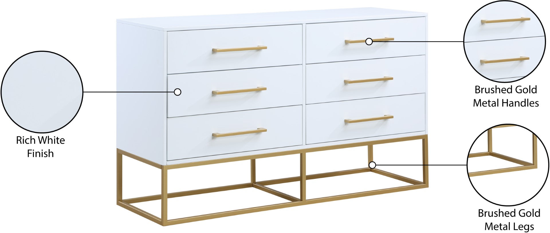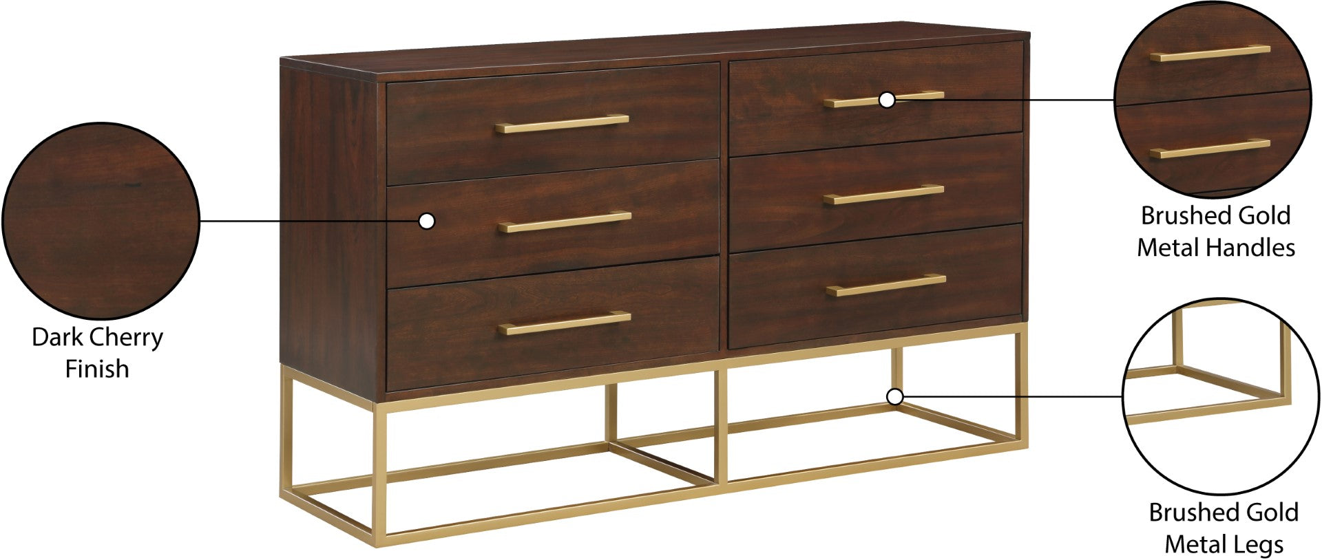 Maxine Contemporary Engineered Wood Dresser with Rich Black Finish and Brushed Gold Accents