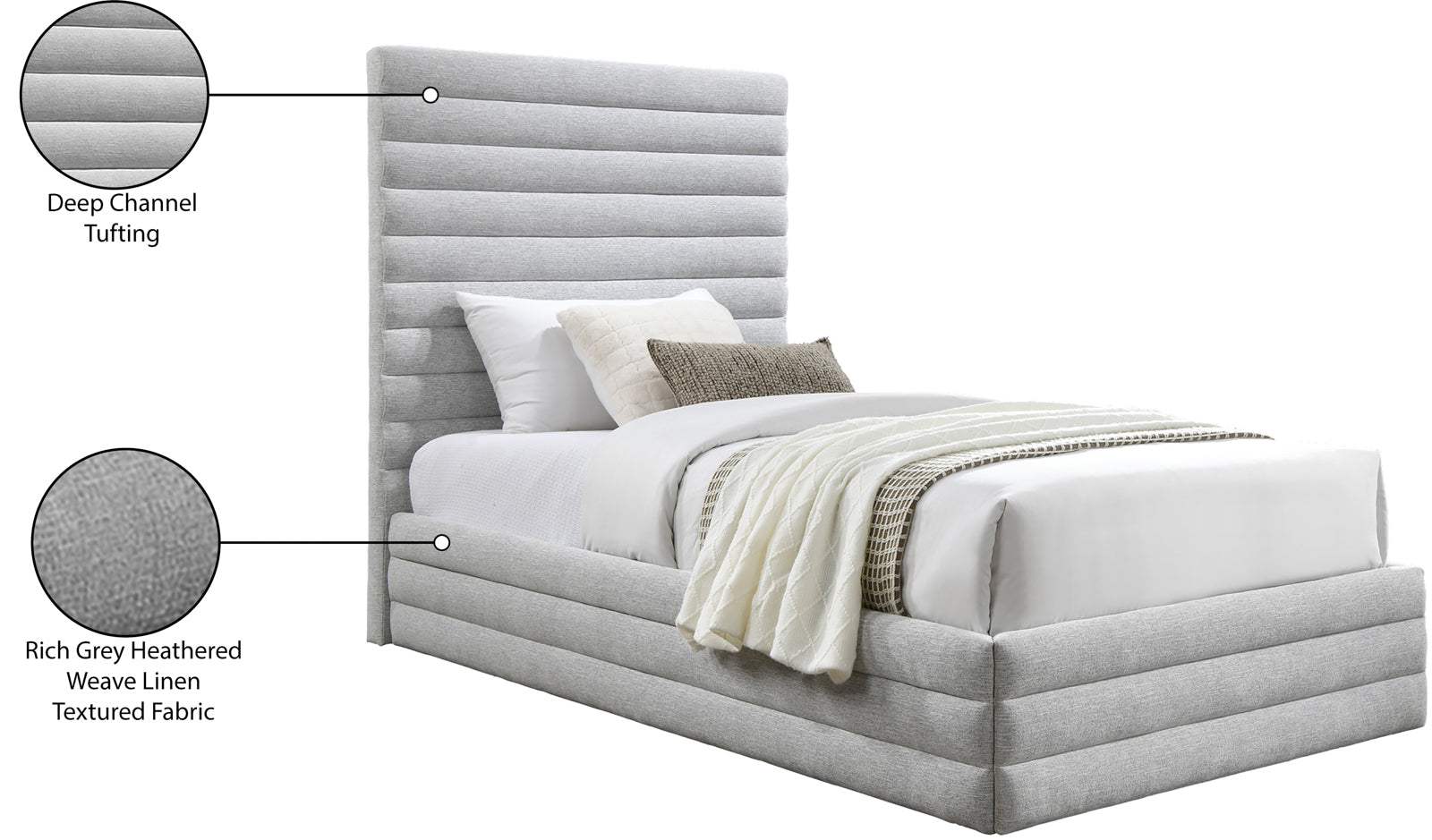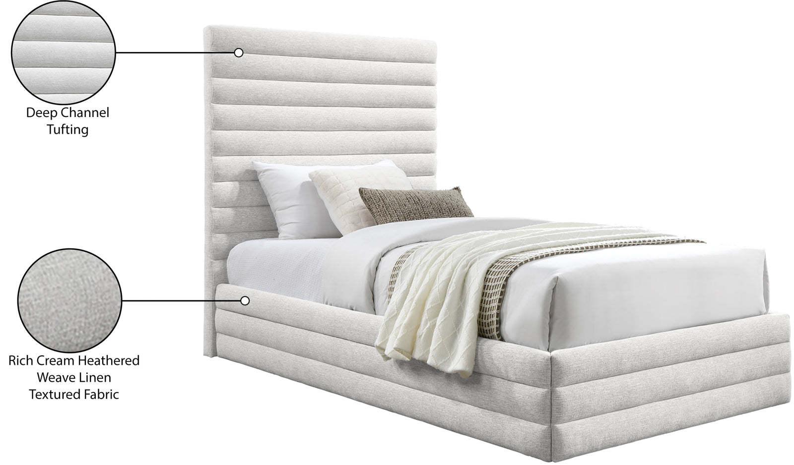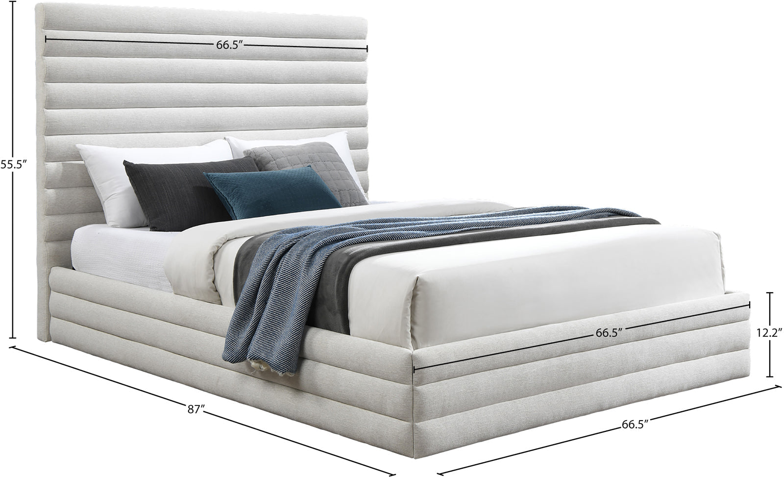 Maxwell Contemporary Bed – Luxurious Cream Linen Texture with Deep Channel Tufting for Elegance