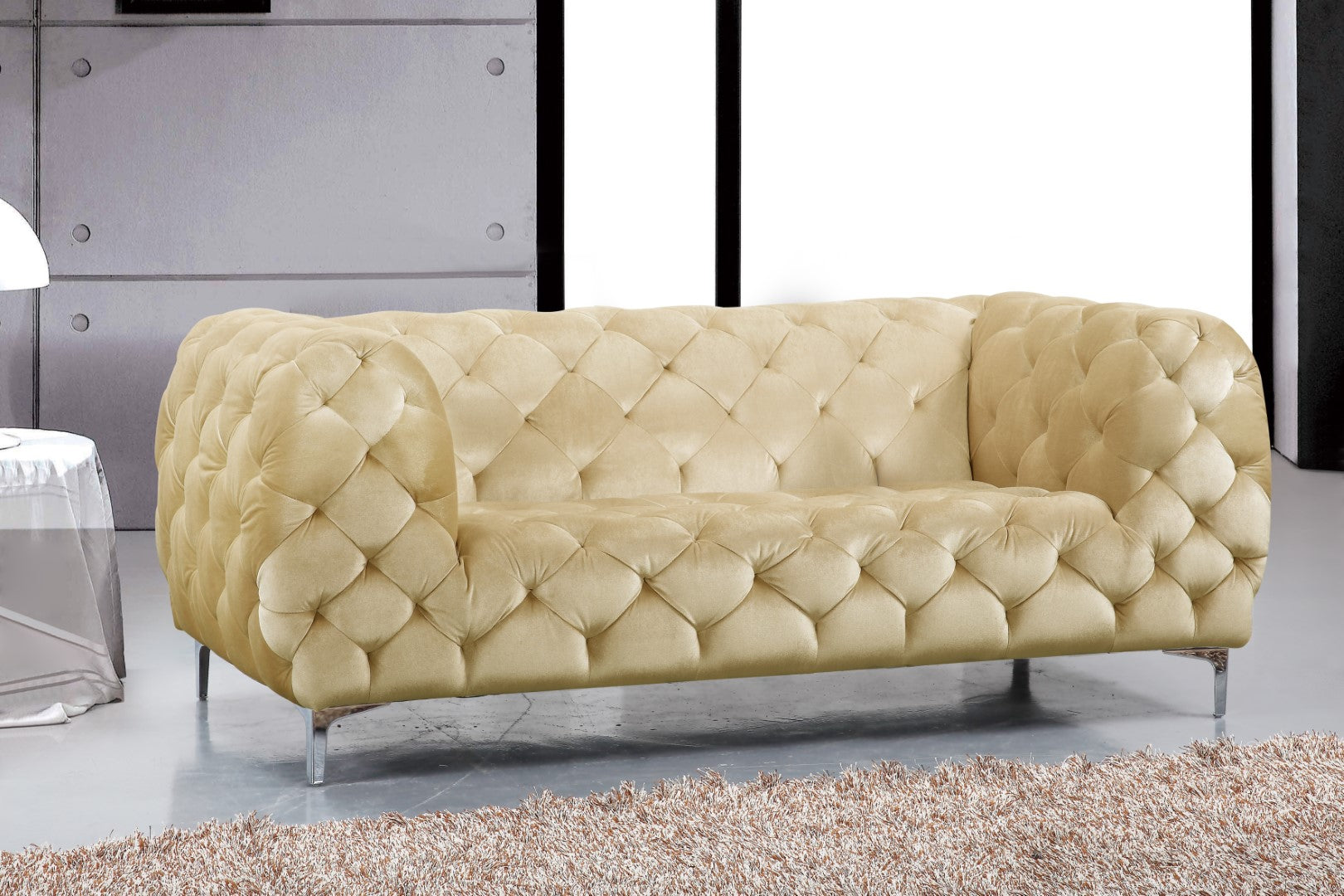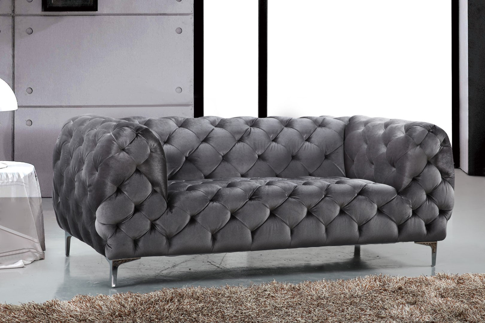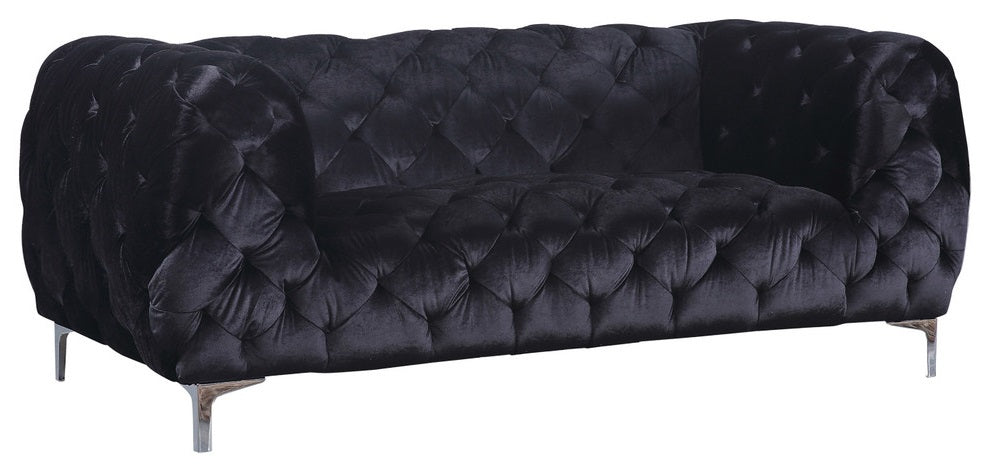 Mercer Contemporary Loveseat – Elegant Velvet Seating with Modern Design and Chrome Accents for Style