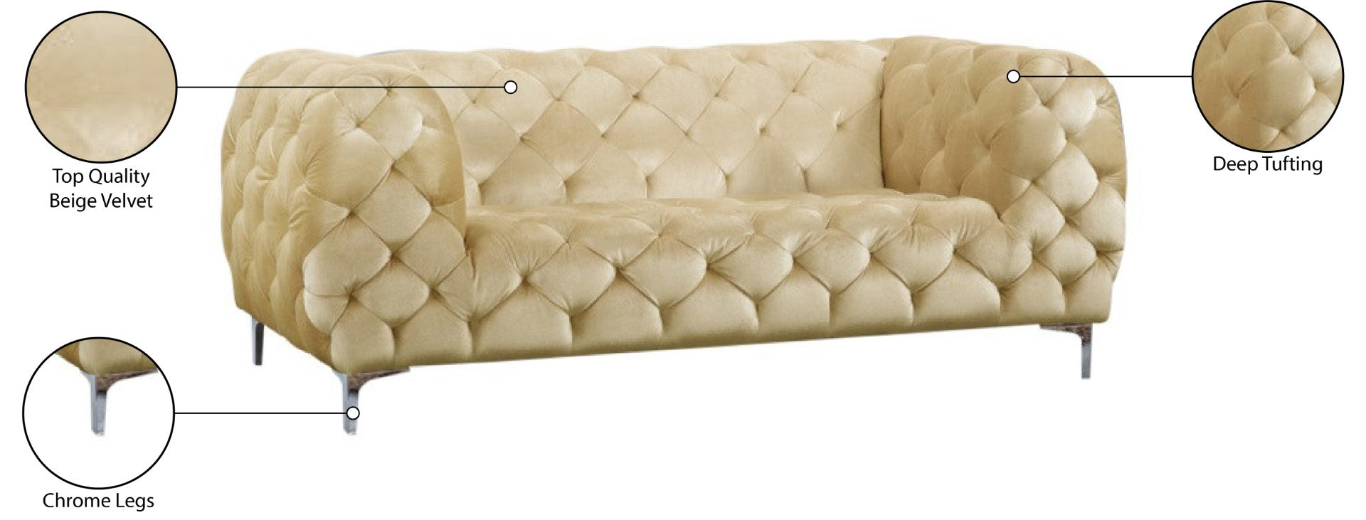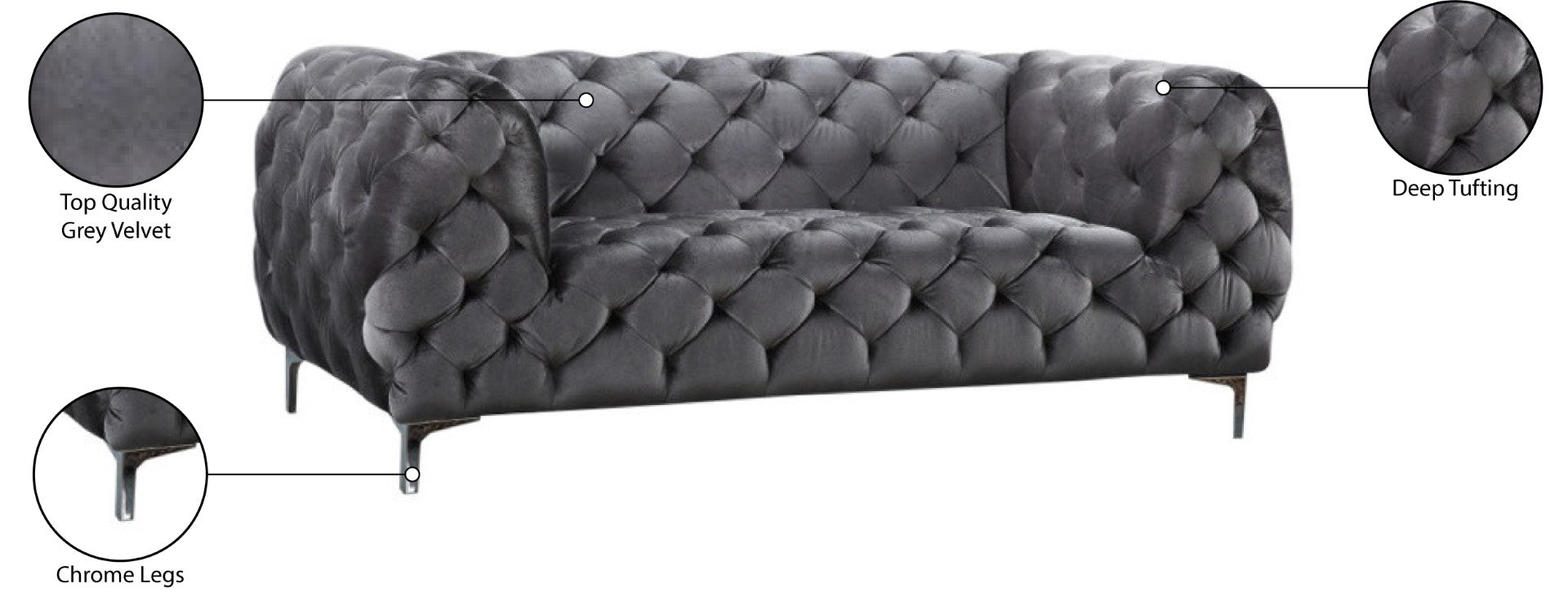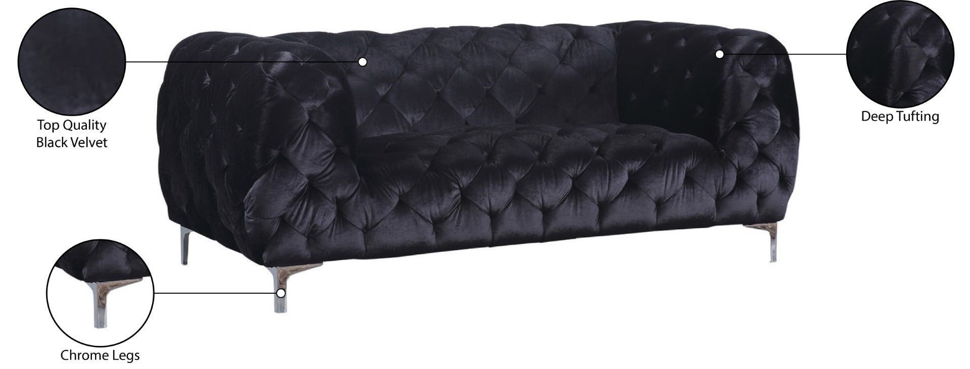 Mercer Contemporary Loveseat – Elegant Velvet Seating with Modern Design and Chrome Accents for Style