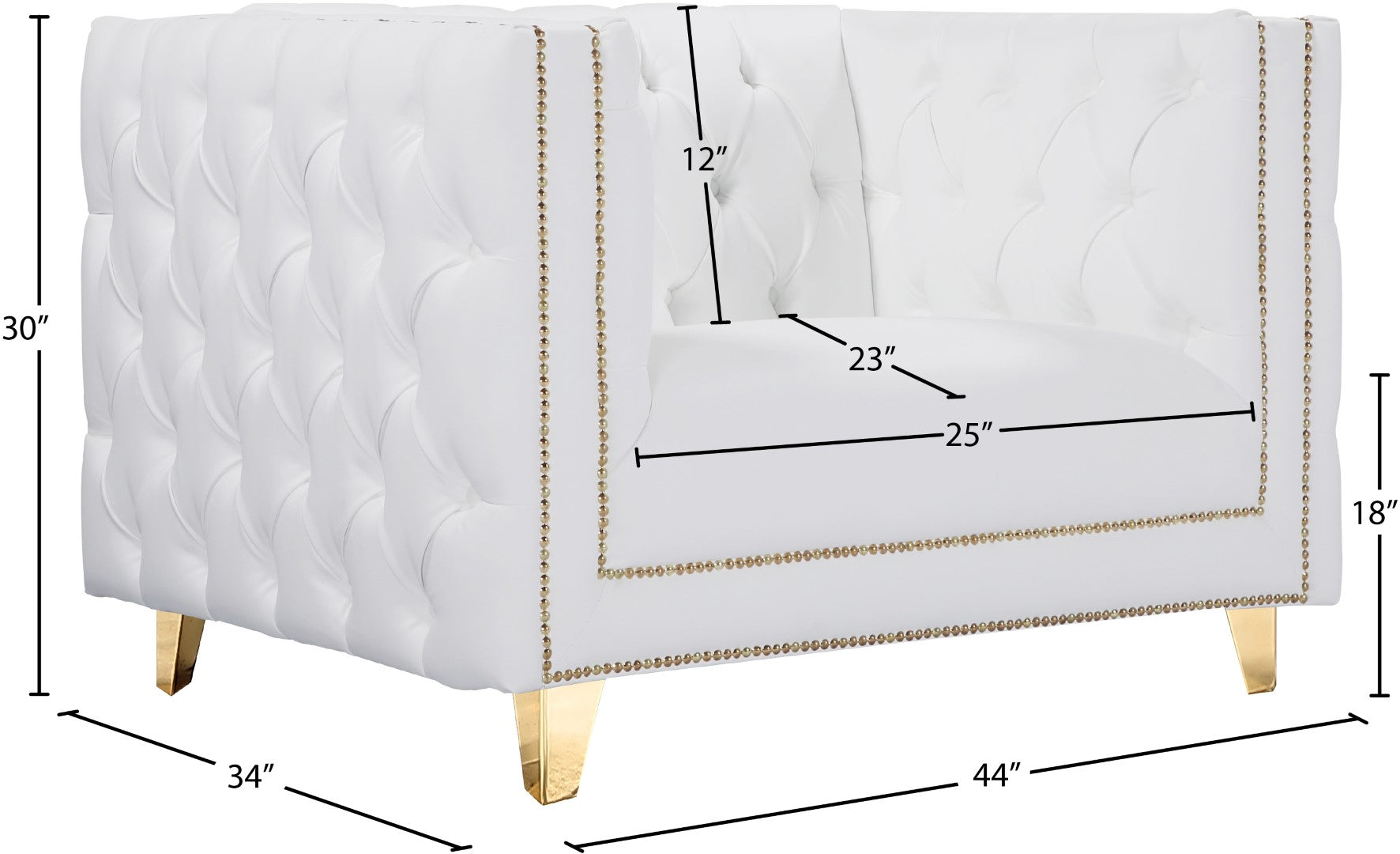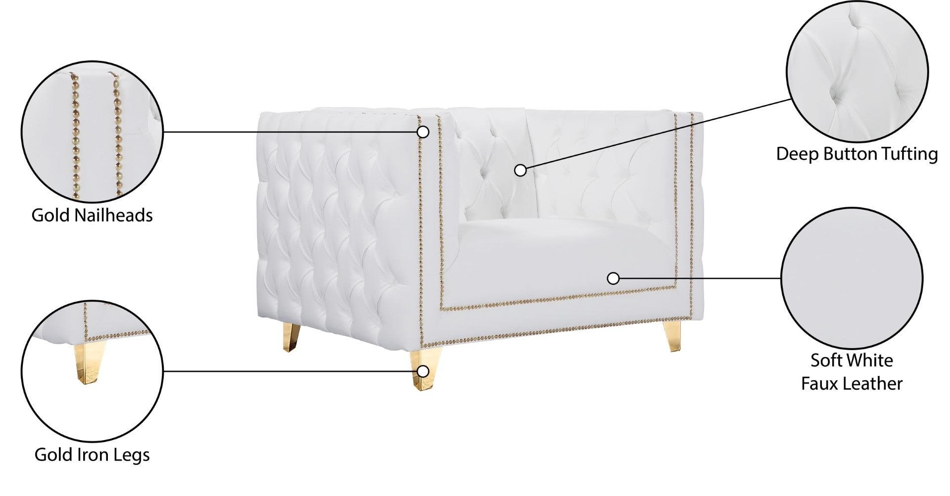 Upholstered in soft white faux leather, this Michelle chair is sumptuously glamorous. Designed for upscale living, this chair features rich gold nail...