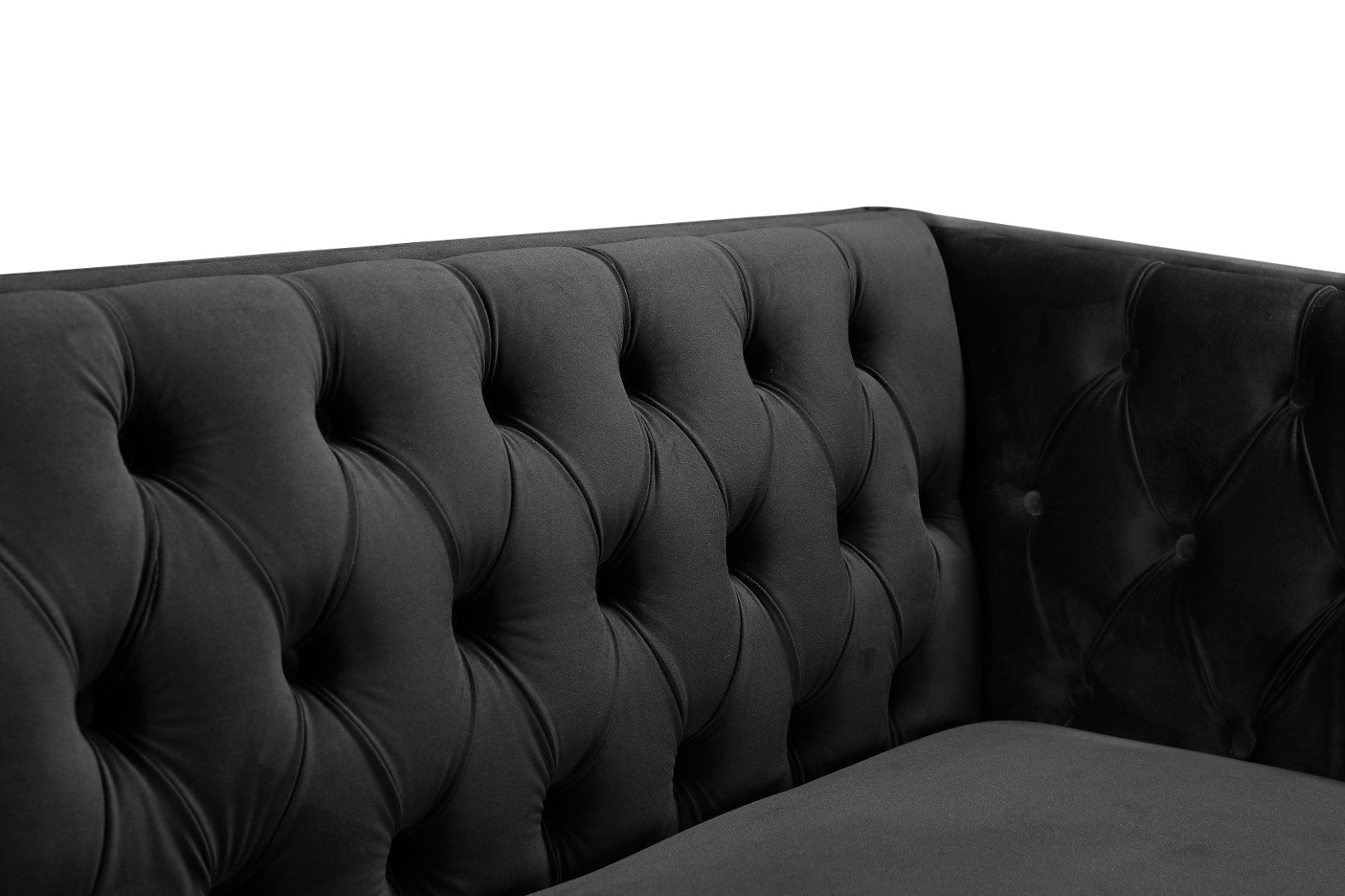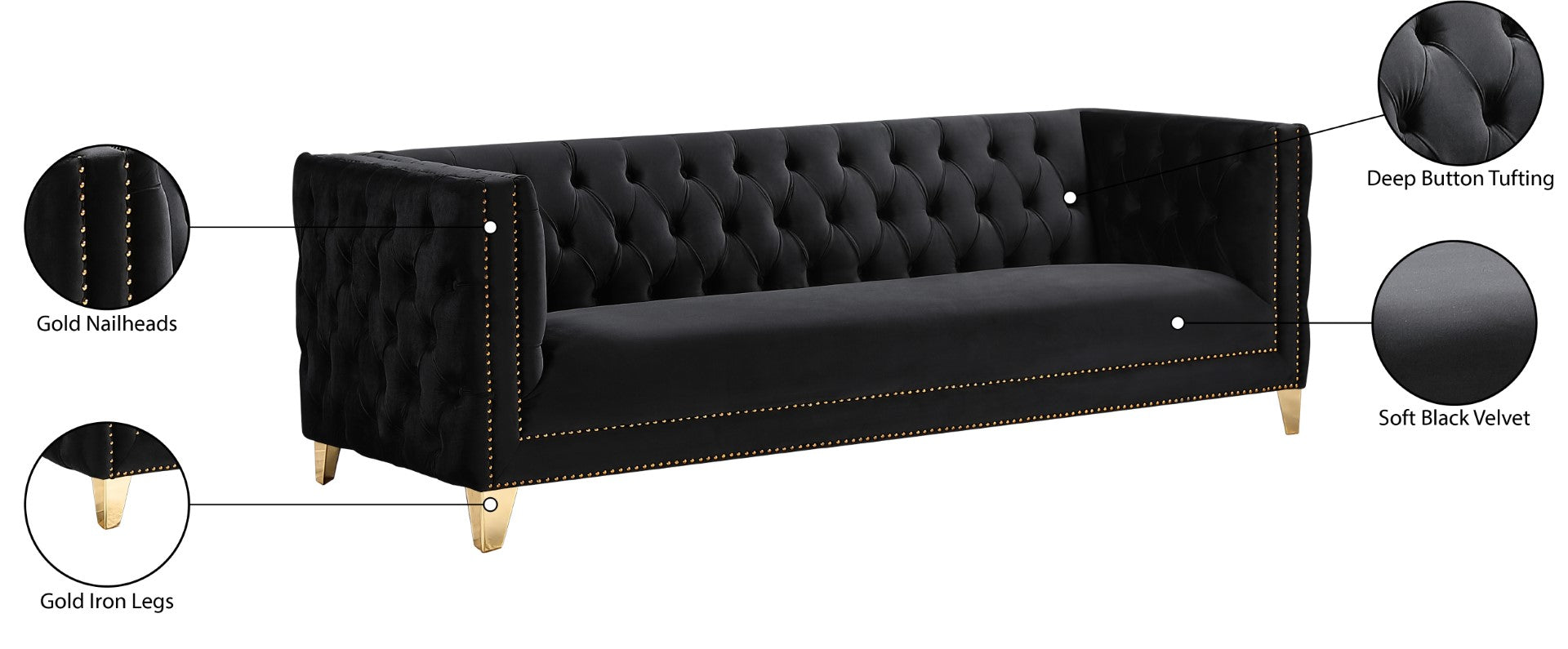 Upholstered in soft black velvet, this Michelle sofa is sumptuously glamorous. Designed for upscale living, this chair features rich gold nail head...