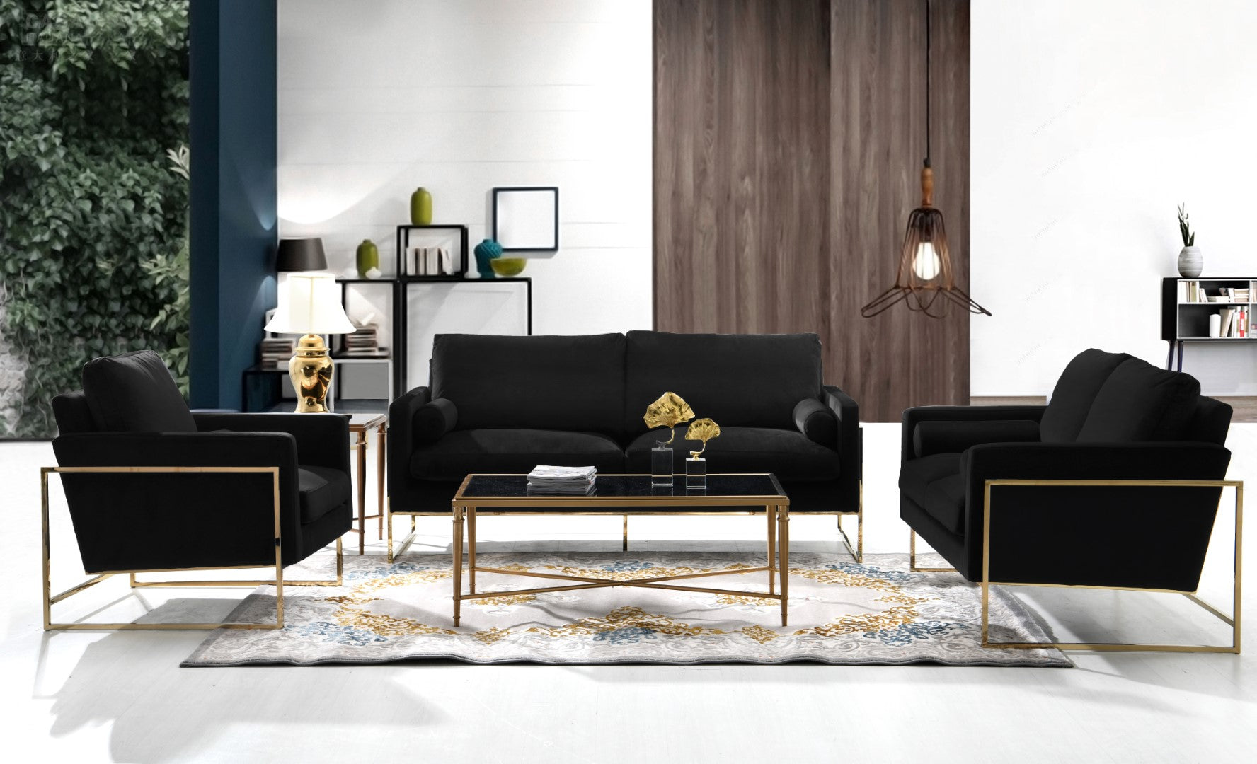 Mila Luxurious Contemporary Sofa with Gold Stainless Steel Frame and Comfortable Pillows for Relaxation