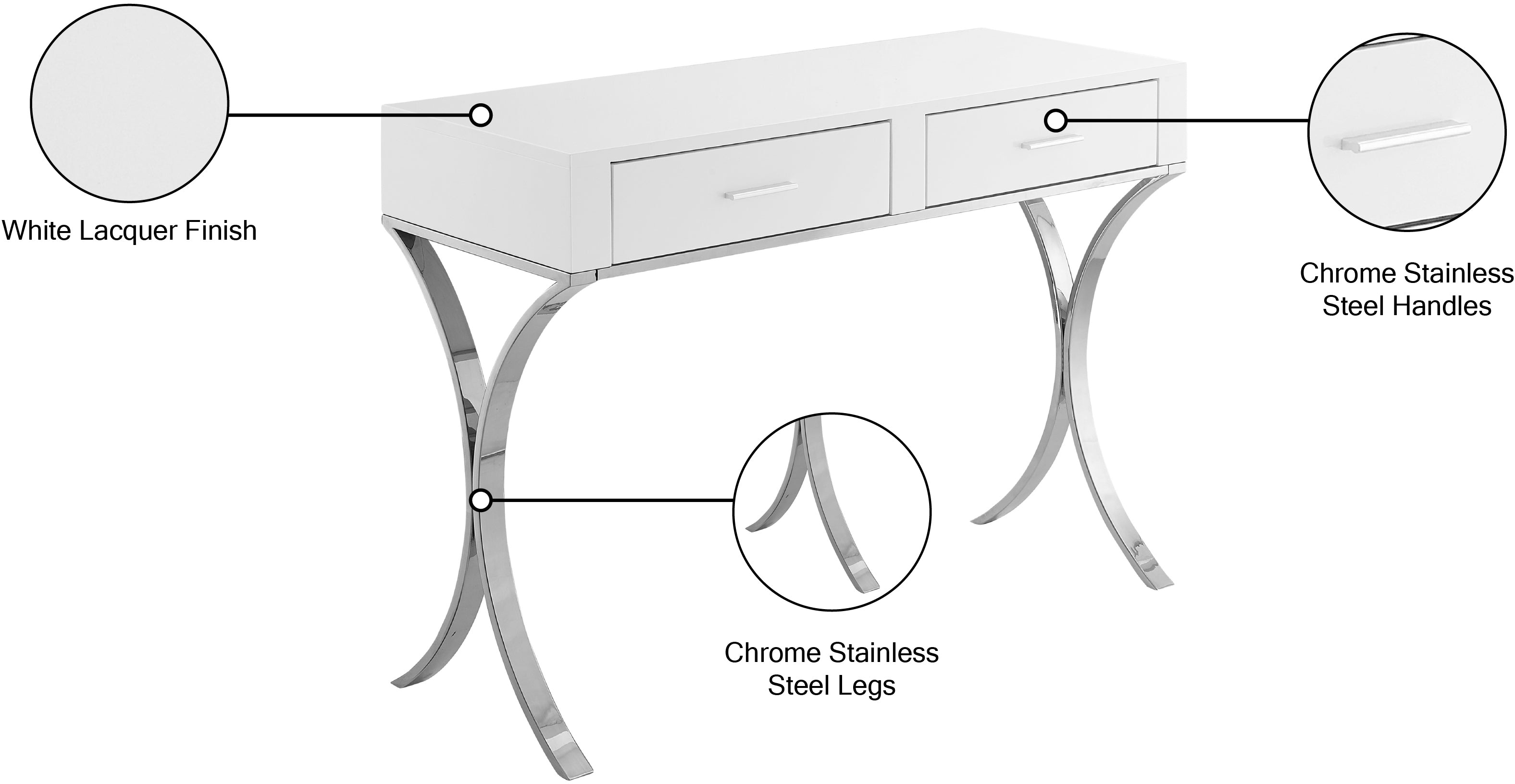 Monroe Contemporary Vanity/Desk/Console Table with Elegant Chrome Legs and Chic White Finish
