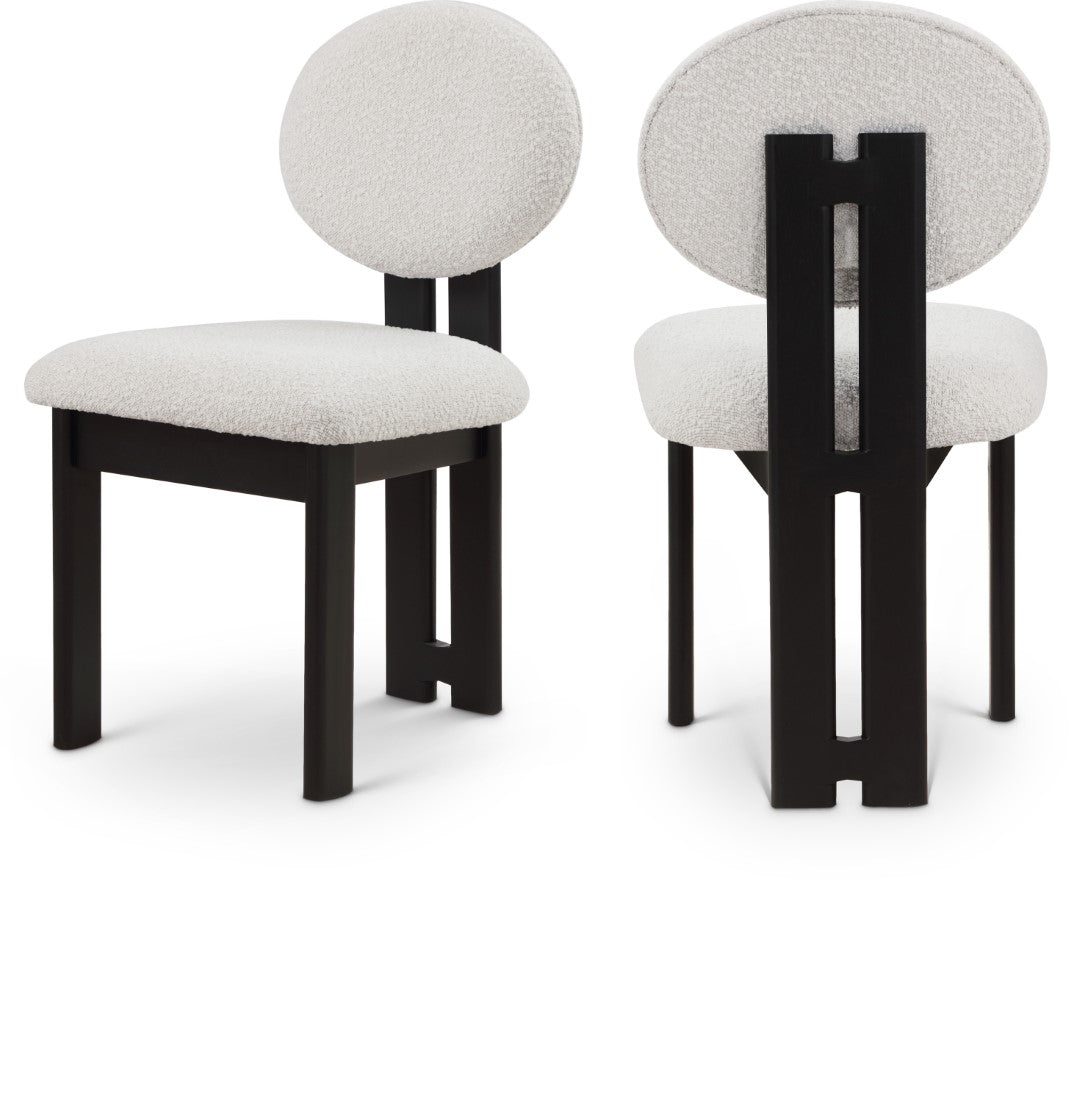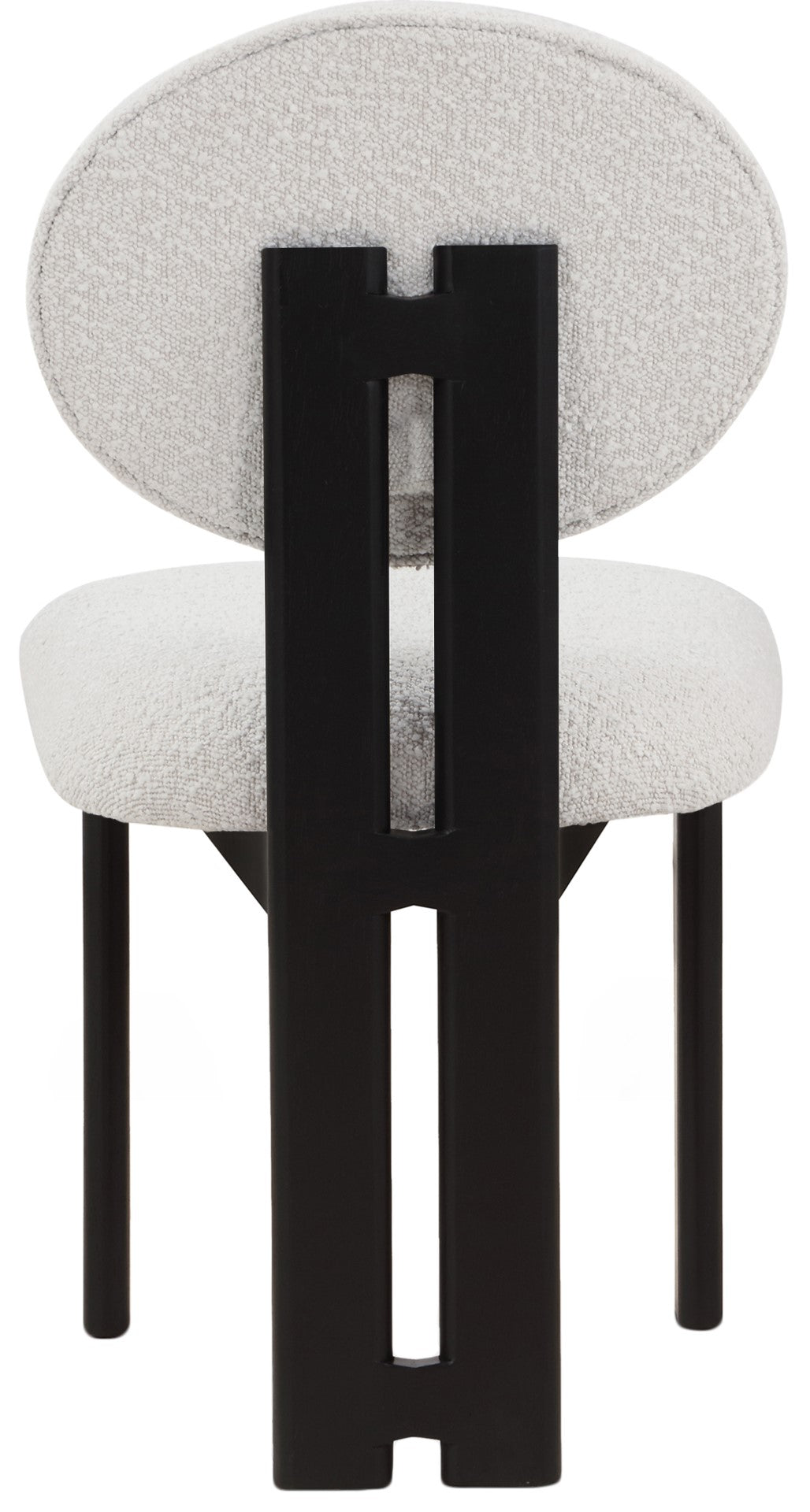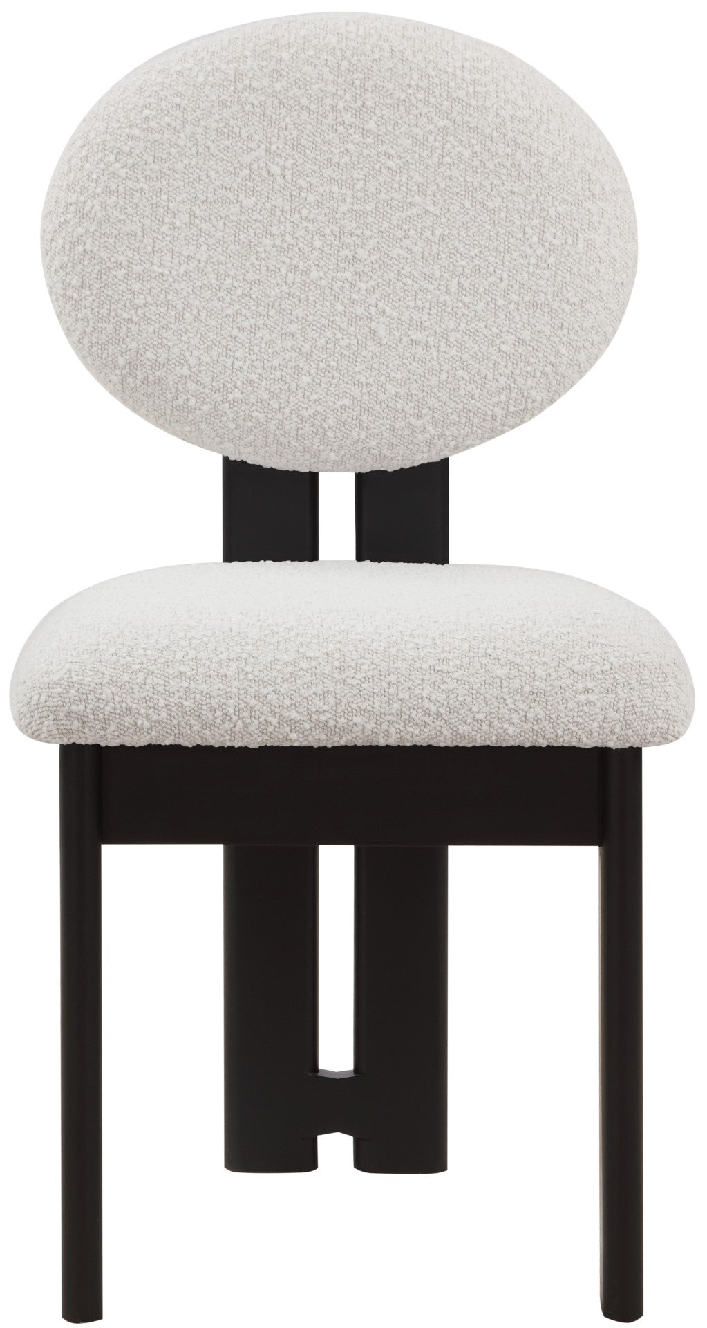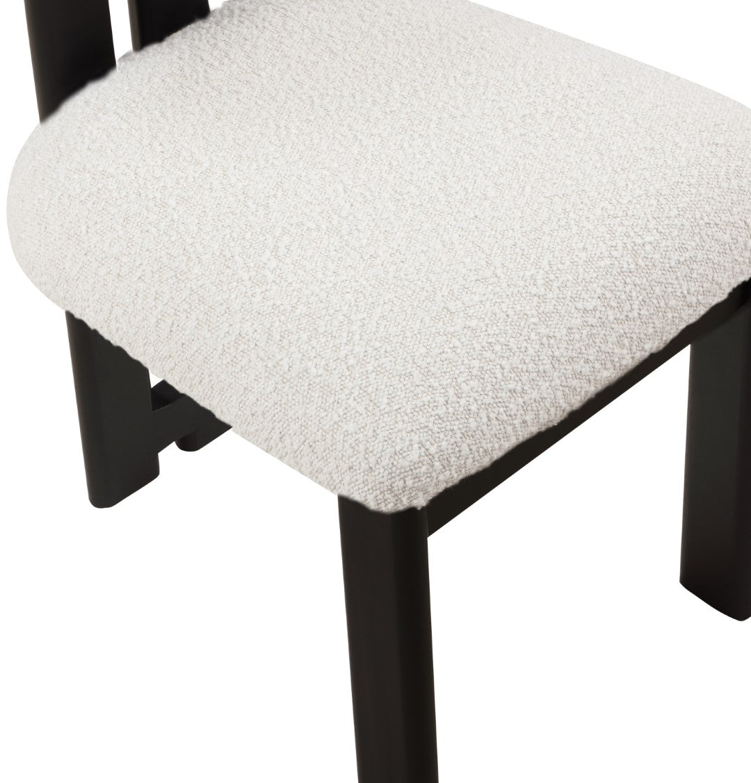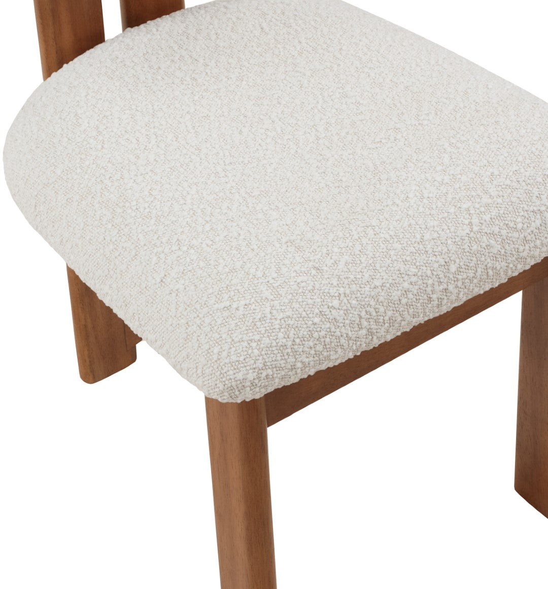 Elevate the look of your dining room with this Napa boucle fabric dining chair. This lovely chair features rich cream boucle fabric upholstery on the seat and back, so guests feel super comfortable from the minute they sit down and throughout the whole meal. Rubberwood and other wood products make up the frame's construction, giving the chair a sturdy countenance to withstand long-term use in your busy dining room or eat-in kitchen area.