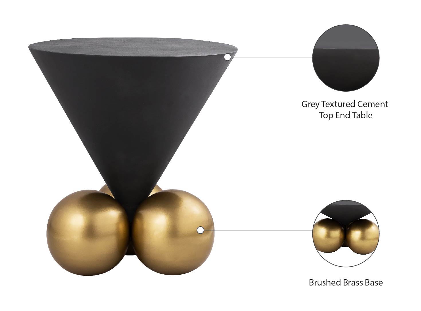 Naples Sculptural End Table - Glamorous Grey Cement Top with Brushed Brass Base for Modern Elegance