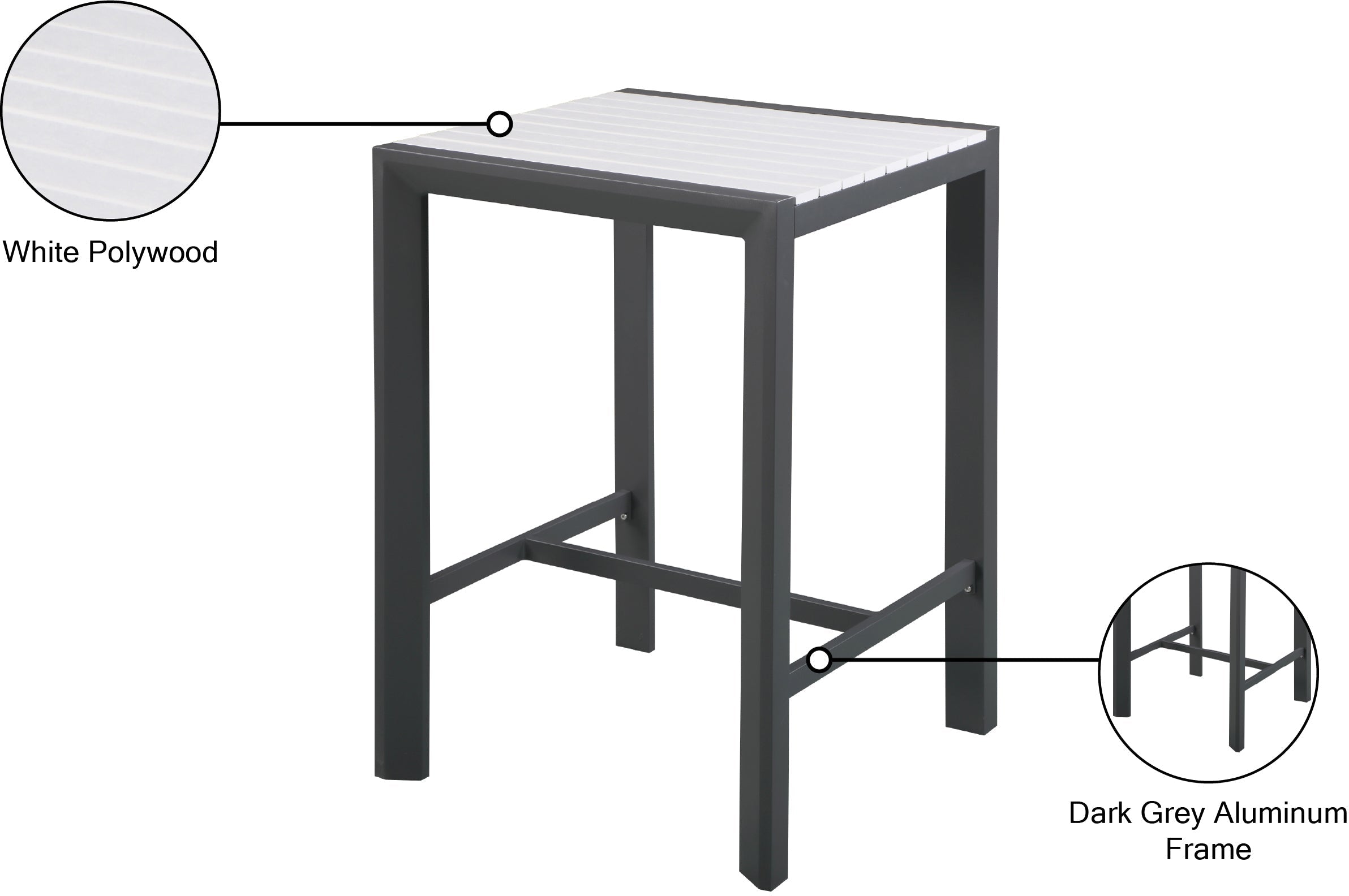 Nizuc Contemporary Outdoor Aluminum Square Bar Table with Sleek Design for Stylish Entertaining
