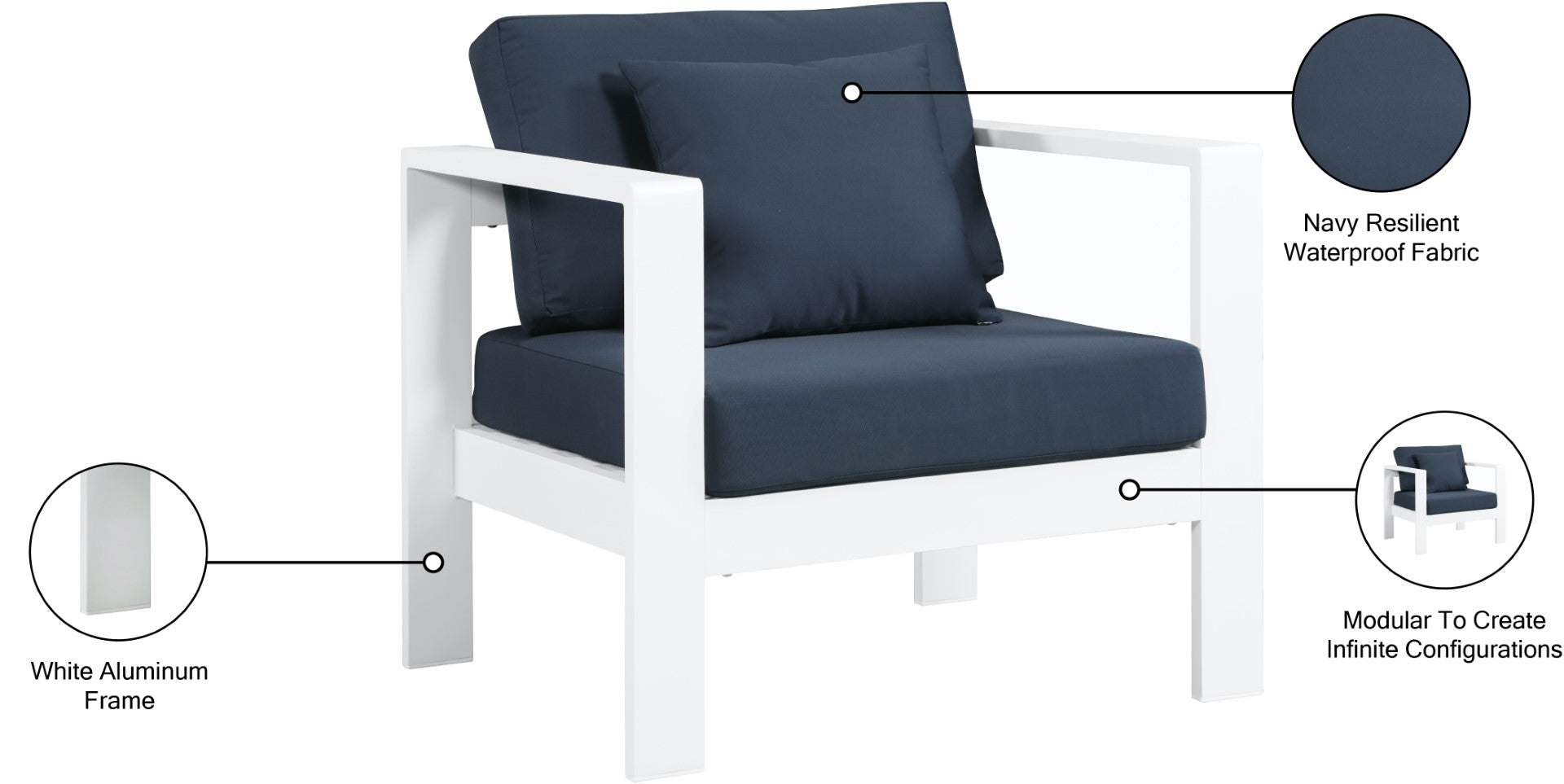 Nizuc Contemporary Outdoor Patio Arm Chair - Stylish Waterproof Fabric & Sturdy Aluminum Frame