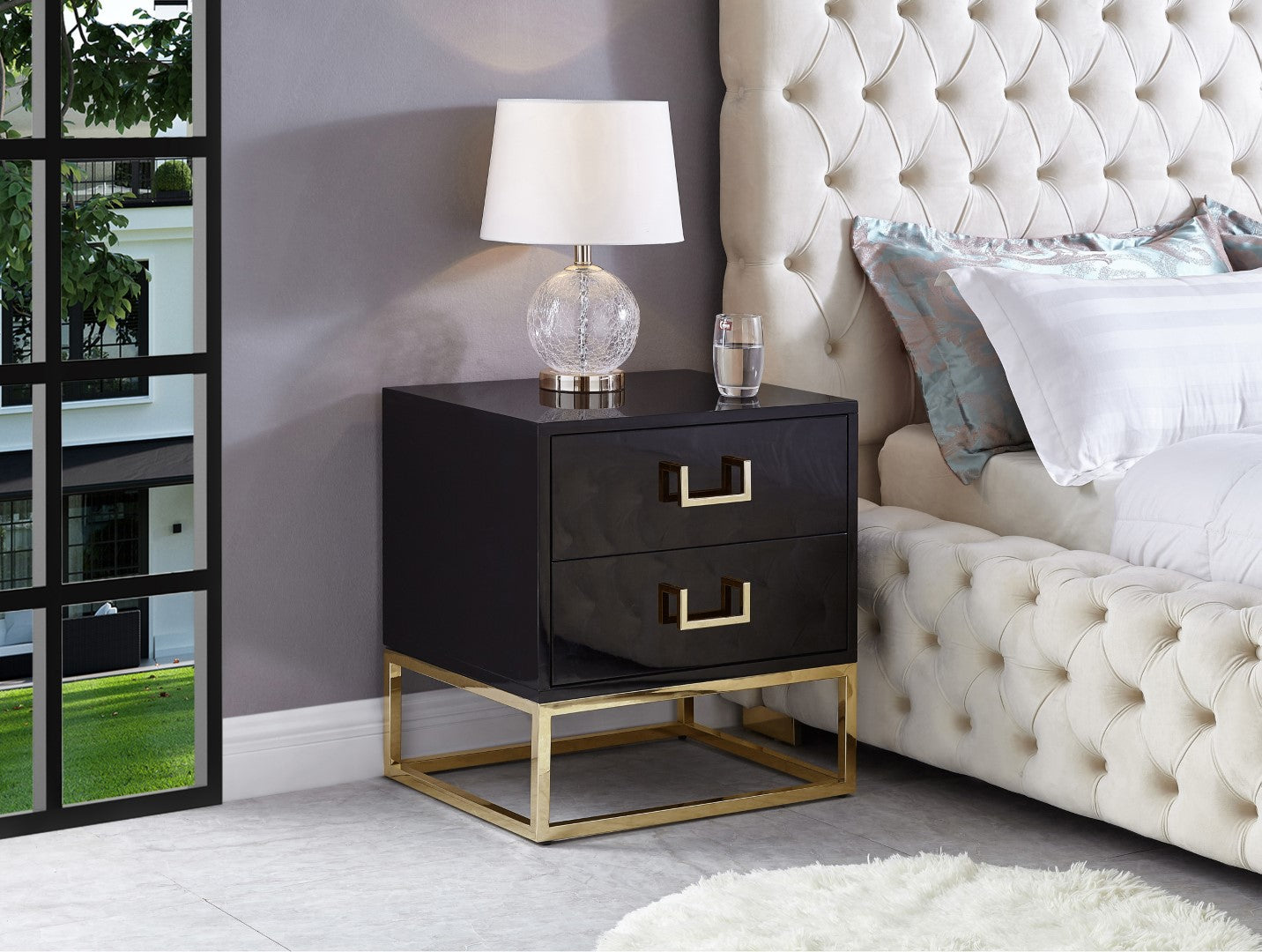 Nova Contemporary Side Table with Gold Stainless Steel Base & Black Lacquer Finish for Chic Style
