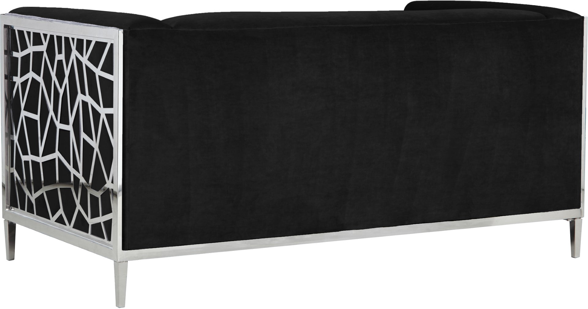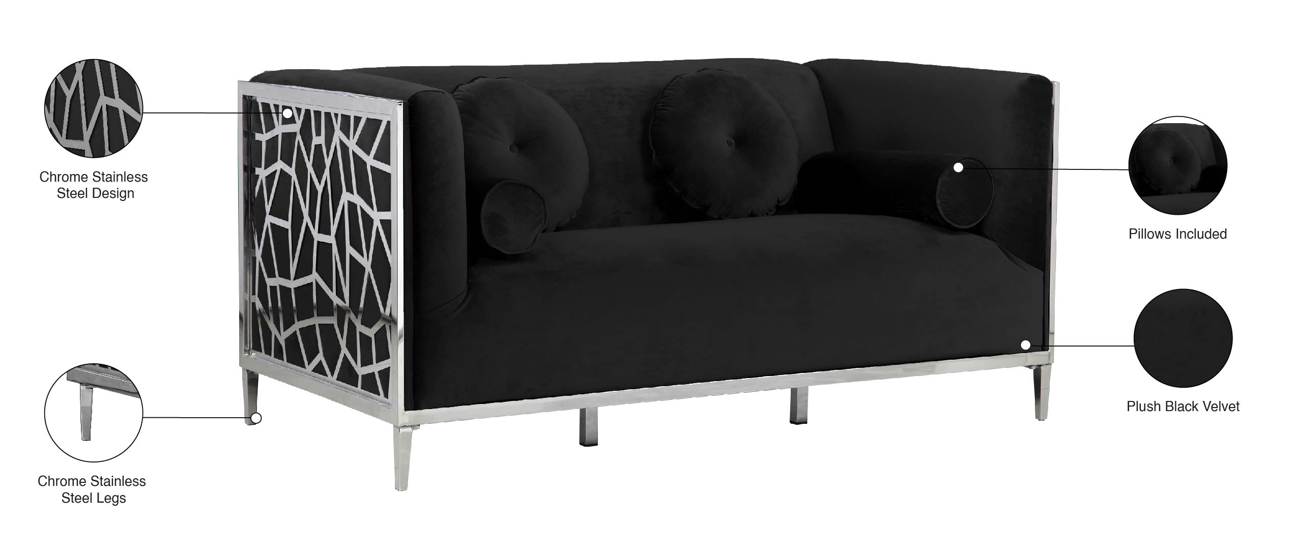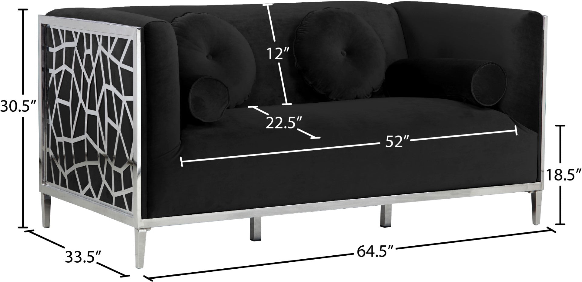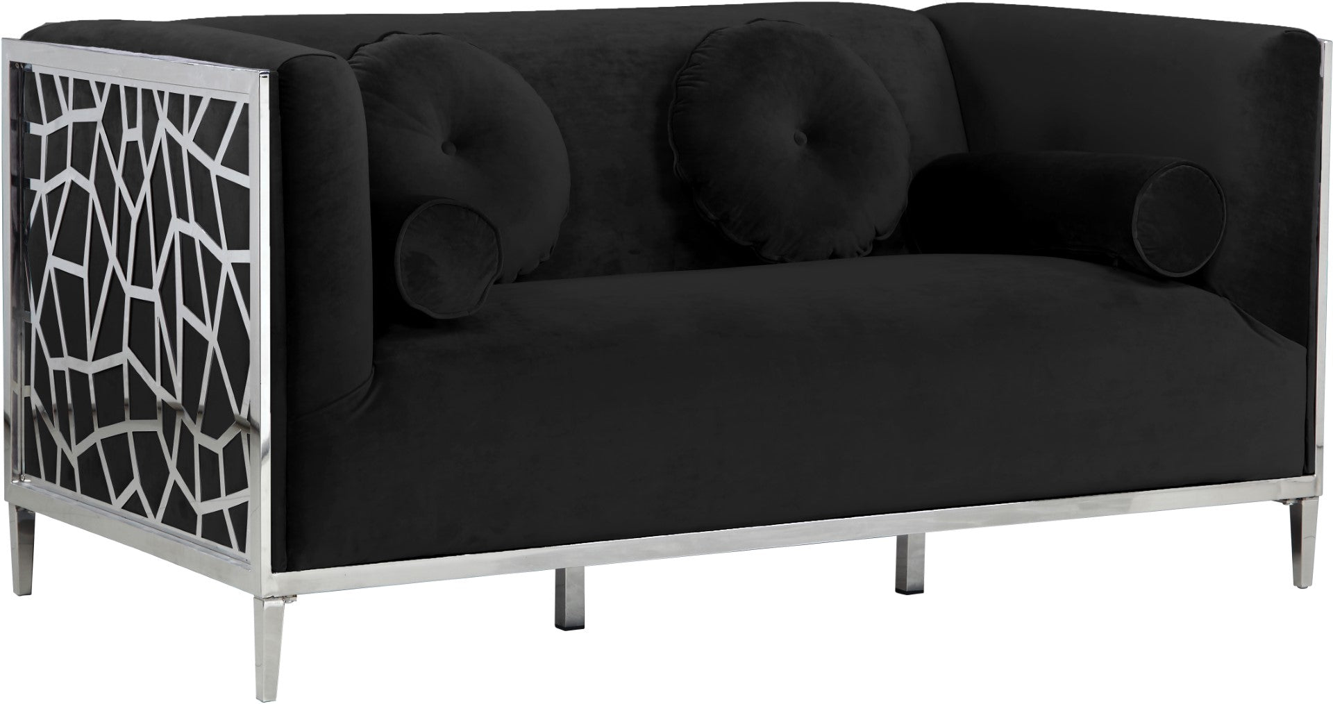 Catch the eyes of all who step foot in your home with this bold Opal black velvet loveseat. Its chrome stainless steel...