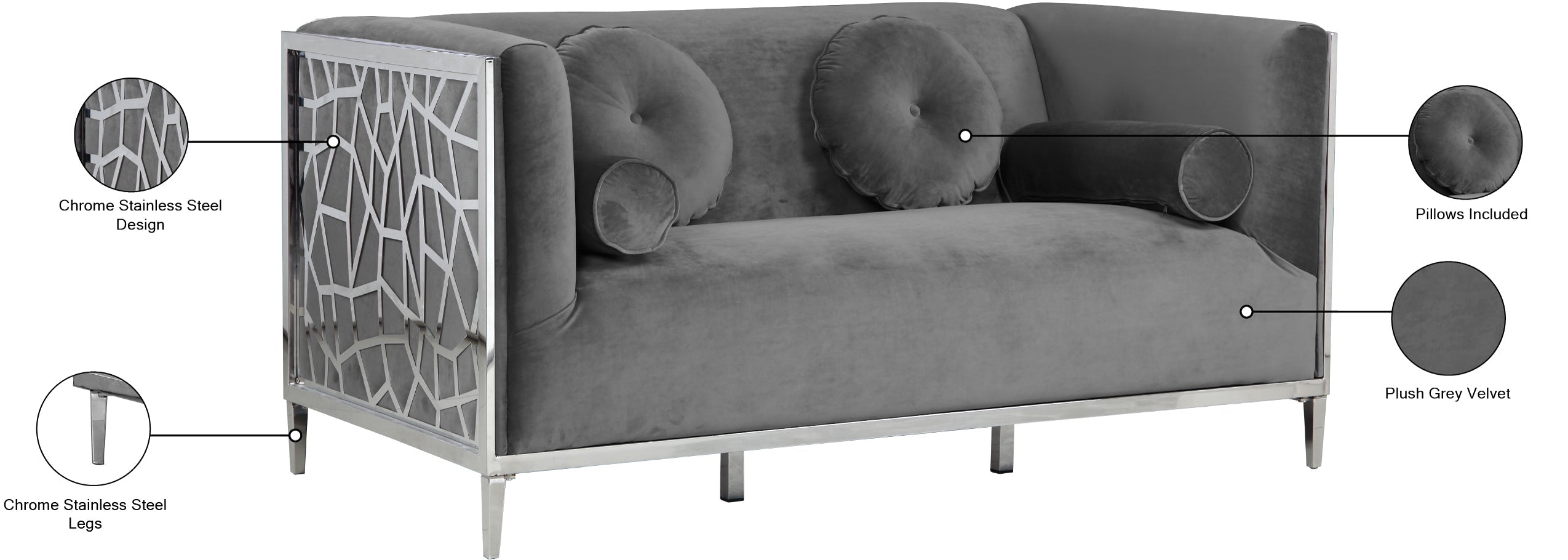Opal Contemporary Loveseat with Chrome Stainless Steel Design for Stylish Living Room Comfort