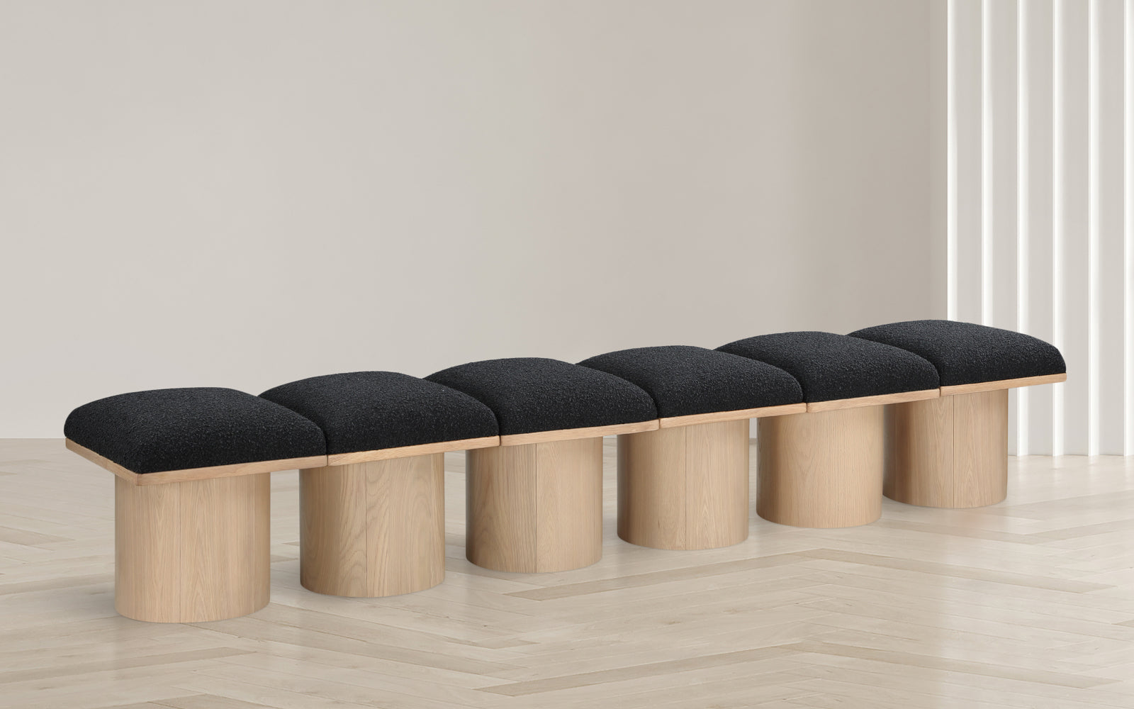Bring valuable seating and remarkable style to your space with this black Pavilion boucle fabric bench, an exquisite balance of style and...