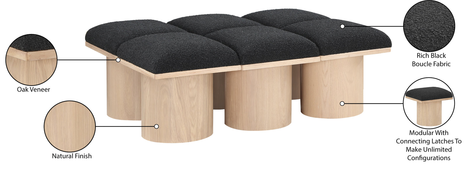 Bring valuable seating and remarkable style to your space with this black Pavilion boucle fabric bench, an exquisite balance of style and...