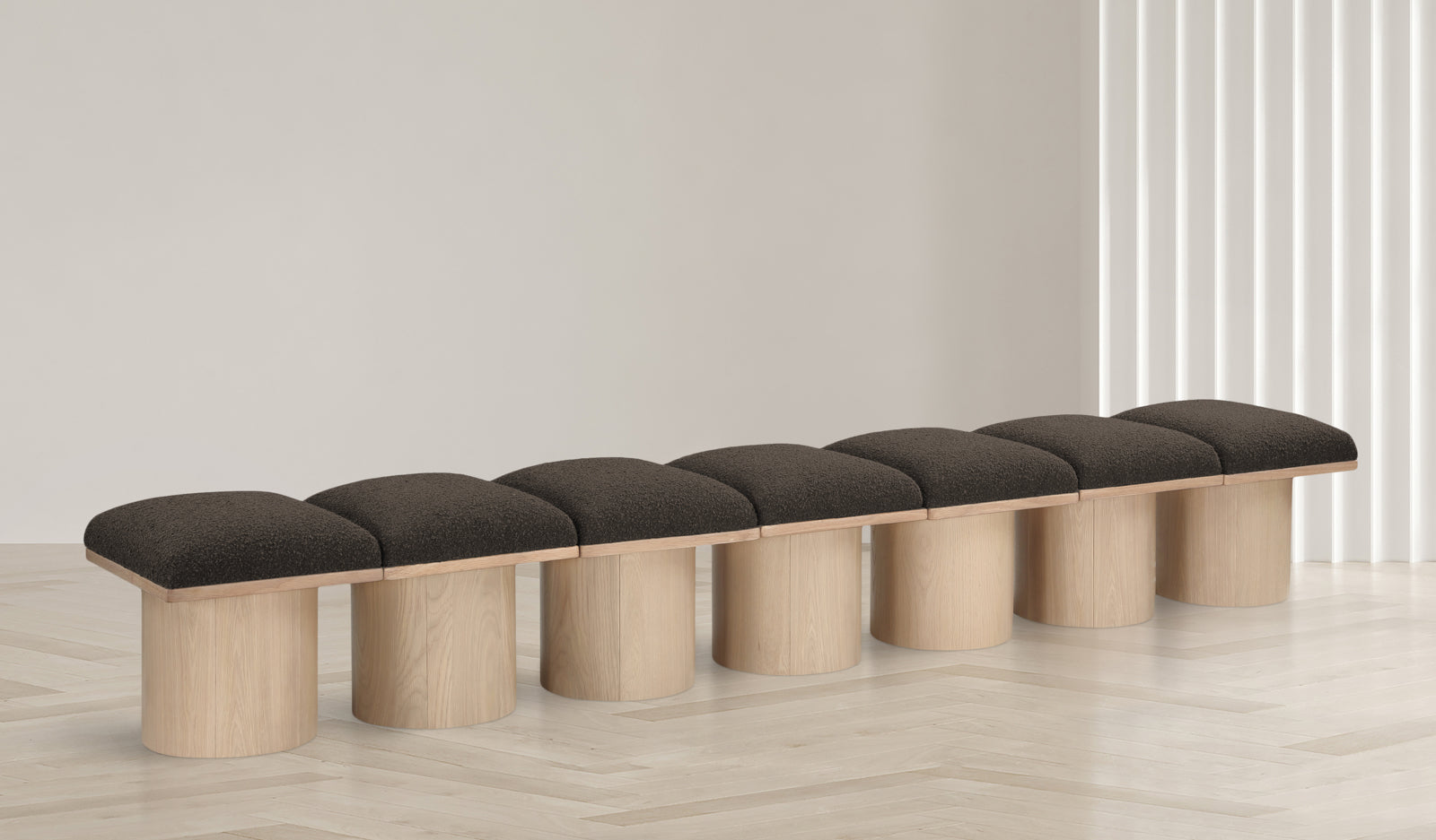 Bring valuable seating and remarkable style to your space with this black Pavilion boucle fabric bench, an exquisite balance of style and...