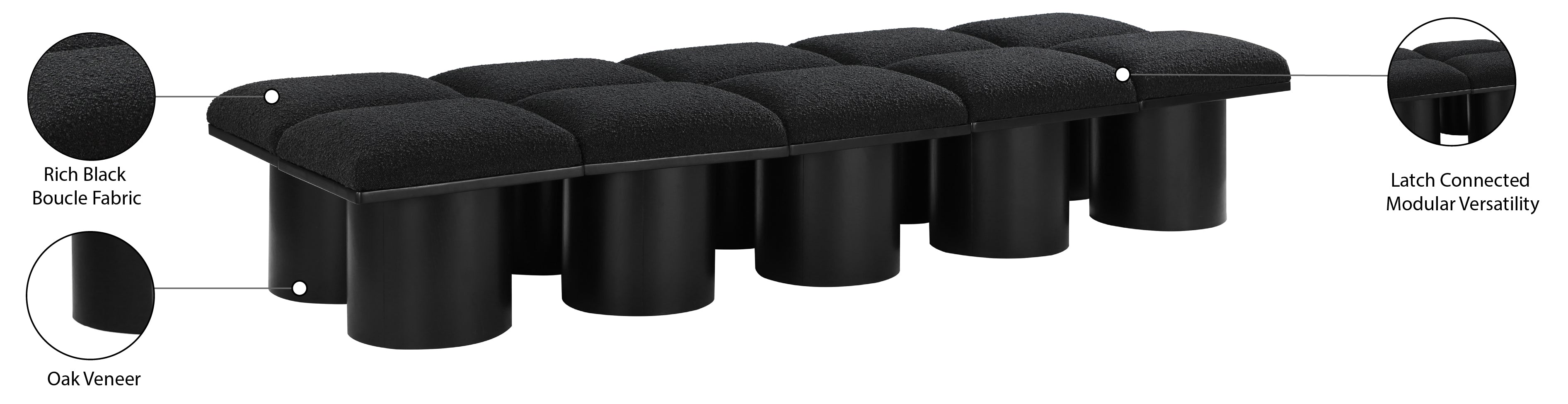 Bring valuable seating and remarkable style to your space with this black Pavilion Boucle Fabric Bench, an exquisite balance of style and...