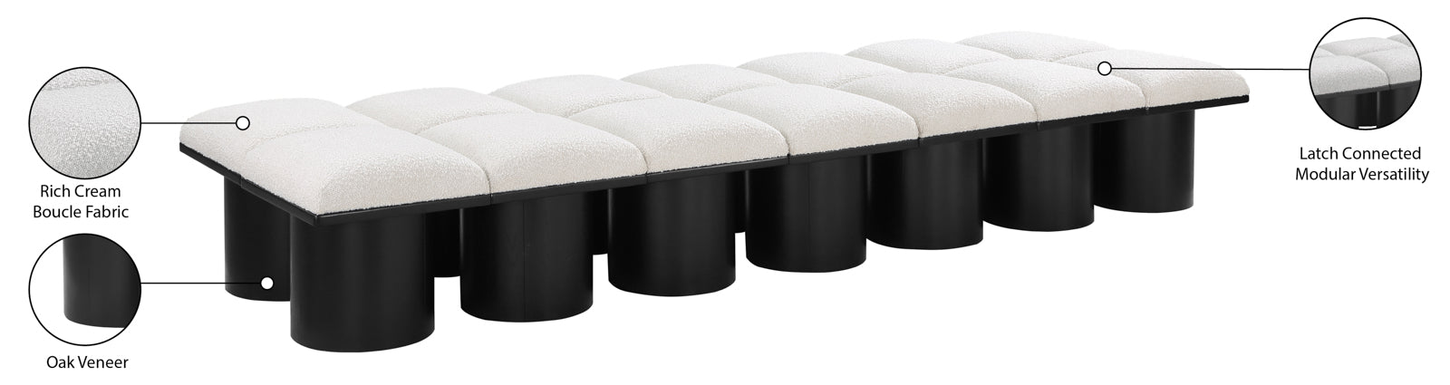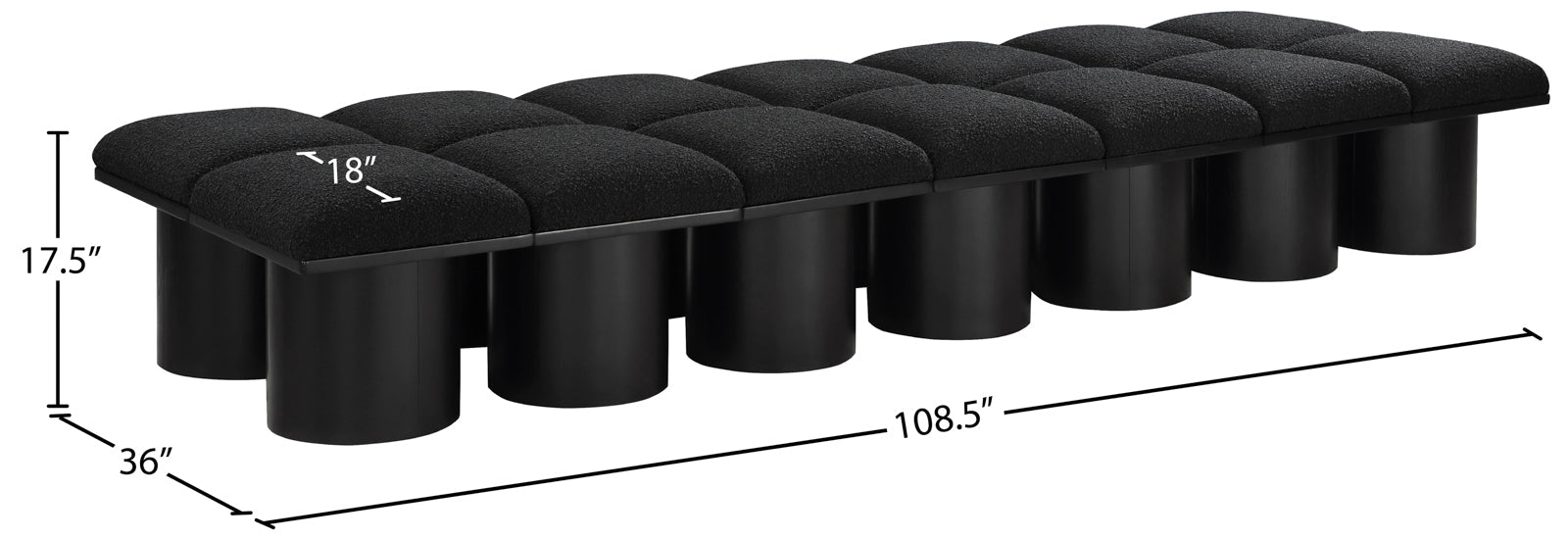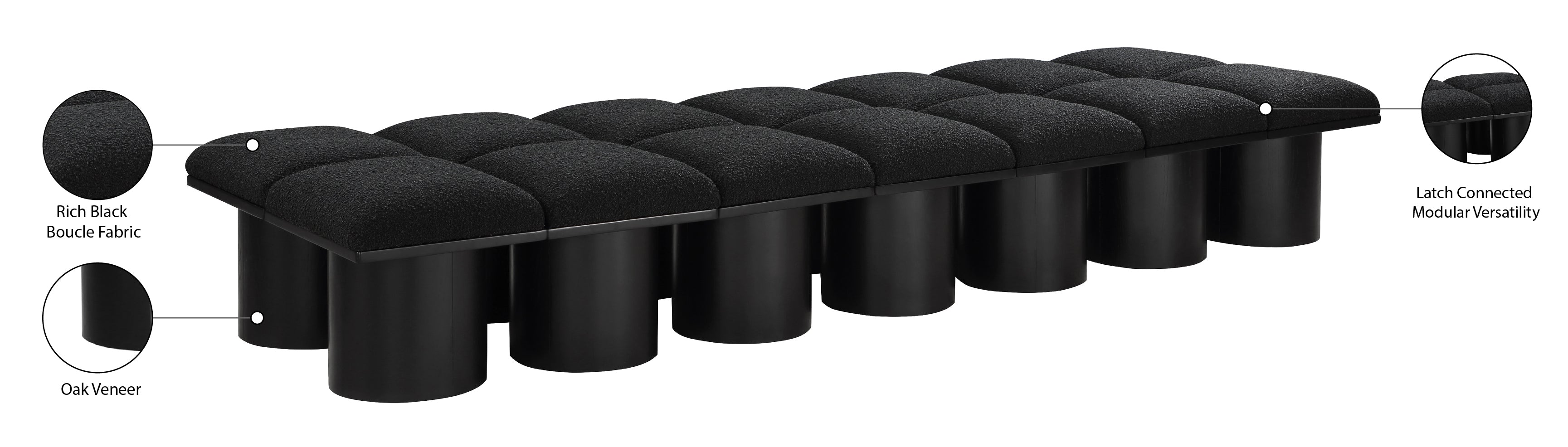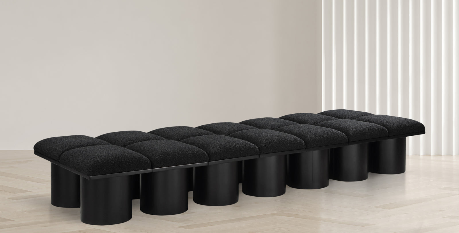 Pavilion Black Boucle Fabric Bench - Luxurious Seating with Art Deco Elegance for Any Space