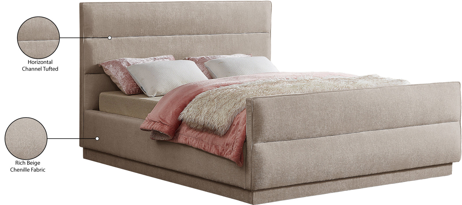 Paxton Chenille Fabric Queen Bed - Luxurious Cozy Design with Tufted Headboard for Elegant Bedrooms