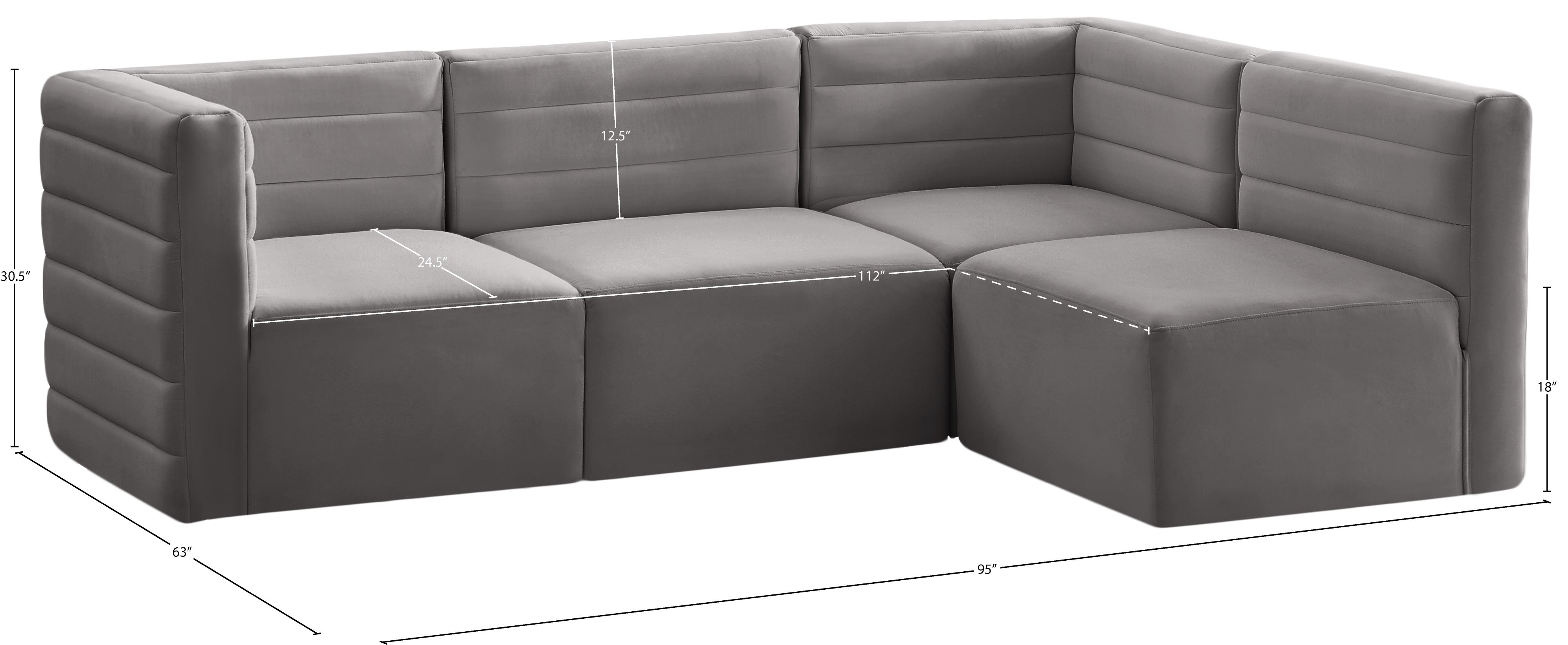 Show them all that less is more with the minimalist look of this Quincy velvet cloud-like comfort modular sectional. This elegant chair...